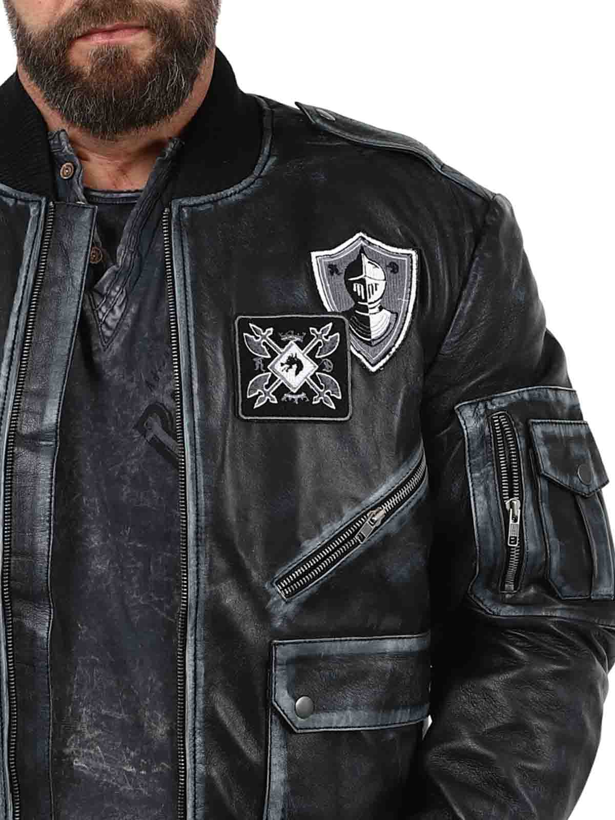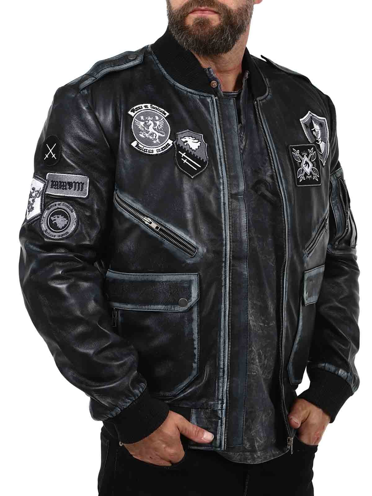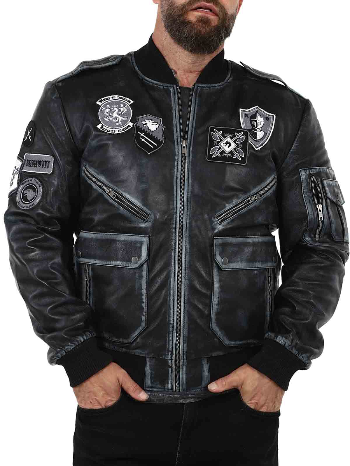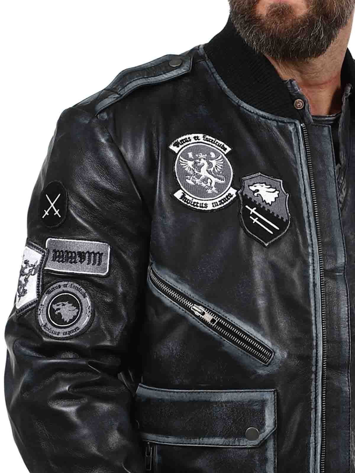 Retroinspirerad jacka i en snygg, vintage-svart nyans med dekorativa patches. Tillverkad i mjukt och följsamt kvalitetsläder med ribbstickade avslut för en optimal passform. Den har flera stängbara fickor som ger både praktisk funktion och en stilfull design. Detta är en jacka som vi har utvecklat själva och som är en av våra tuffaste jackor!