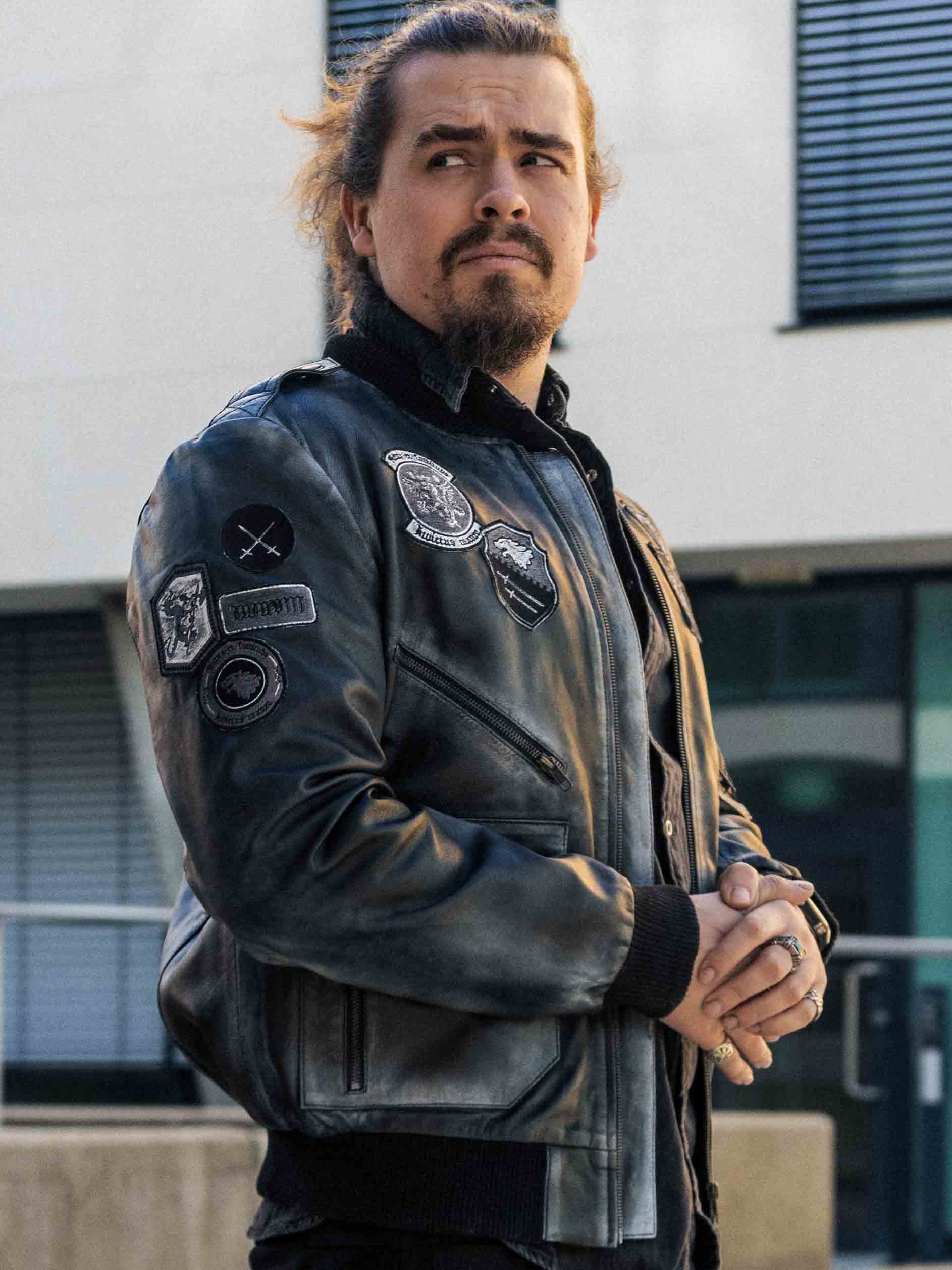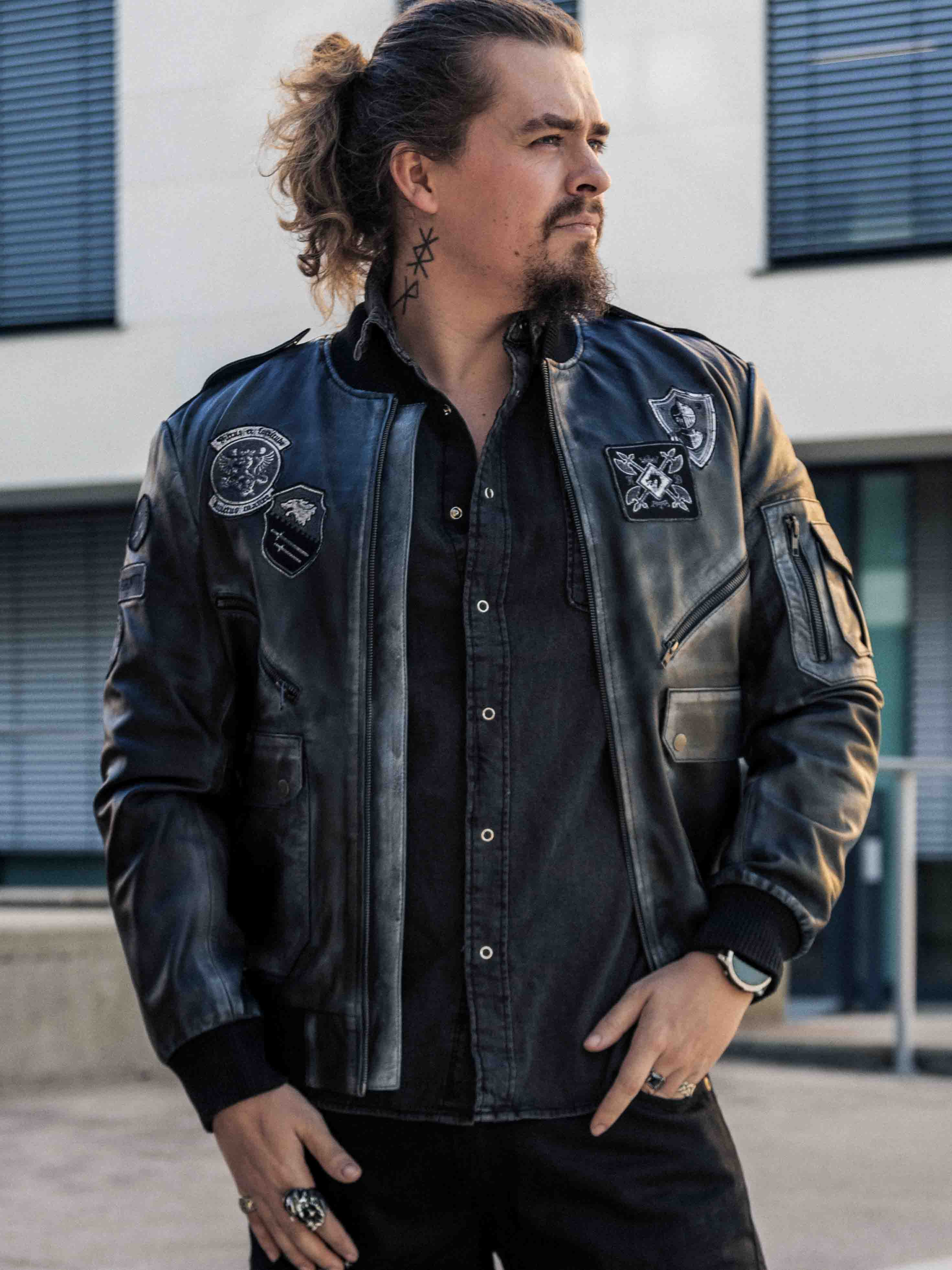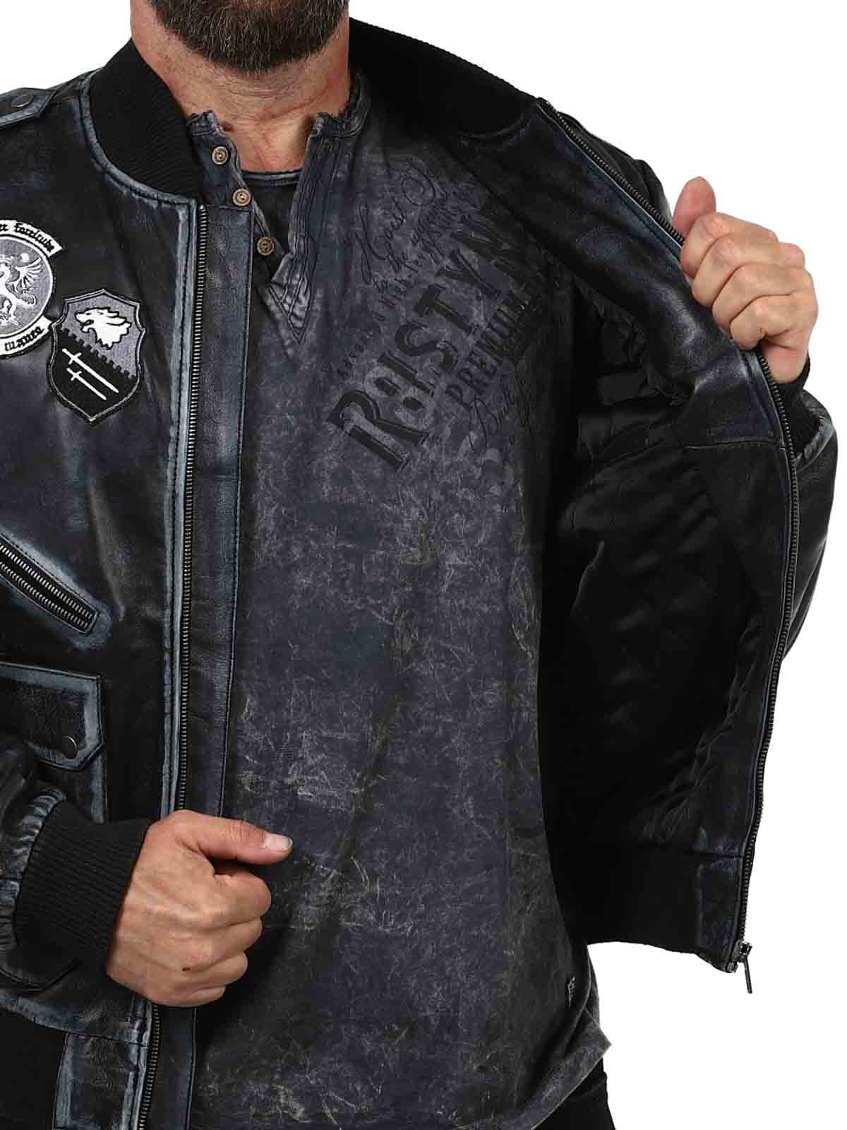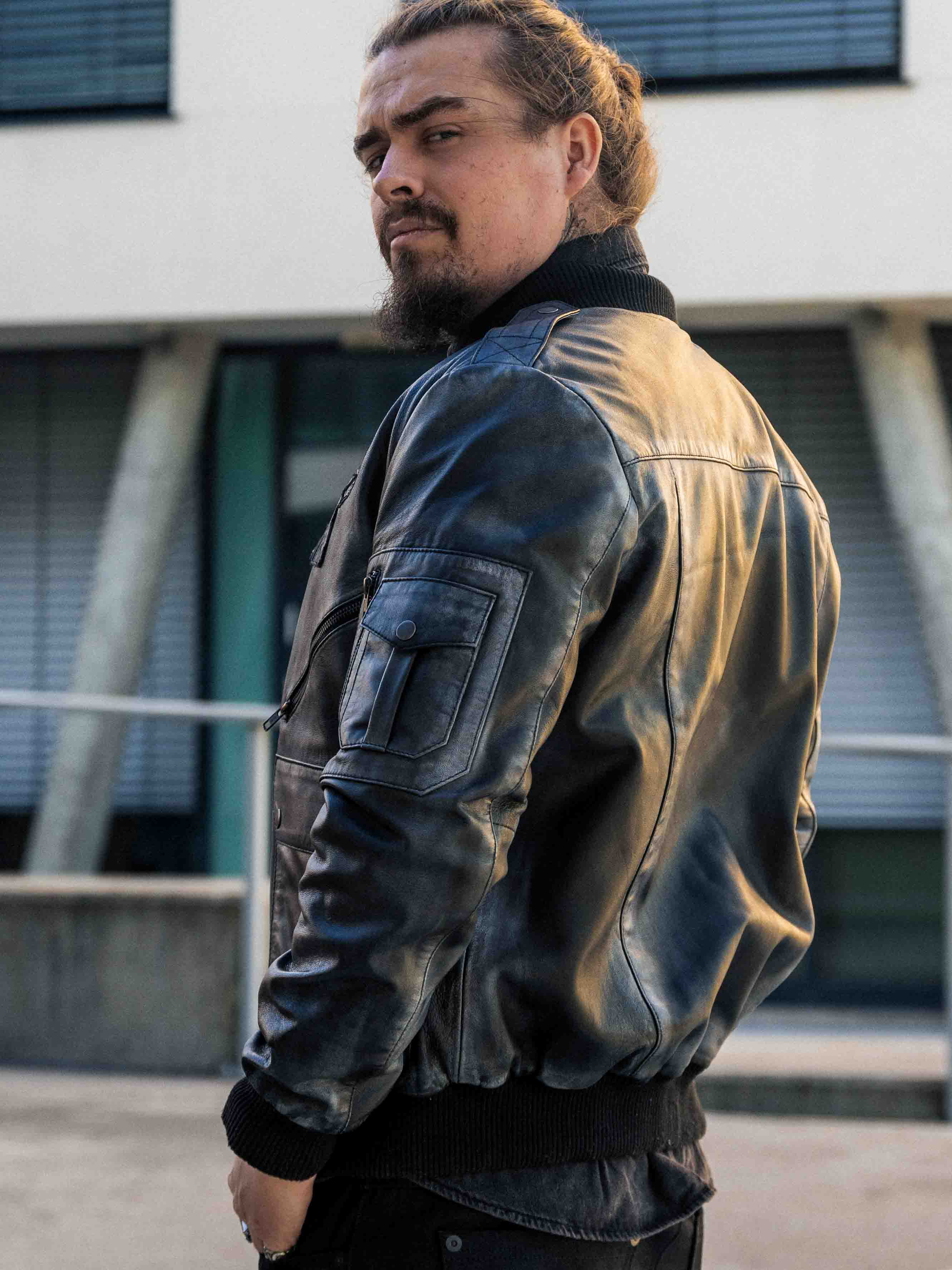 Retroinspirerad jacka i en snygg, vintage-svart nyans med dekorativa patches. Tillverkad i mjukt och följsamt kvalitetsläder med ribbstickade avslut för en optimal passform. Den har flera stängbara fickor som ger både praktisk funktion och en stilfull design. Detta är en jacka som vi har utvecklat själva och som är en av våra tuffaste jackor!