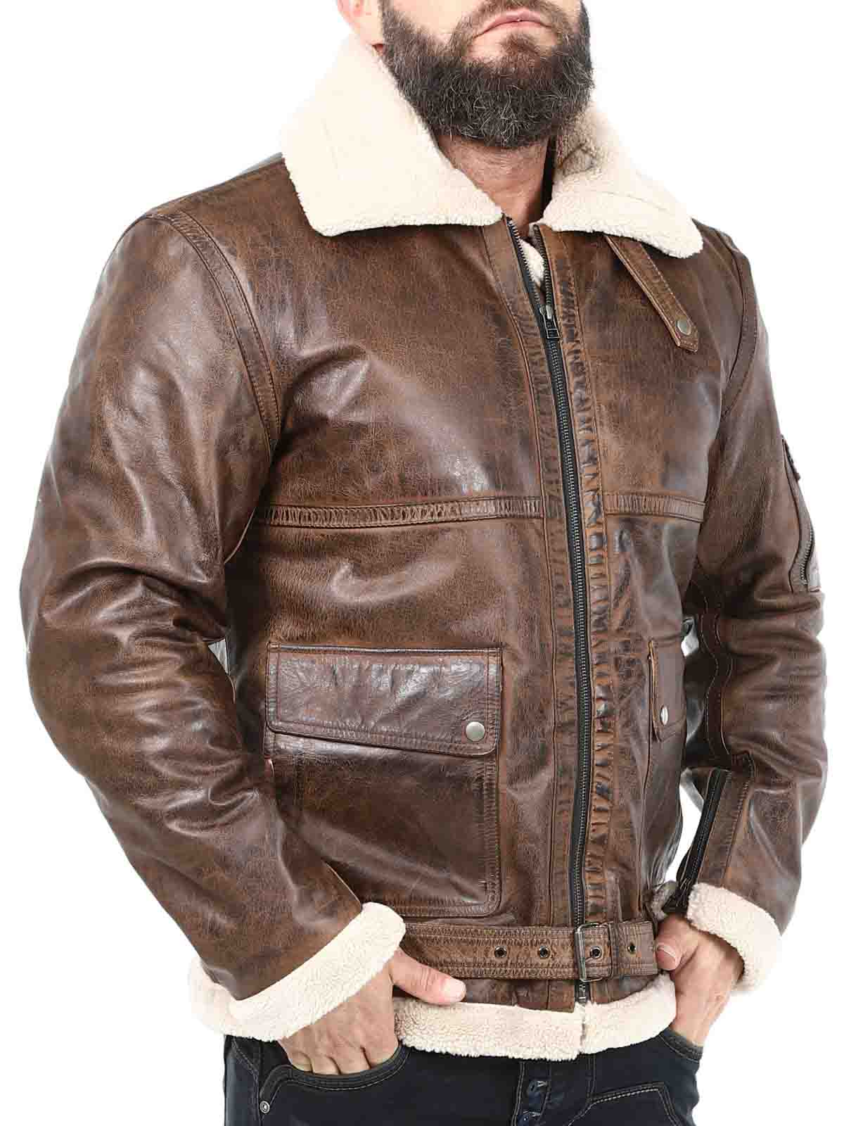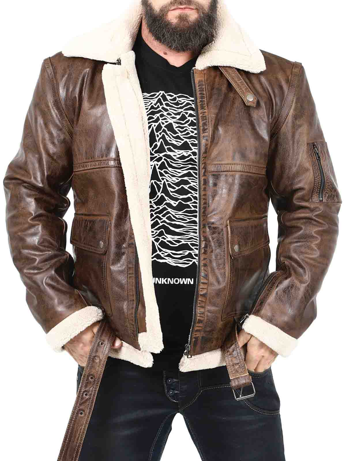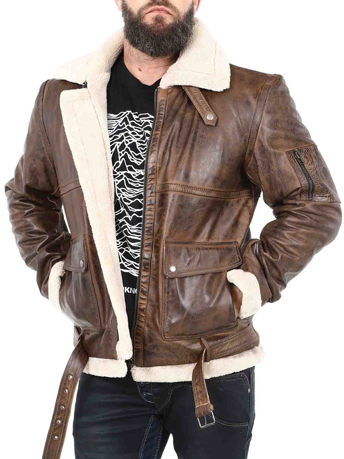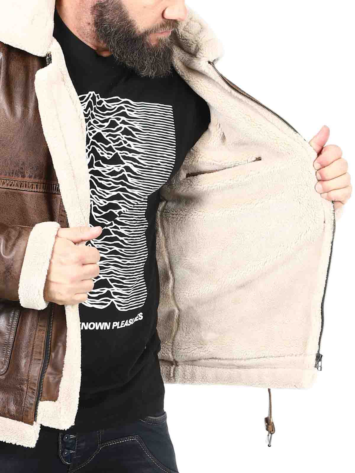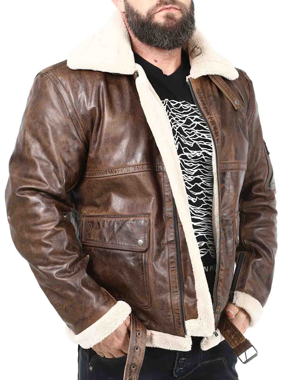 Jacka i äkta läder med retro-look. Designad med varmt teddyfoder och spännen vid kragen och linningen nertill. Jackan har dragkedjestängning, reglerbara ärmslut och flera fickor. Perfekt för dig som vill ha en unik jacka i god kvalité!