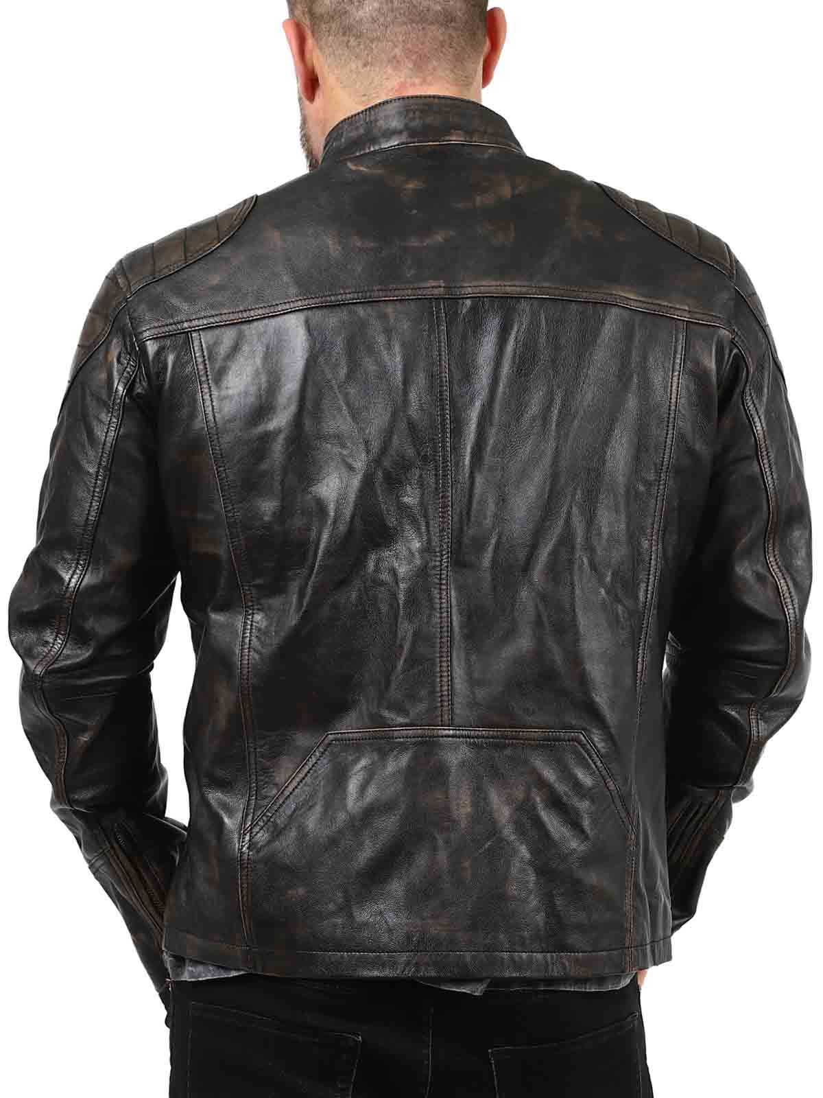 Jacka i kvalitetsläder med en snygg, vintage-brun nyans. Den har reglerbara ärmslut, förstärkta axelpartier och fyra stängbara framfickor, samt två innerfickor. Ge din garderob en uppgradering med denna snygga skinnjacka som endast finns hos Rockdenim!
