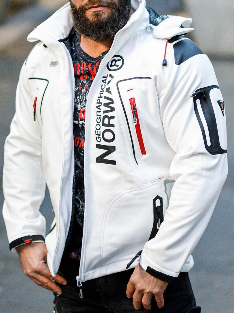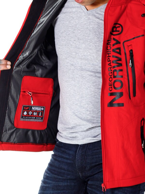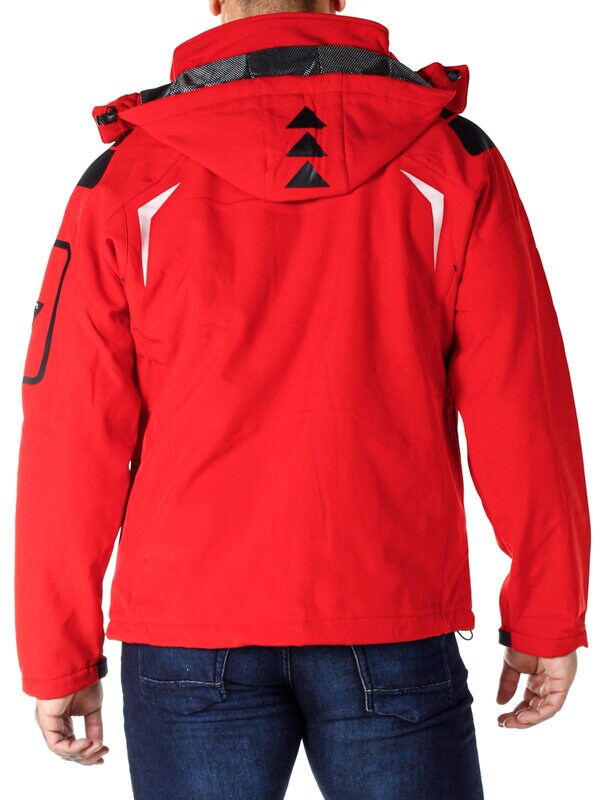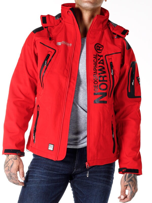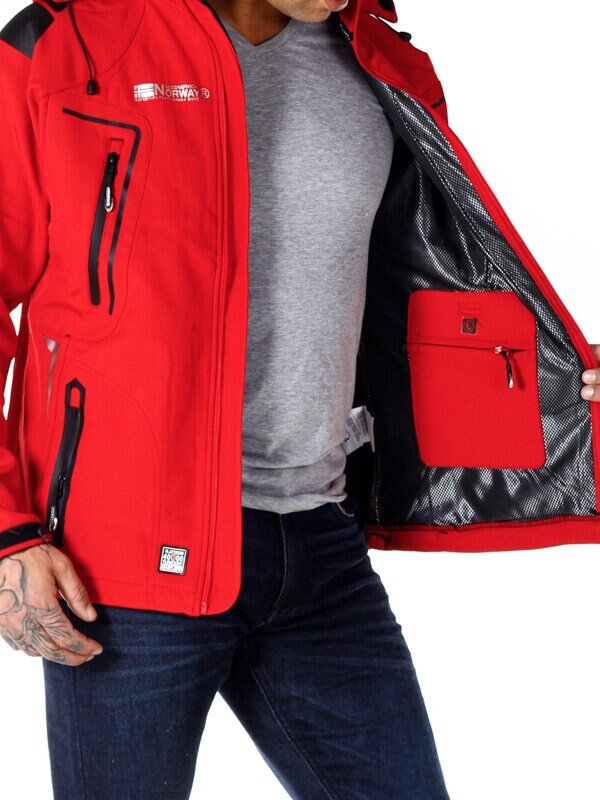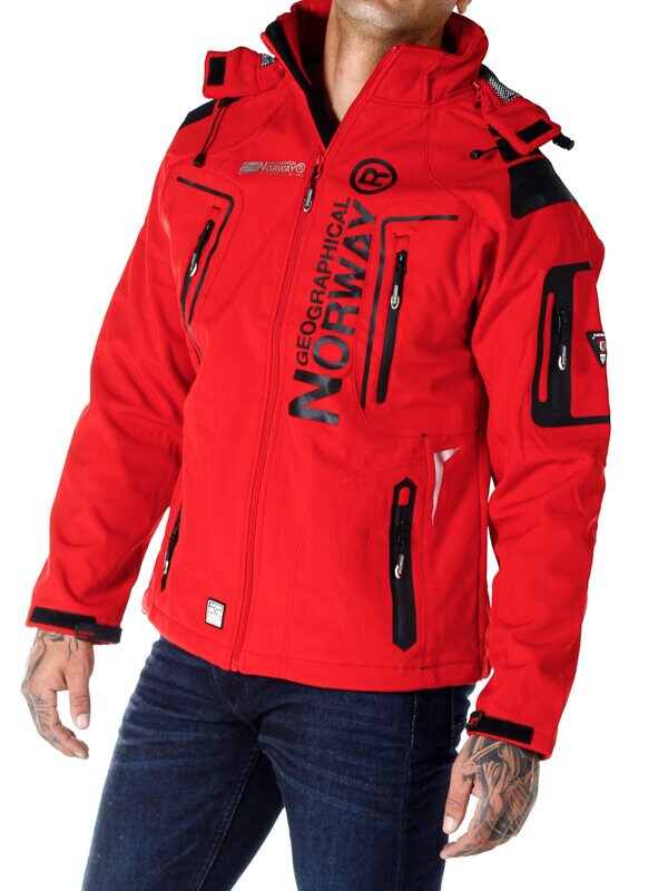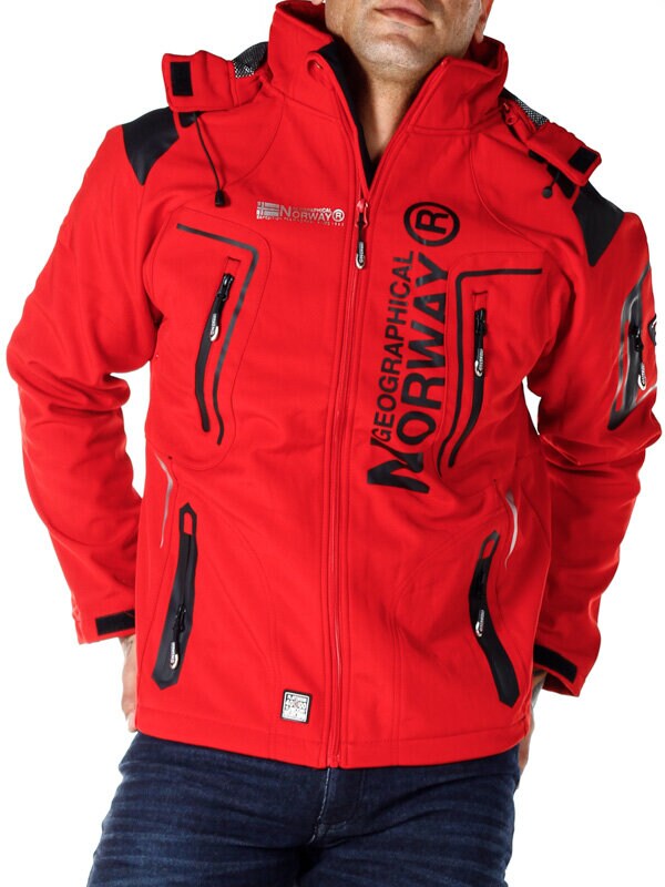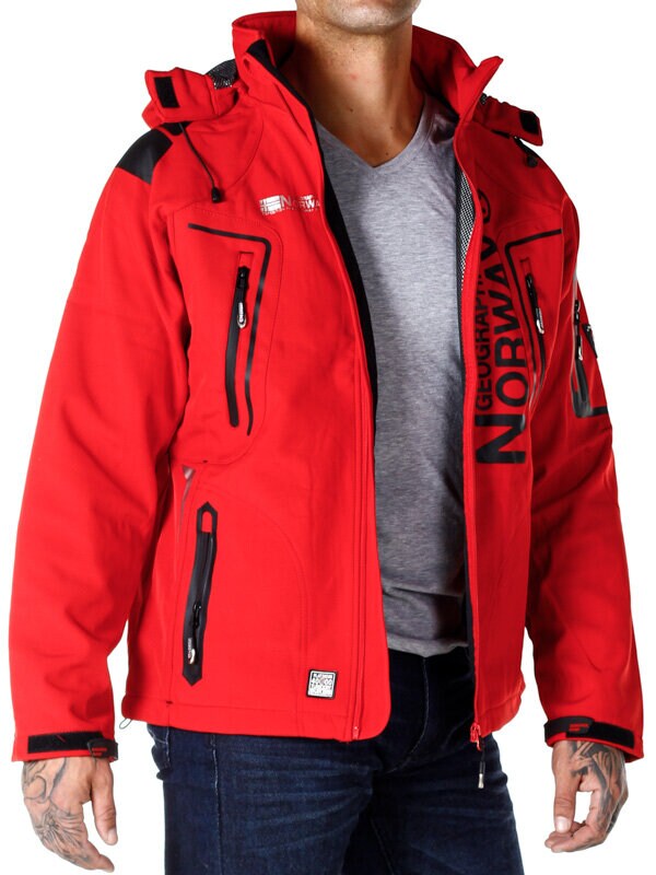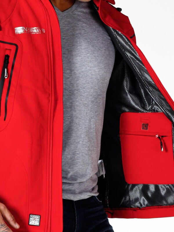 Användbar jacka för alla aktiviteter som kräver vindtätt och vattenavisande material. Tunt fleecefoder, tejpade sömmar och gott om fickor gör jackan praktisk och perfekt att bära vår/sommar/höst. Den har röd design med patches och textprint i kontrastfärger, fyra stängbara fickor fram, två innerfickor med dragkedja och avtagbar huva.