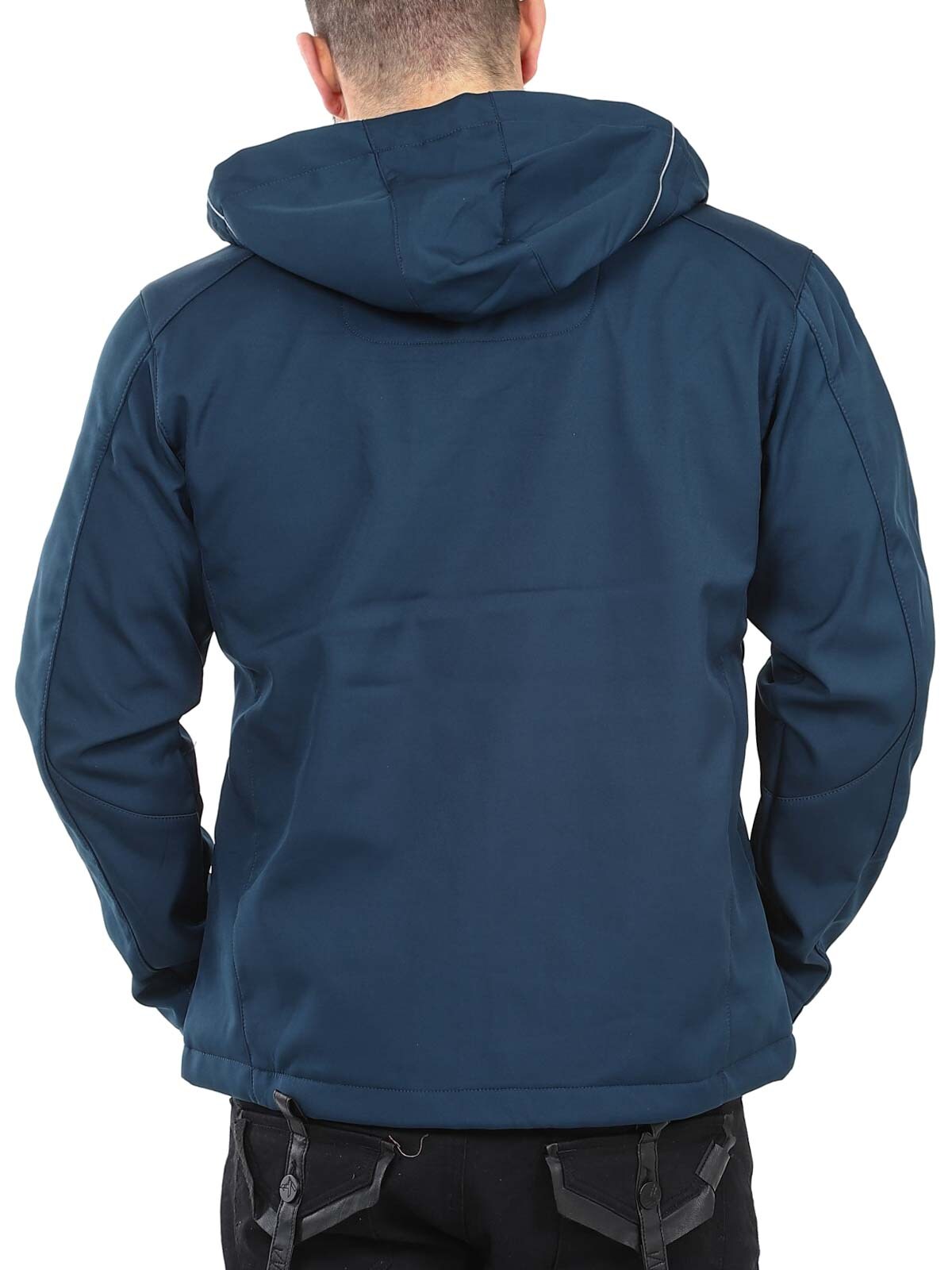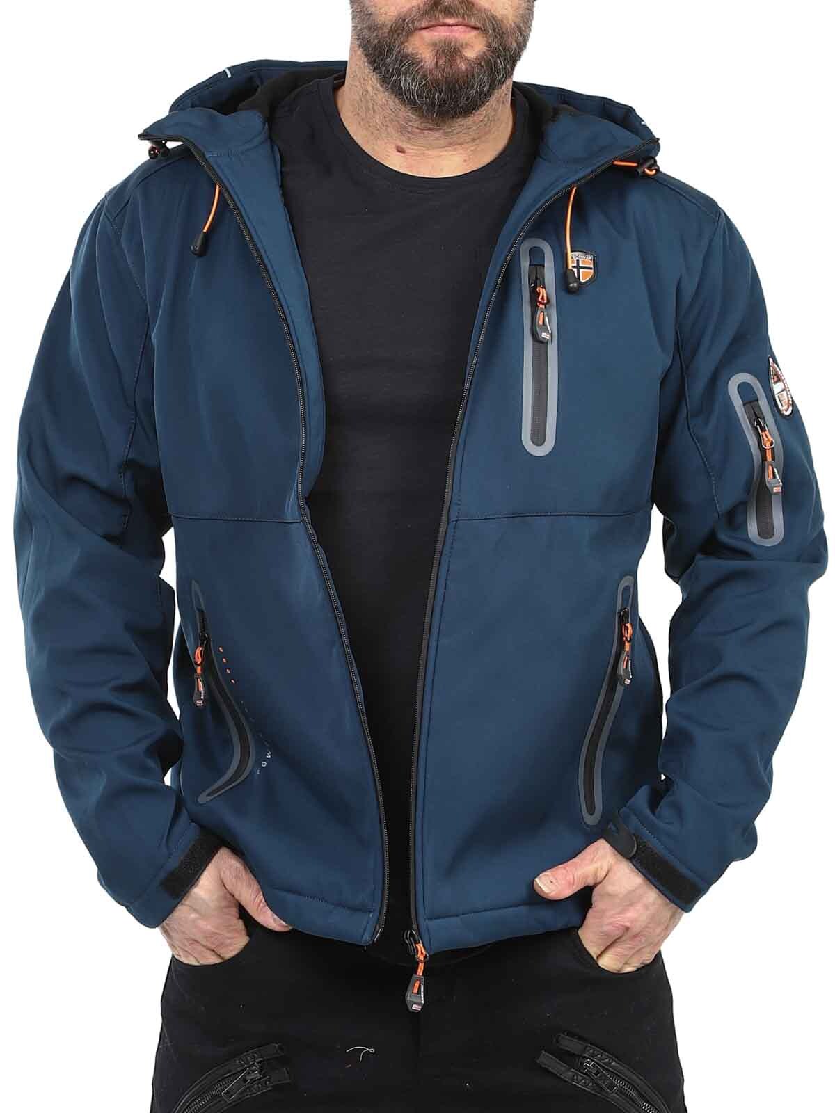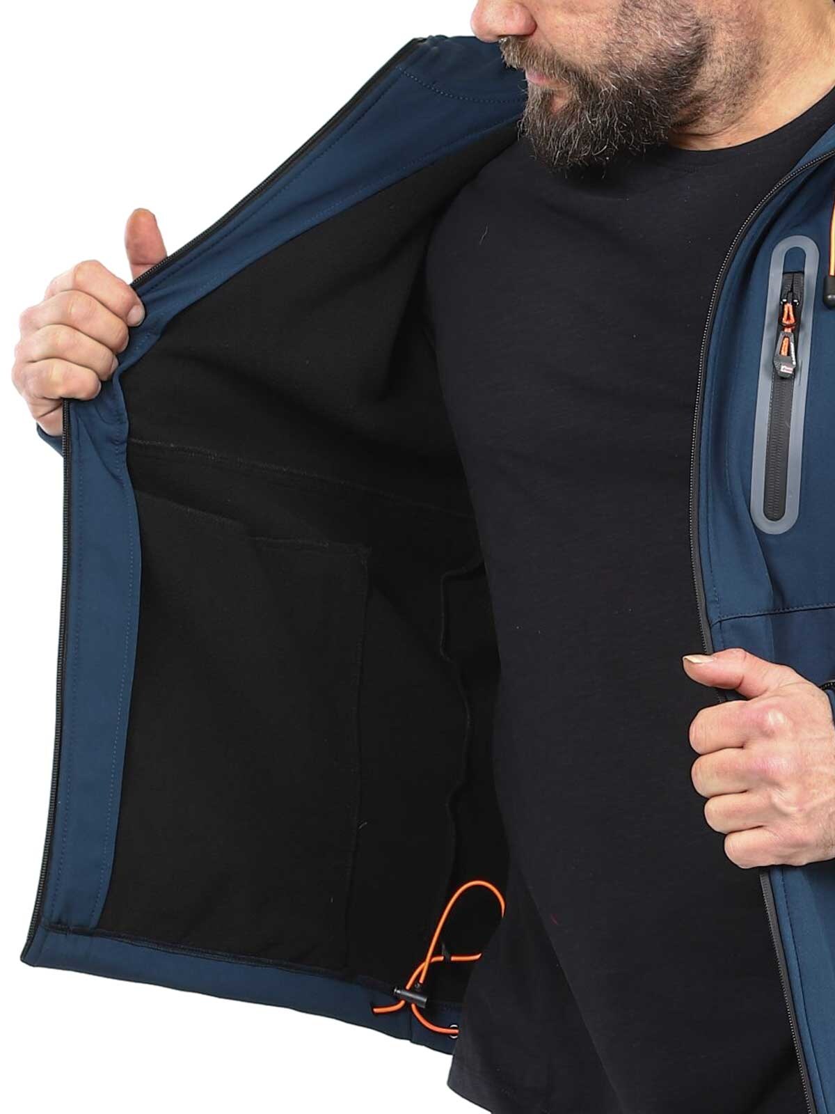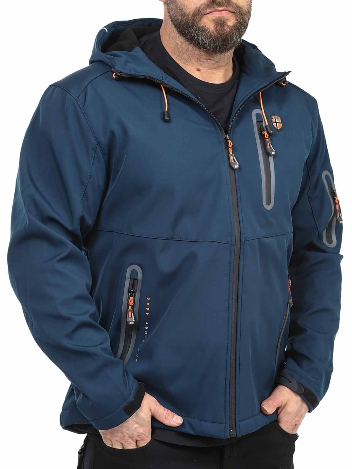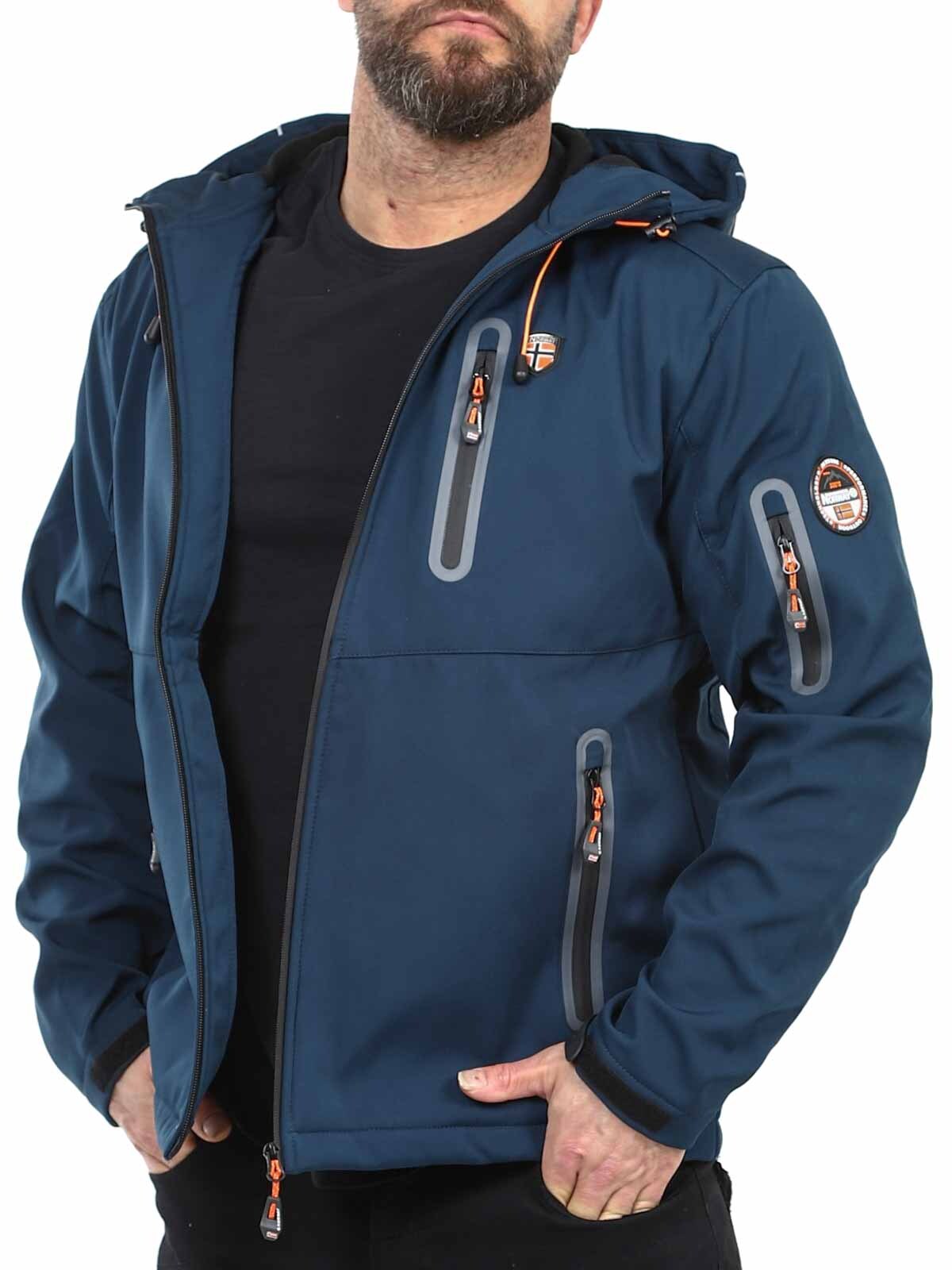 Funktionsjacka i softshell med tejpade sömmar och egenskaper som står emot väder och vind. Reglerbar huva och flera stängbara fickor. Ärmsluten och linningen nertill kan regleras och dras åt.