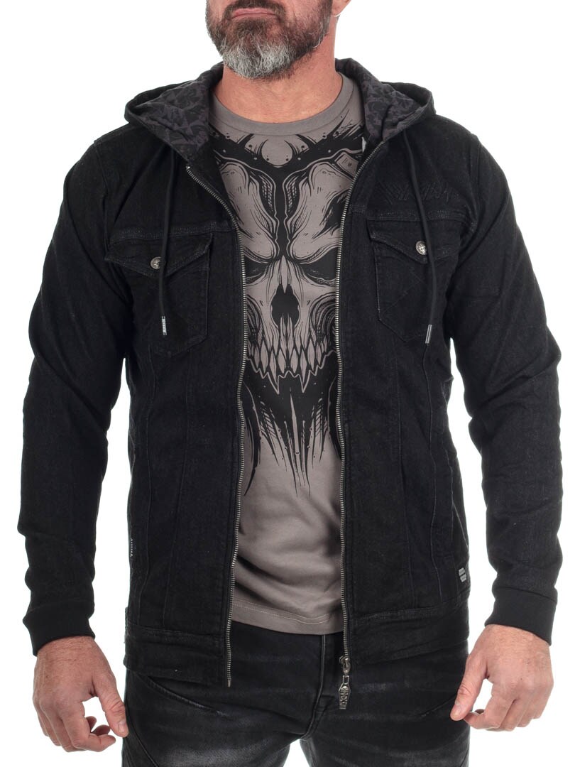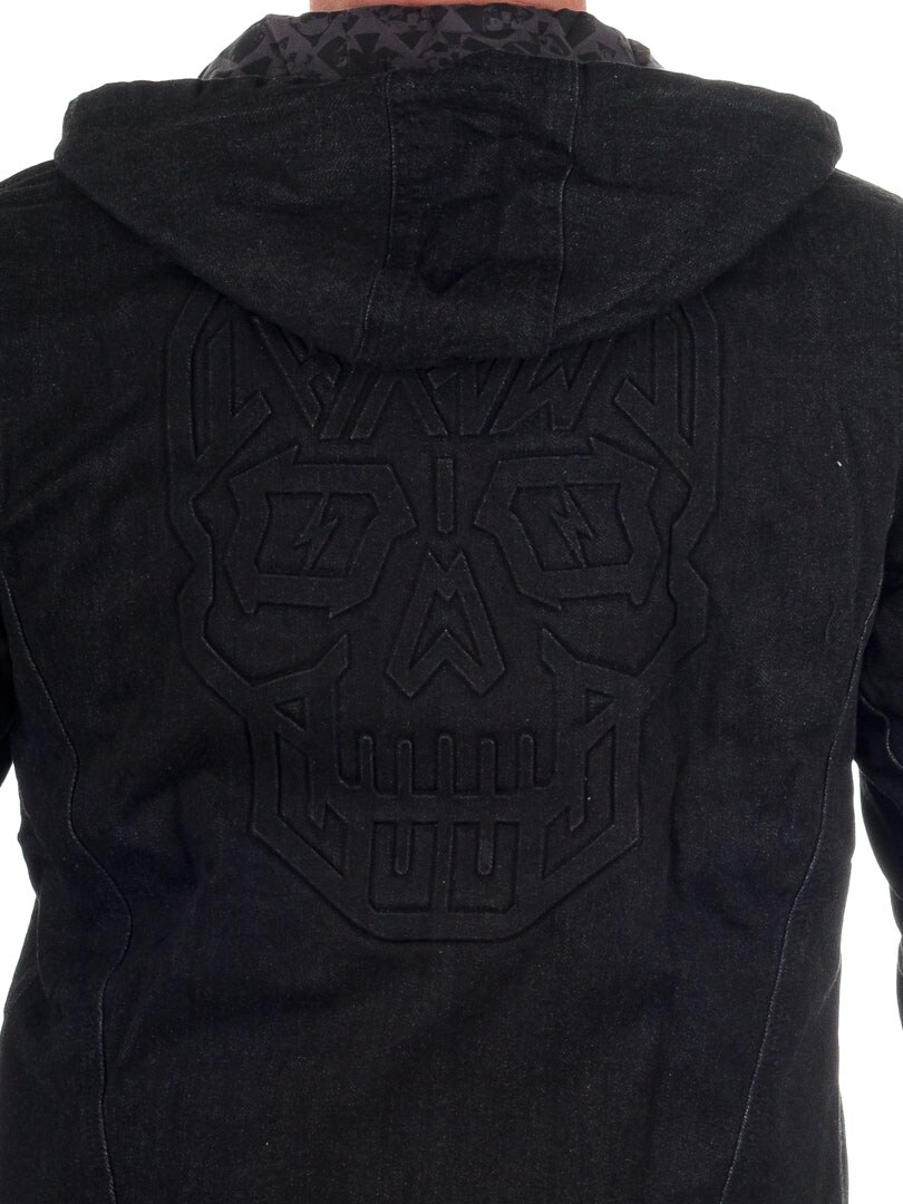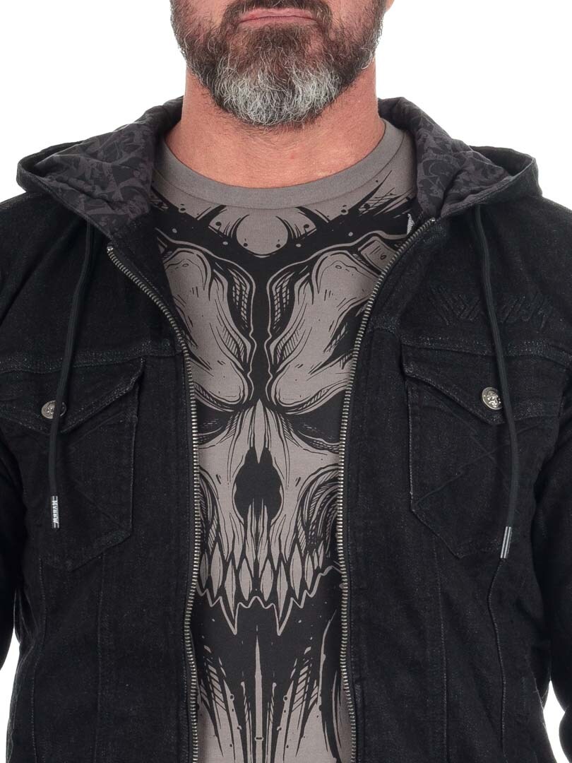 Snygg och stretchig jacka designad med ett stort dödskallemotiv på ryggen, och Hyraw-loggan ovanför bröstfickan framtill. Denna jacka är ett klassiskt men samtidigt modernt plagg, med sitt superbekväma material och stiliserade präglade detaljer. Perfekt för en avslappnad rock/metal-inspirerad look!