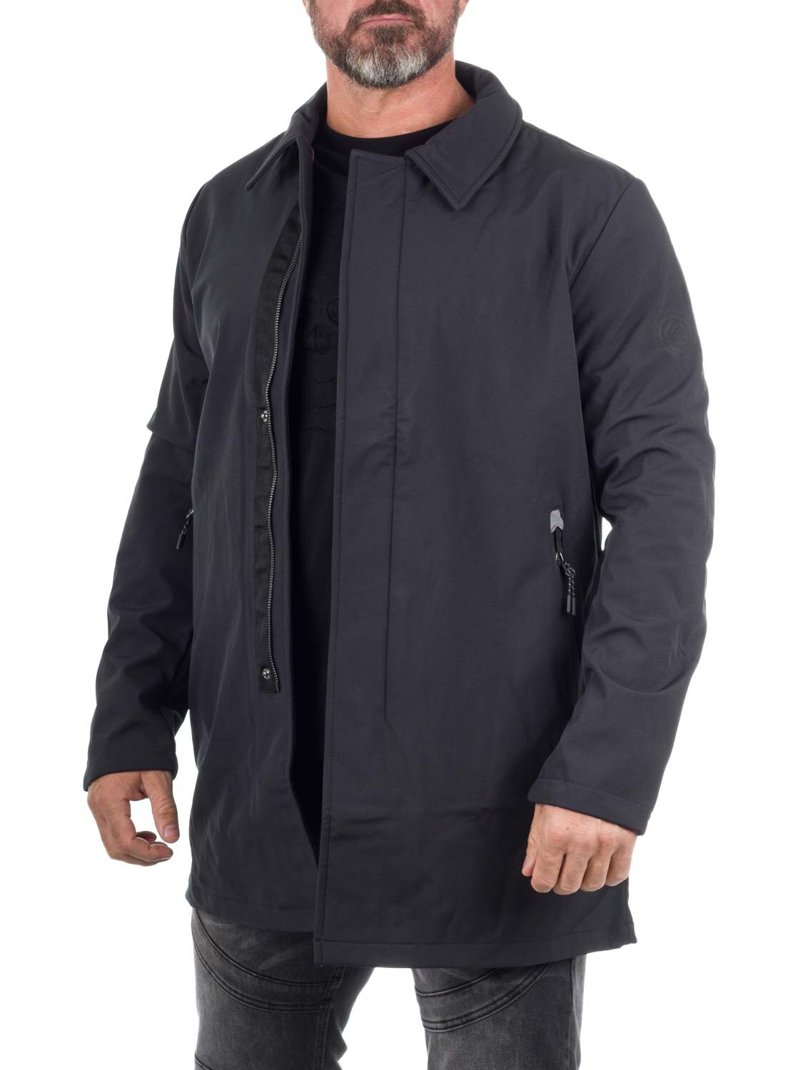 En rak och stilfull rock i ett vindtätt, lätt vattenavvisande material med fleecefoder på insidan. Utrustad med två dragkedjeförsedda fickor framtill. En jacka för mannen som vill hålla stilen under våren och hösten!