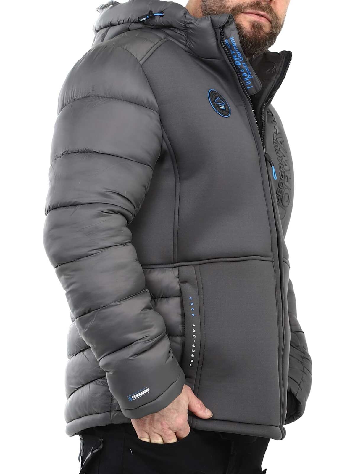 Jacka med vadderad baksida och ärmar som ger värme, medan framsidan är tillverkad i ett softshell-material för extra rörlighet och skydd mot väder och vind. Designad med justerbar huva, dragkedjeförsedda fickor och snygga detaljer såsom logotypbrodyr och patchar. Perfekt för både vardag och utomhusaktiviteter under kalla dagar!