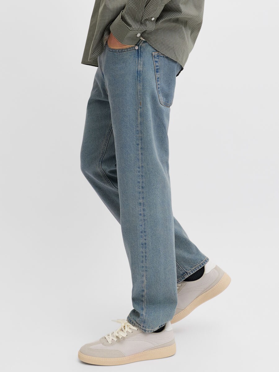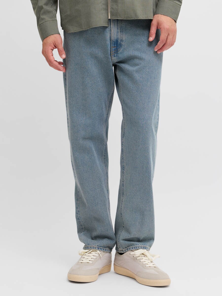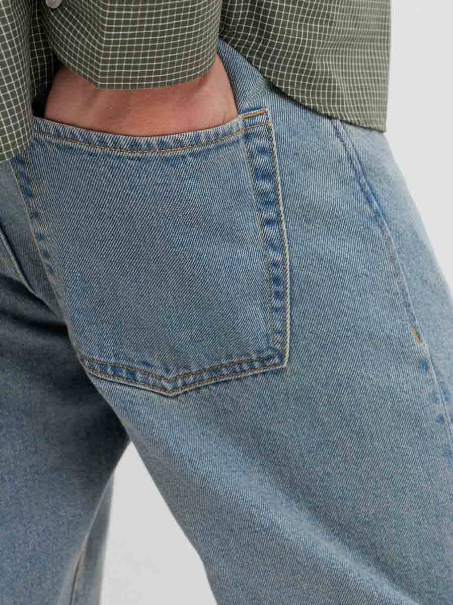 - Passform : Avslappnad passform med hög midja, avslappnat lår, avslappnat knä och avslappnad benöppning för extra komfort och en rak, lös look