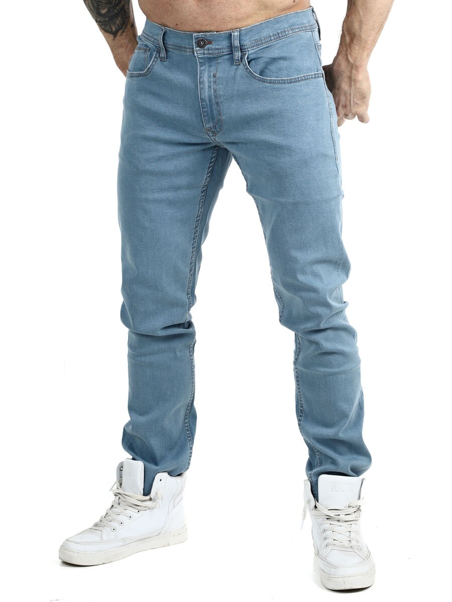 Jeans med multiflexteknik som ger extra mycket töjbarhet och extra hög bärkomfort. De har normal midja och avsmalnande ben. Det finns tre framfickor, två bakfickor och bälteshällor i midjan.