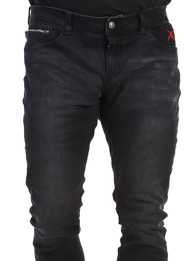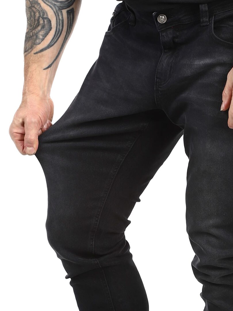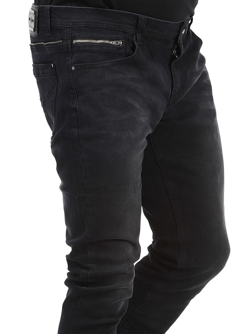 Jeans i slim straight fit – smal passform med raka ben. Stretchig och bekväm modell med fyra framfickor och två bakfickor. Designade med en dekorativ dragkedja baktill som ger en edgy touch!