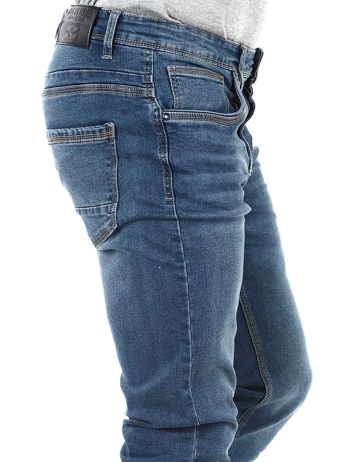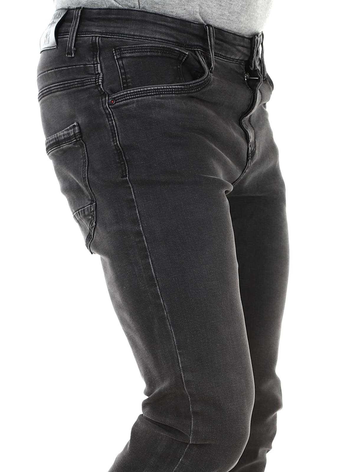 Stretchiga byxor i tvättad denim. Slim fit-modell med tre framfickor och två bakfickor. Dragkedja i gylfen.