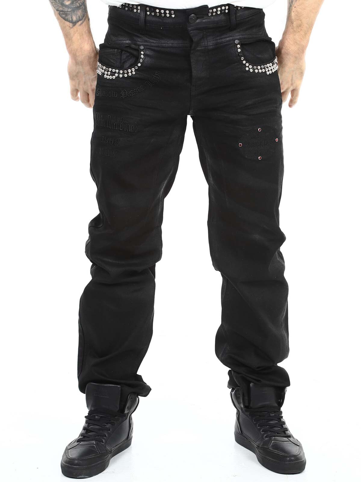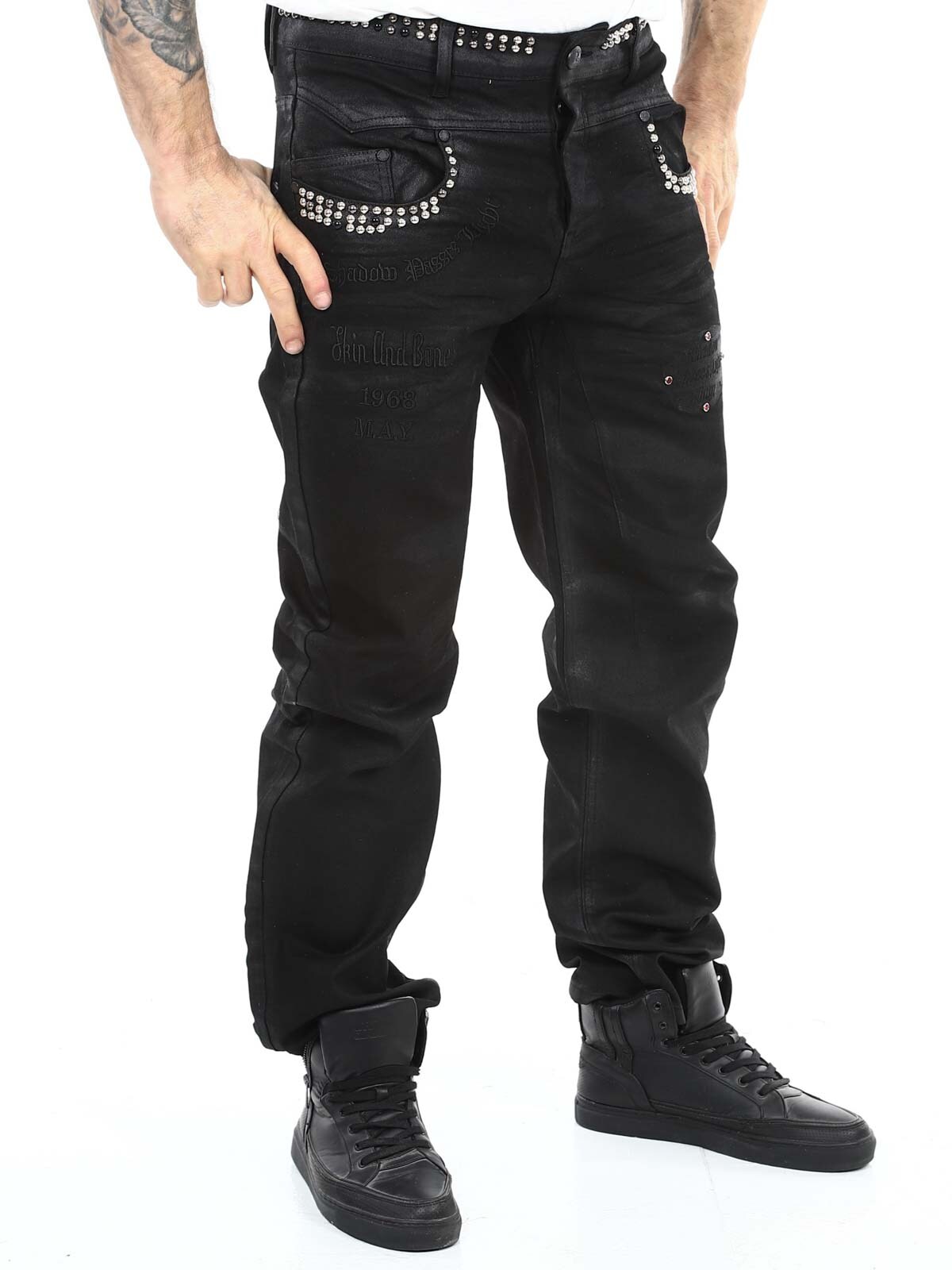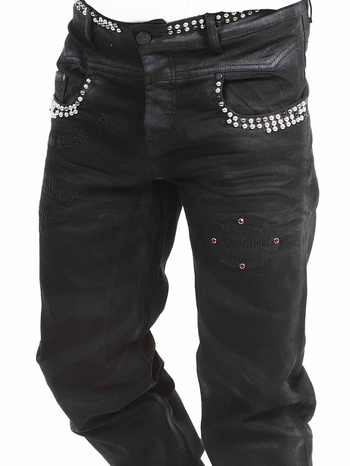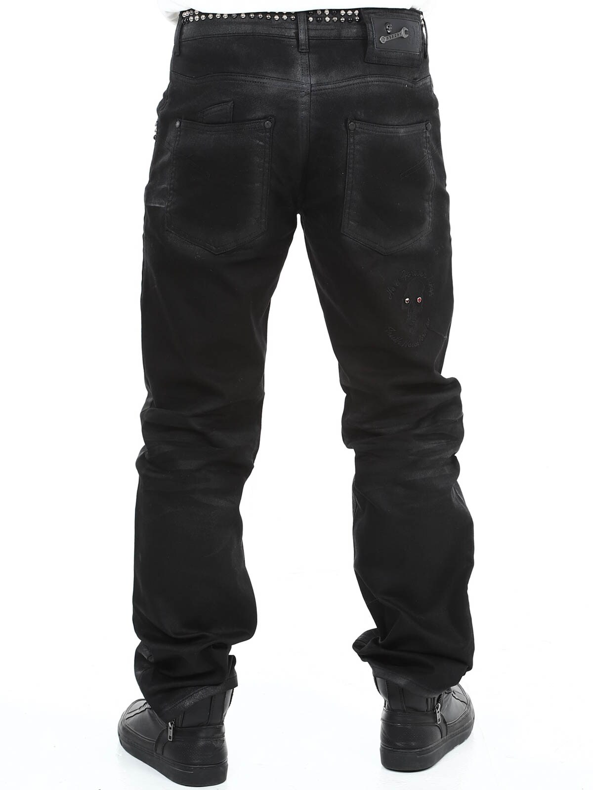 Jeans i stretchigt material med blickfångande design. De har bälteshällor, tre framfickor samt tre bakfickor. Tufft detaljerad med nitar och skräddade tryck. Vill du vara unik och sticka ut är dessa jeans helt rätt för dig!