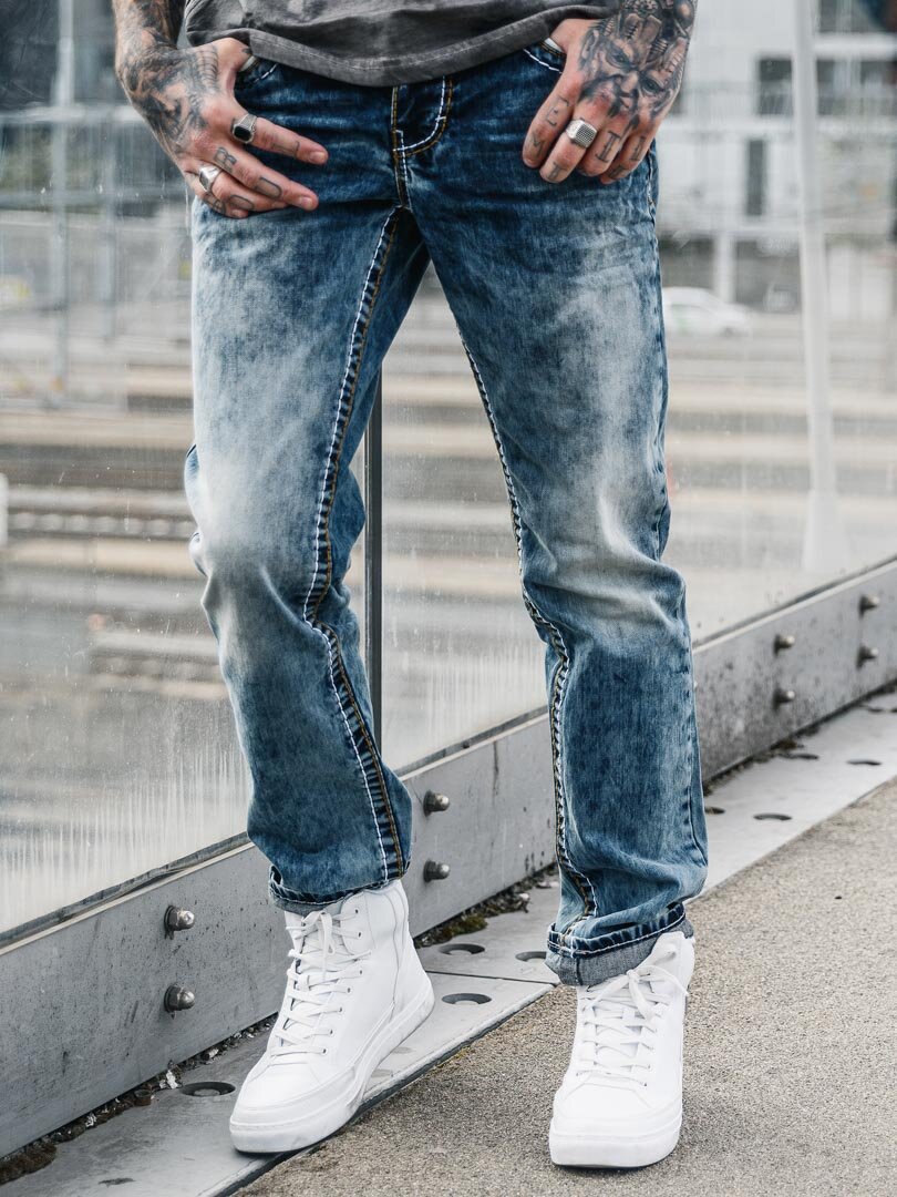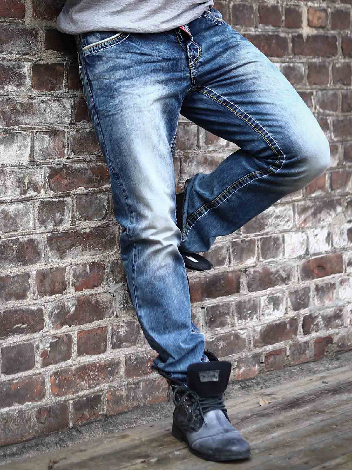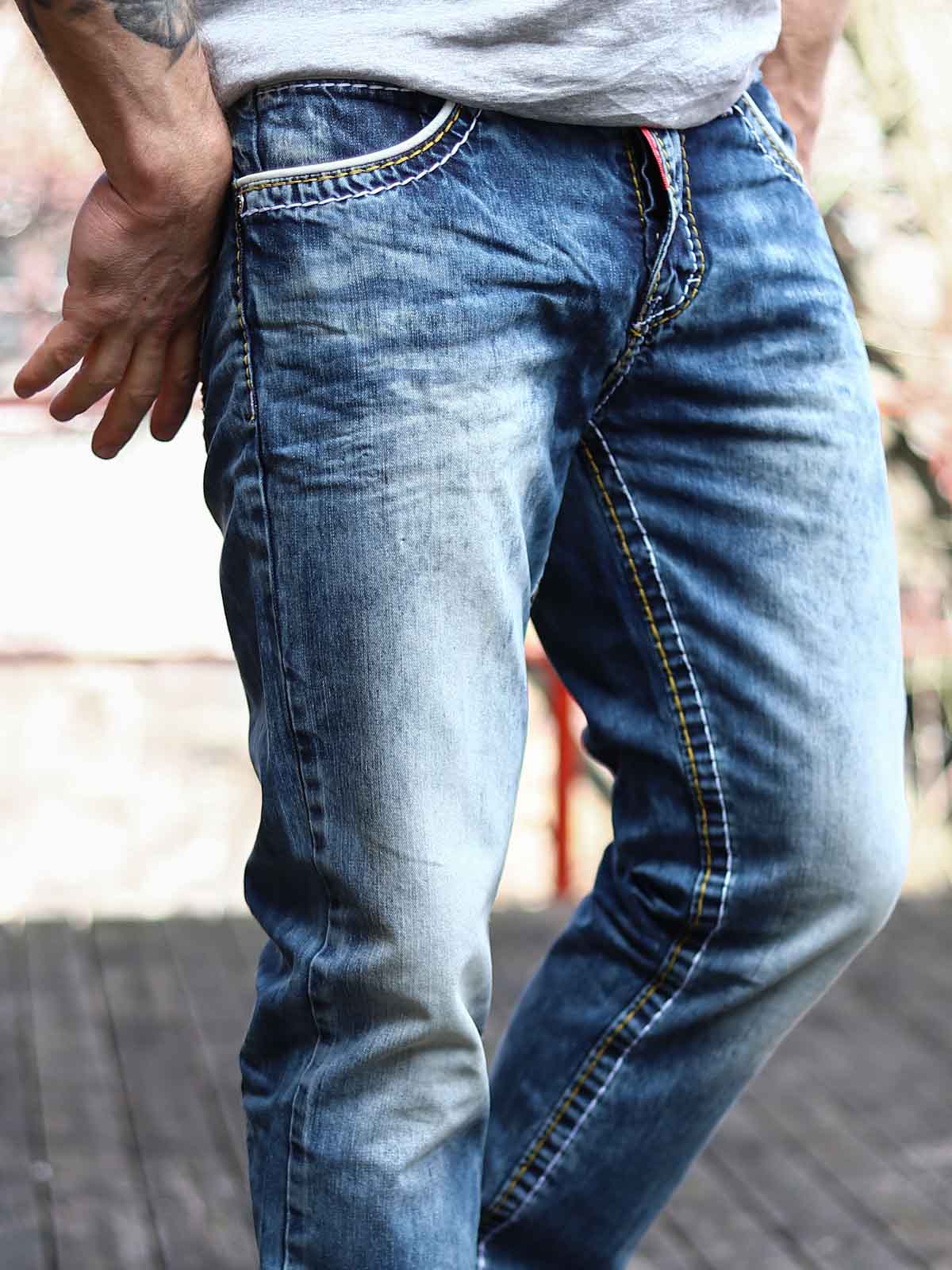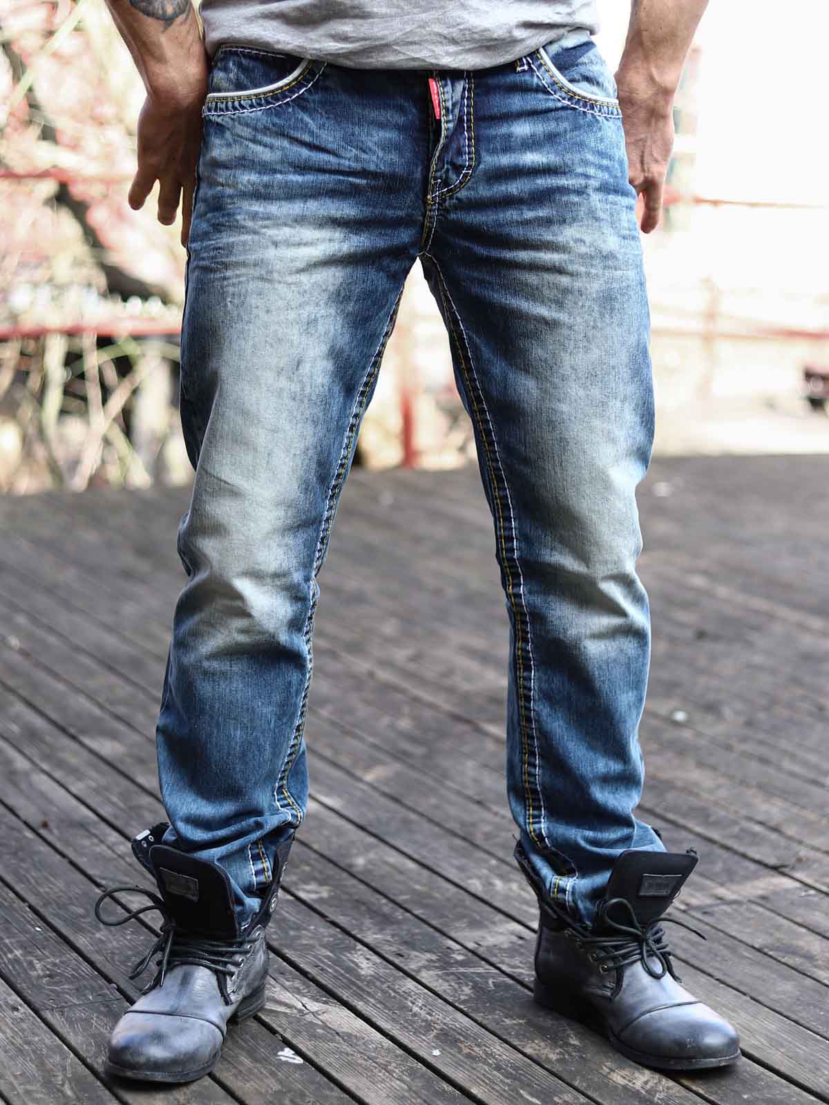 Bekväma jeans i klassisk passform med grova sömmar i kontrastfärger. Brun patch med loggan i linningen och gott om rymliga fickor.