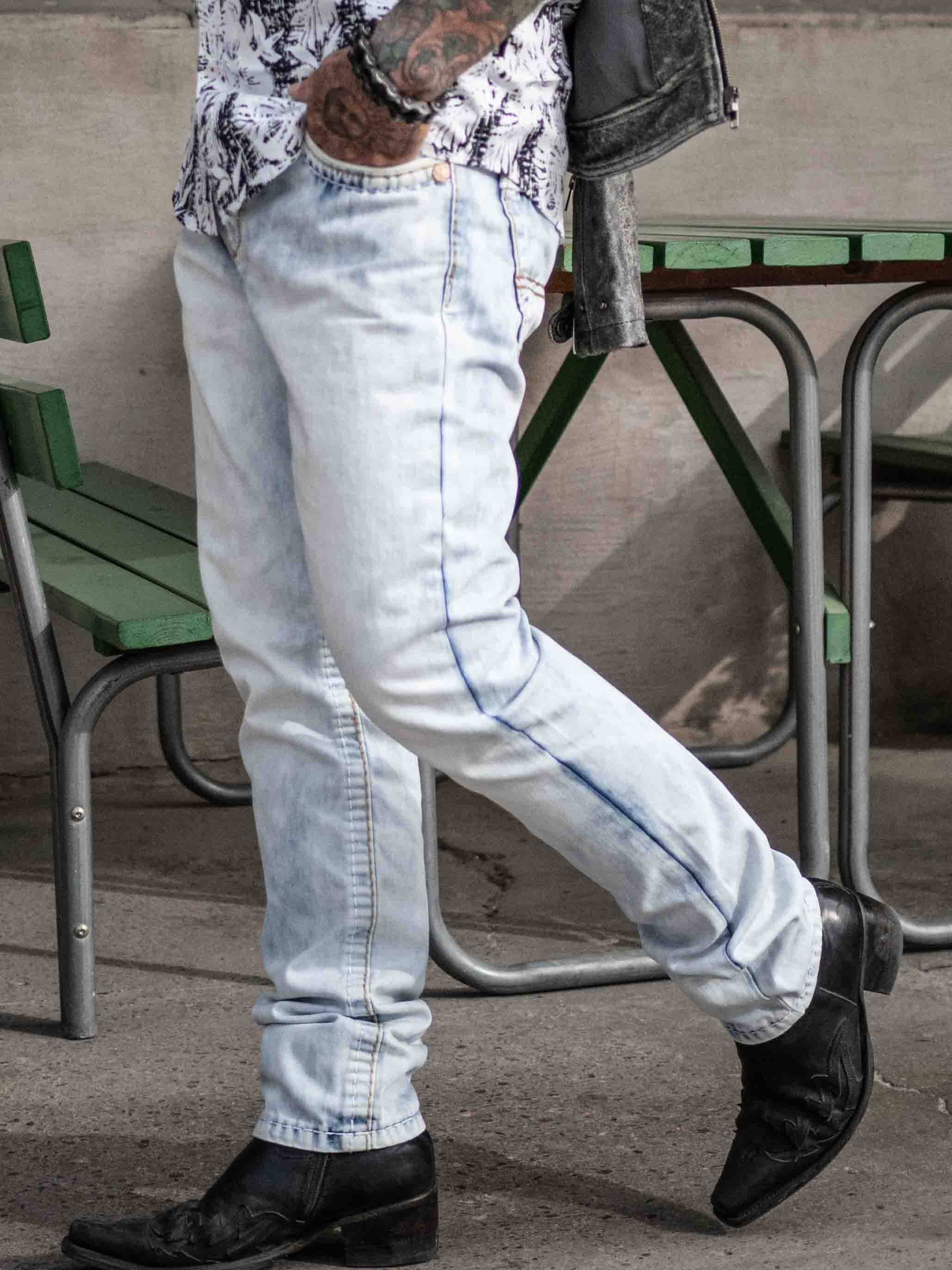 Stentvättade jeans i klassisk passform med grova sömmar i kontrastfärger. De har fyra framfickor och två bakfickor. Snygga byxor som passar till det mesta!