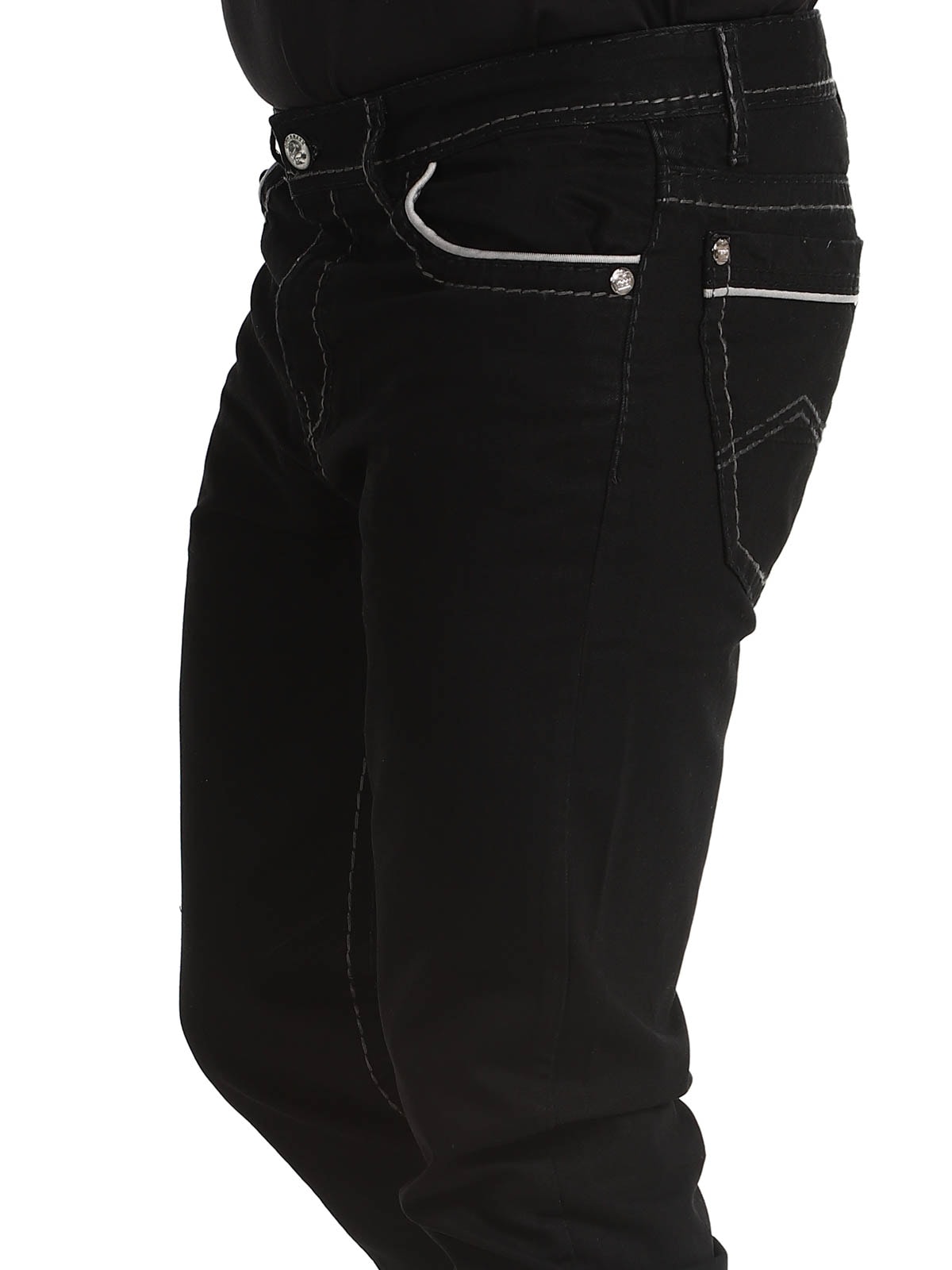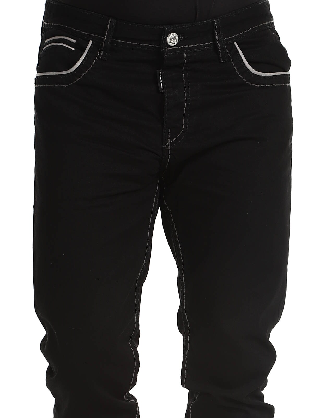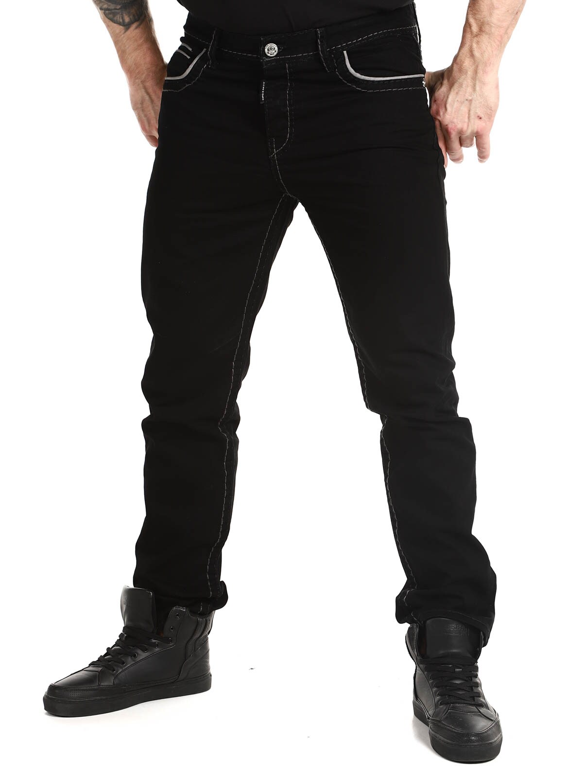 Svarta jeans i klassisk passform med grova sömmar i kontrastfärger. De har fyra framfickor och två bakfickor. Snygga byxor som passar till det mesta!