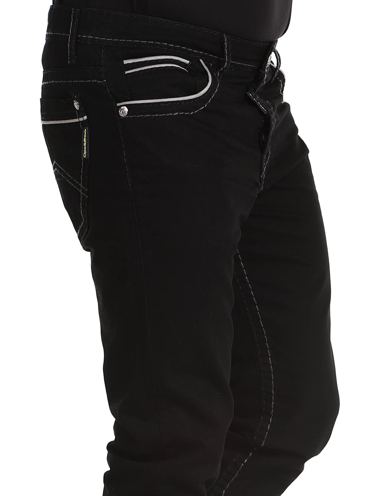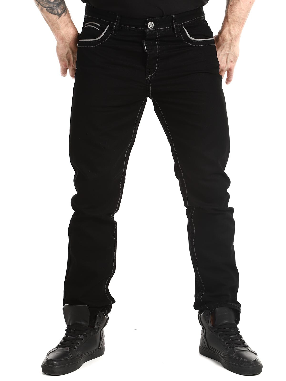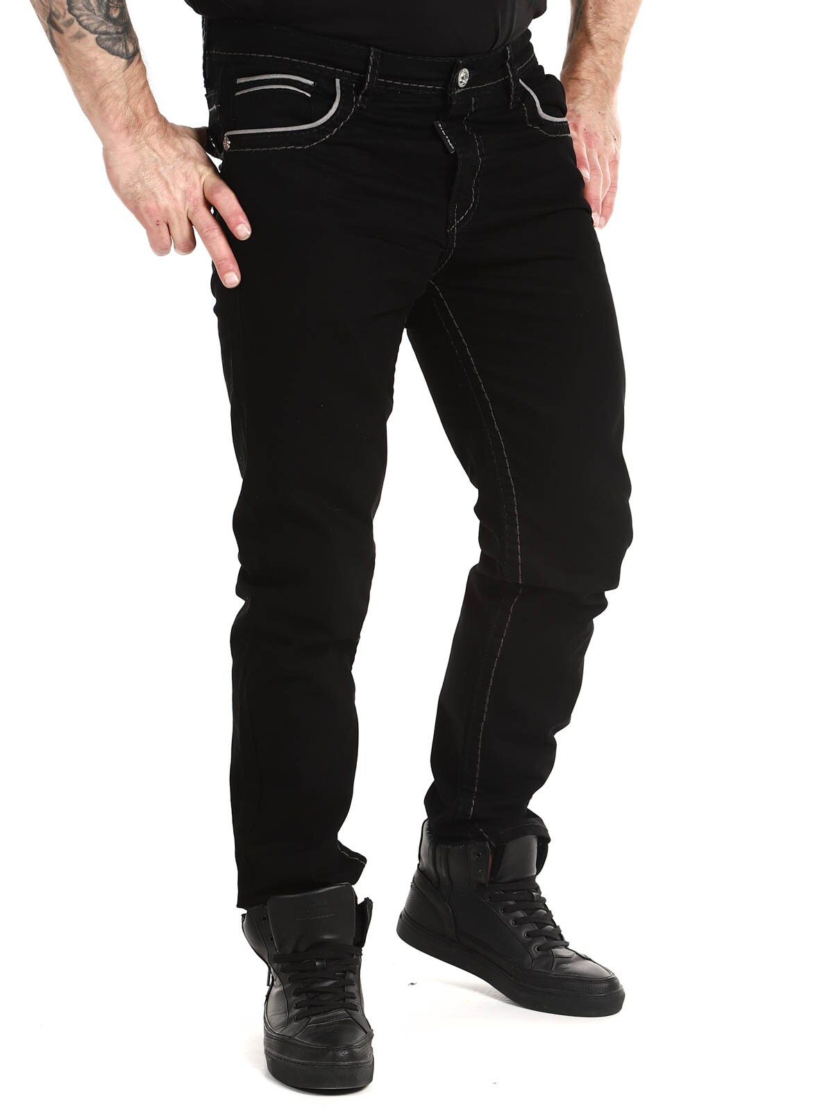 Svarta jeans i klassisk passform med grova sömmar i kontrastfärger. De har fyra framfickor och två bakfickor. Snygga byxor som passar till det mesta!