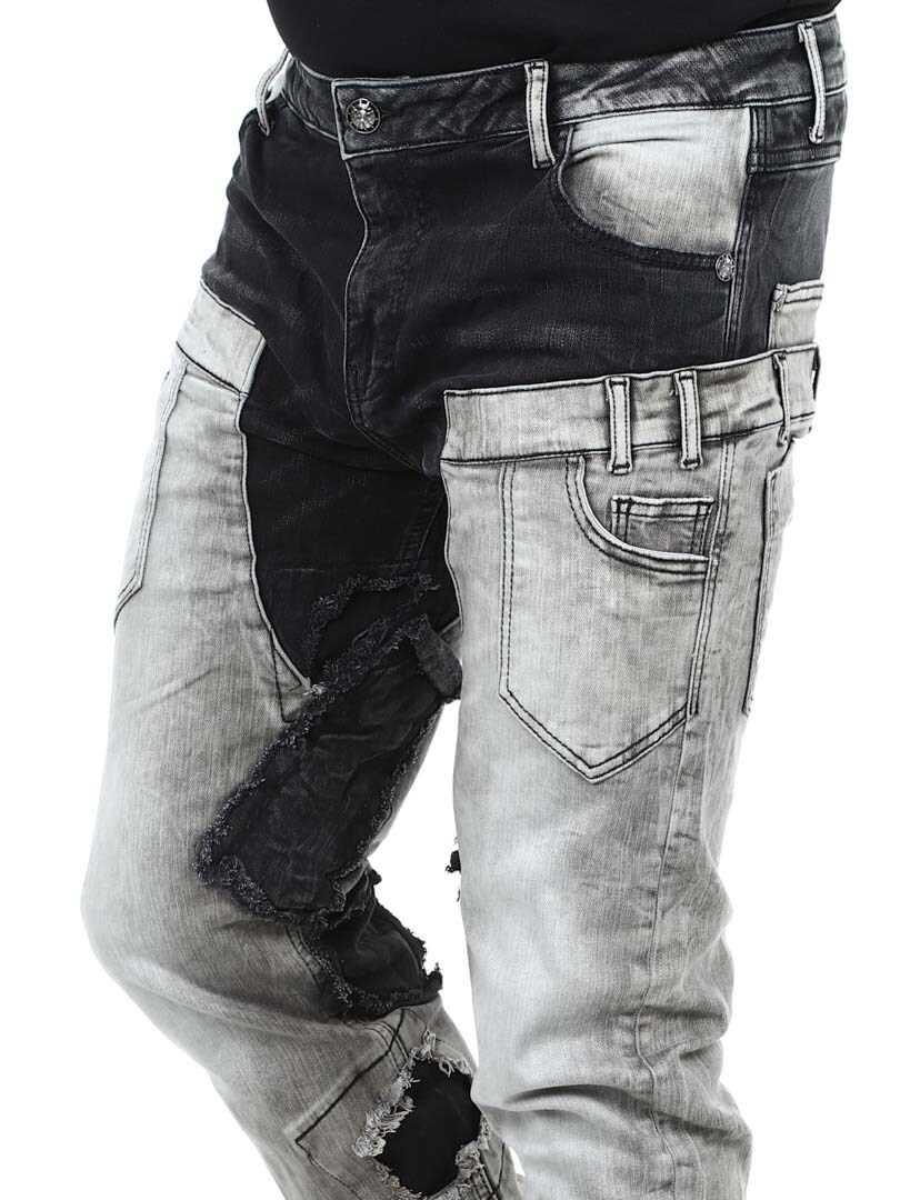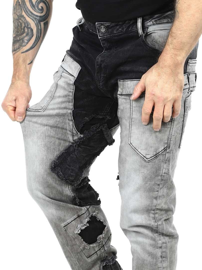 Jeans i regular fit med en dubbel jeanslook och flera fickor. Materialet är stretchigt och bekvämt, vilket ger en bra passform utan att kompromissa med rörelsefriheten. Perfekta att bära med sneakers för en avslappnad streetwear-stil eller med boots för en mer rock'n'roll-look.