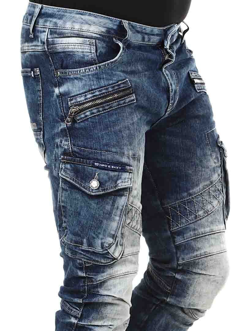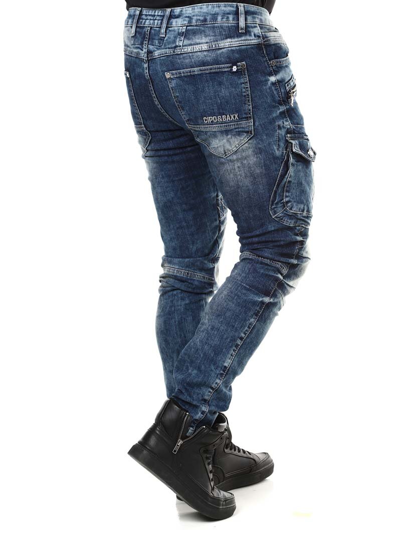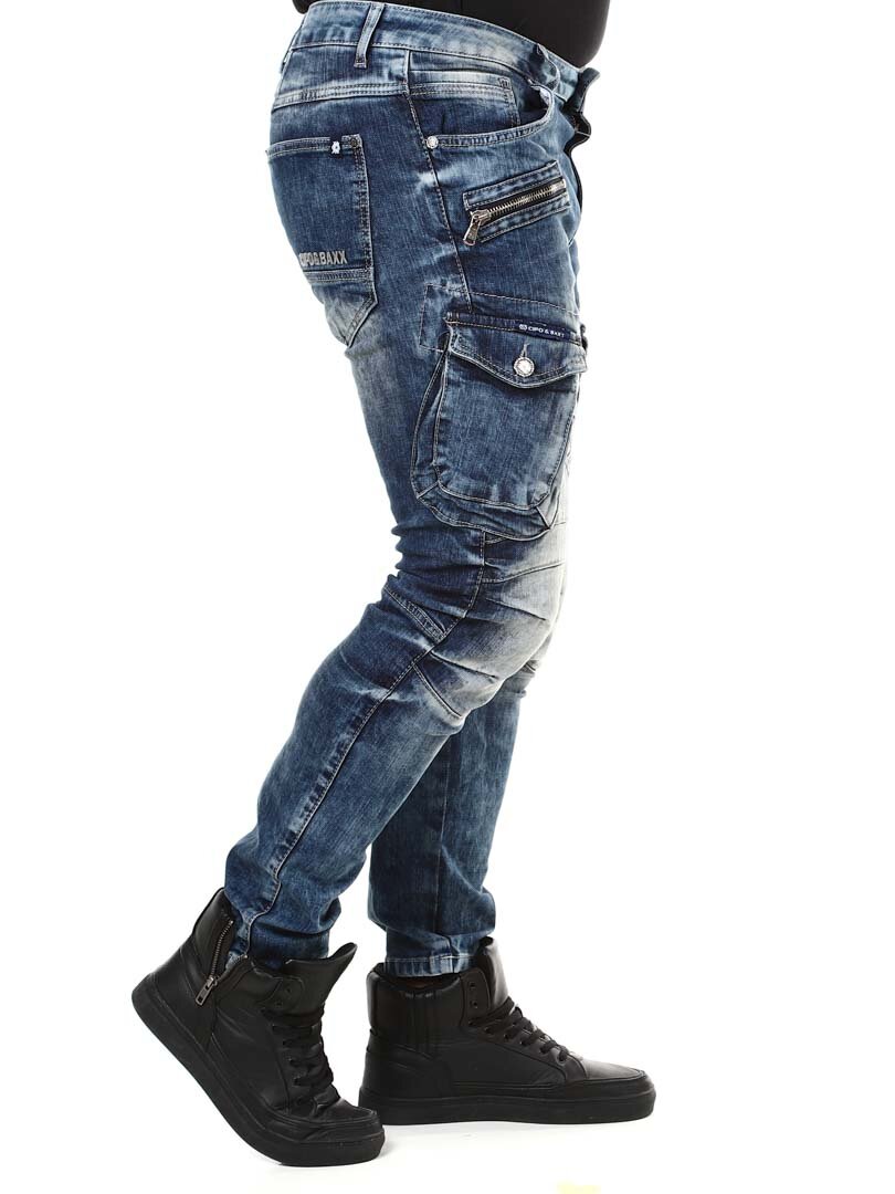 Snygga jeans i en klassisk modell med cargofickor. Detaljerade med dragkedjor, logga och sömmar. De har bälteshällor i midjan och dragkedjegylf.