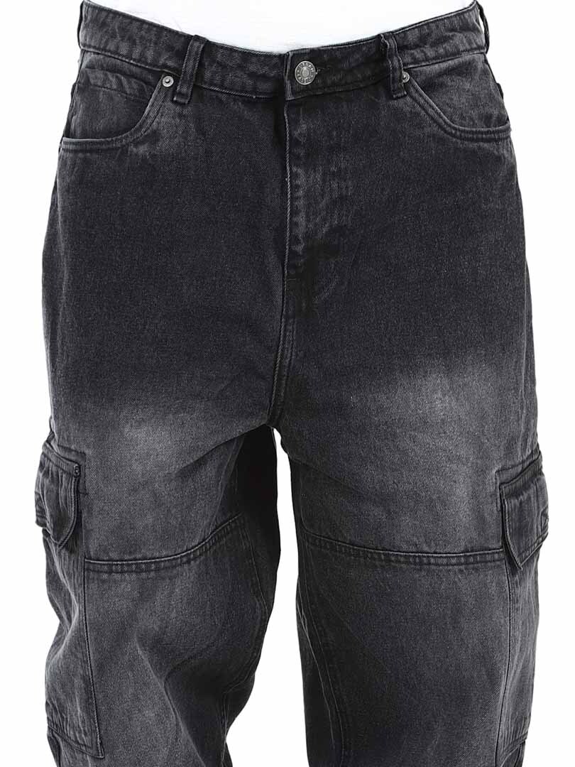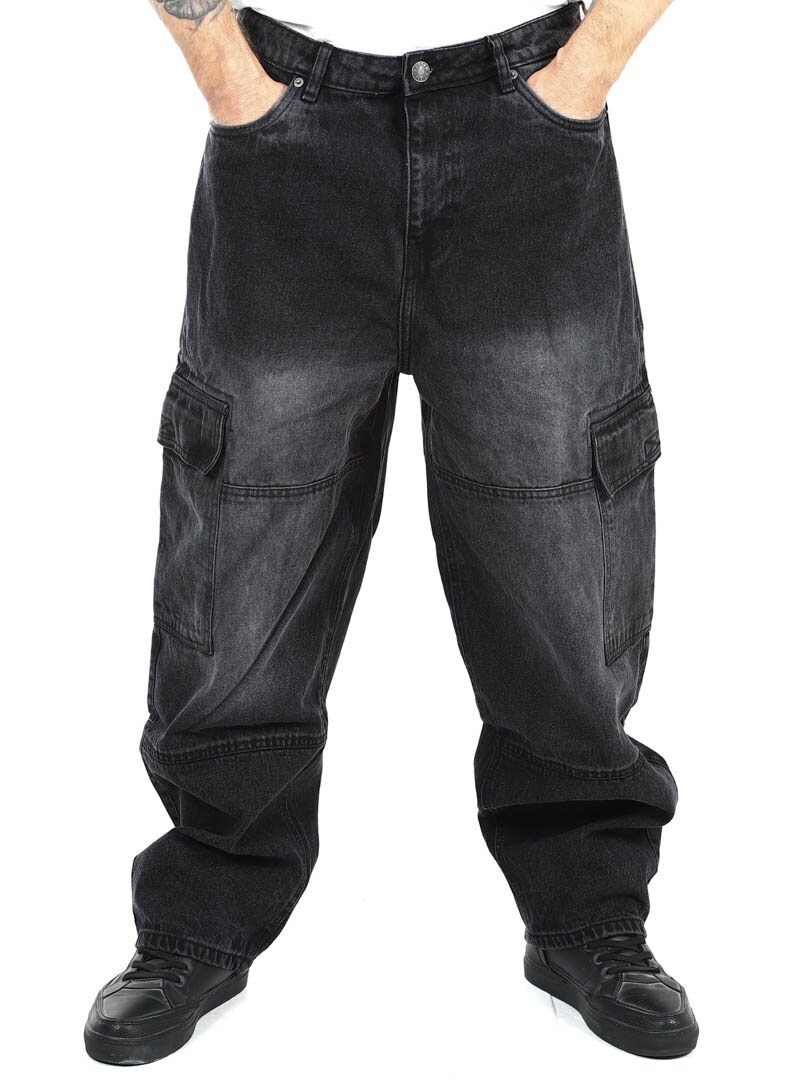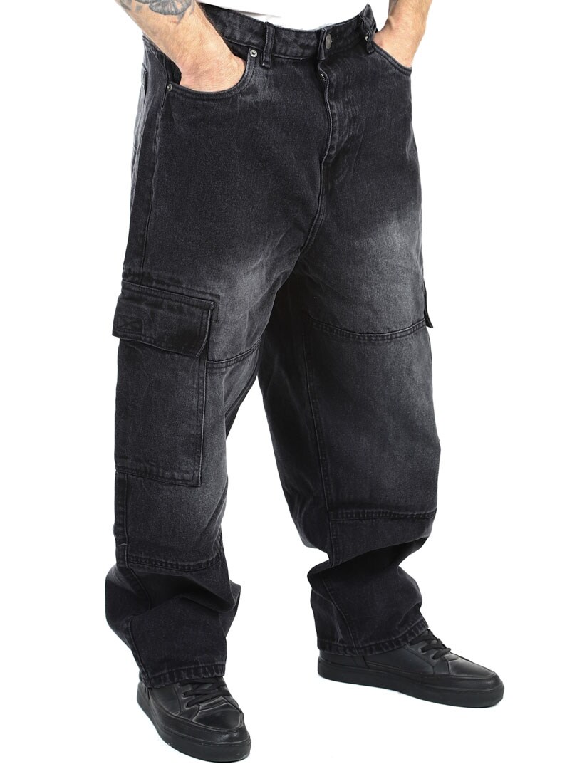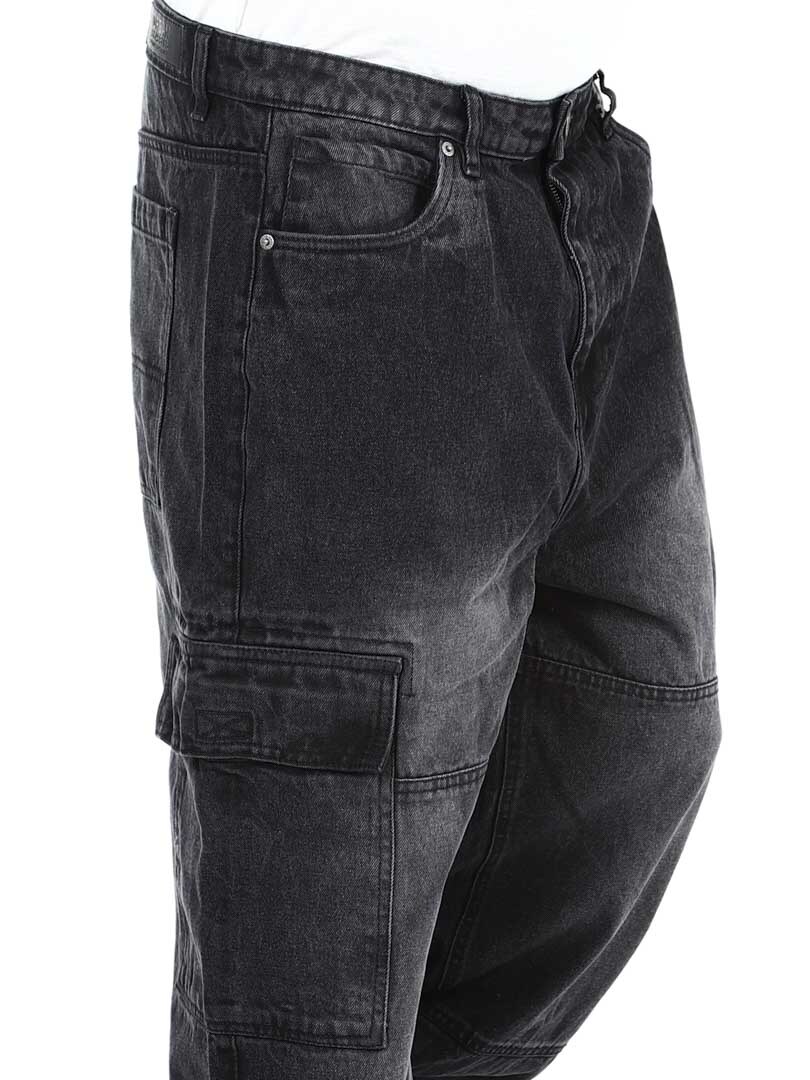 Cargobyxor i grov denim med snygg tvätt. De har fem klassiska fickor och två rymliga fickor med kardborre på benen. Med sin lösa passform erbjuder dessa jeans en kombination av stil och komfort för en trendig look!