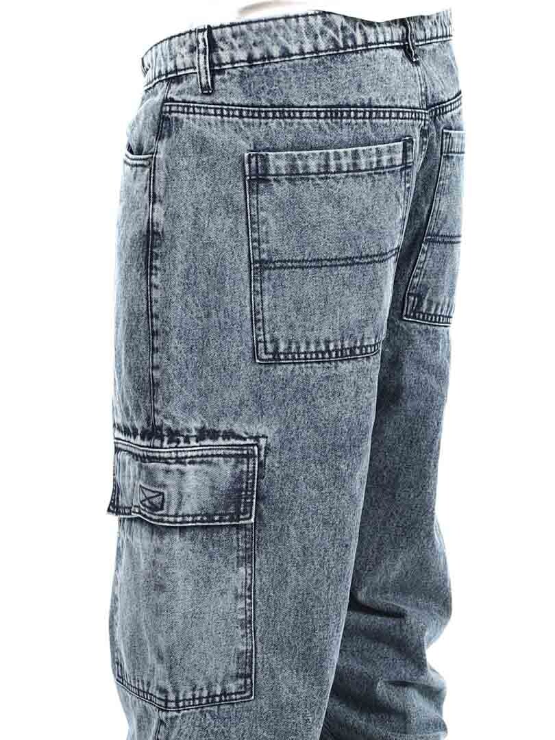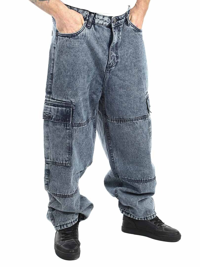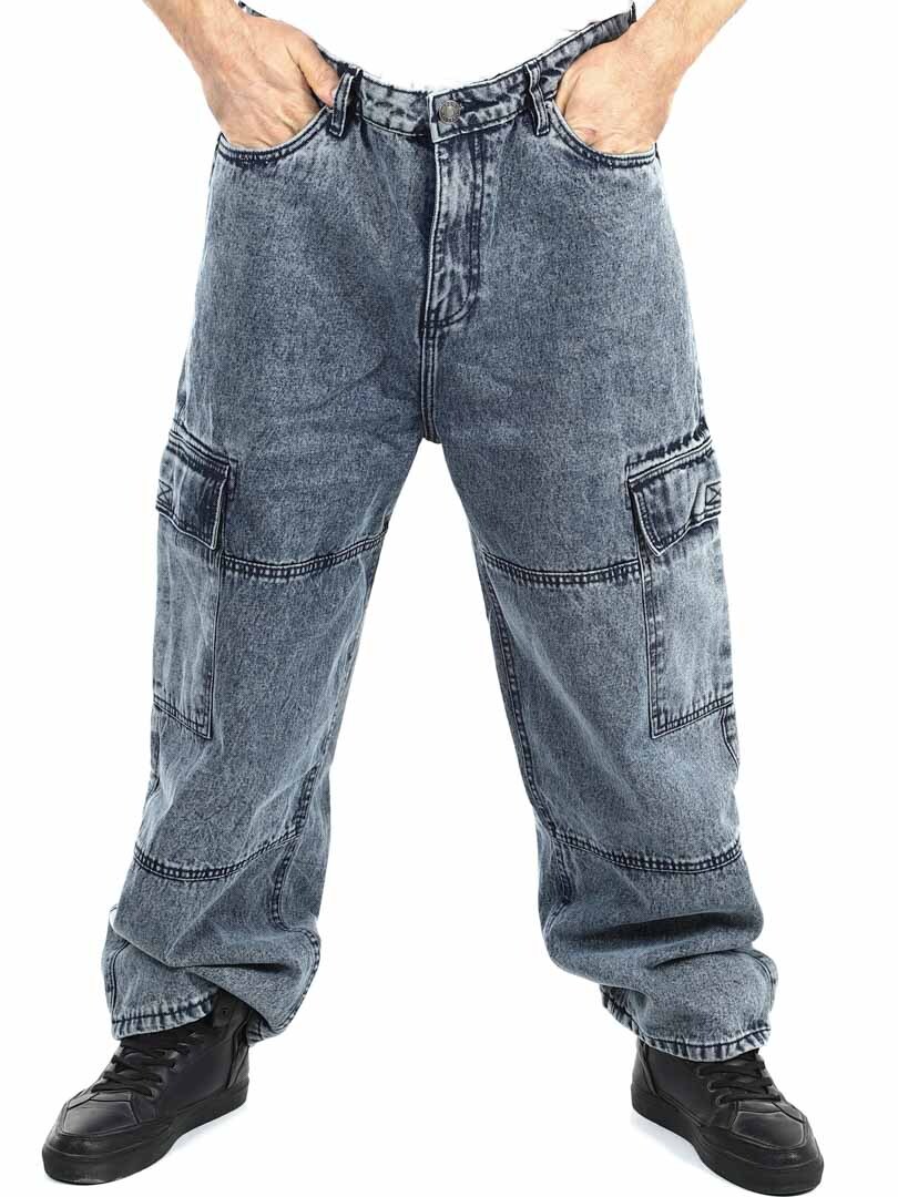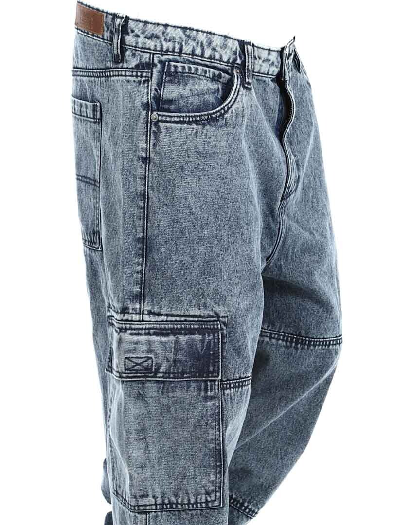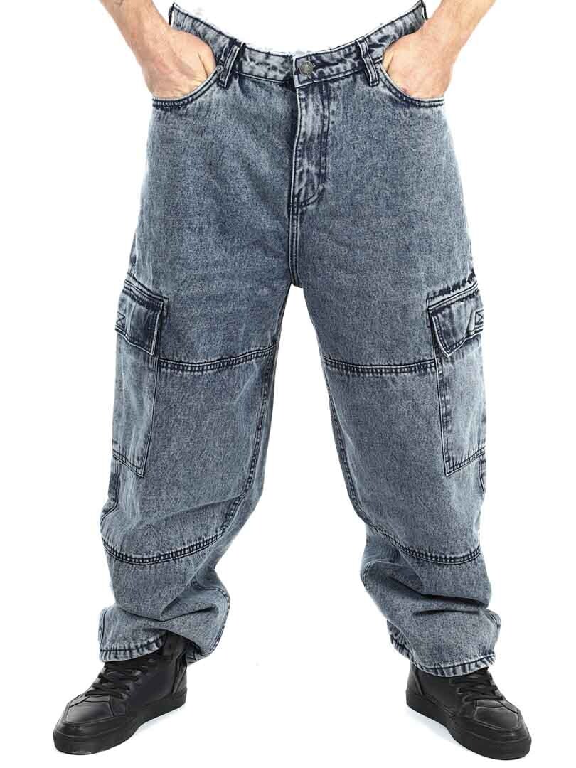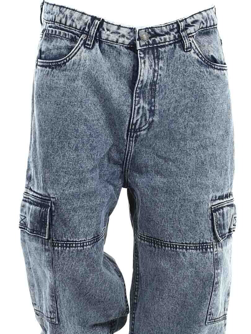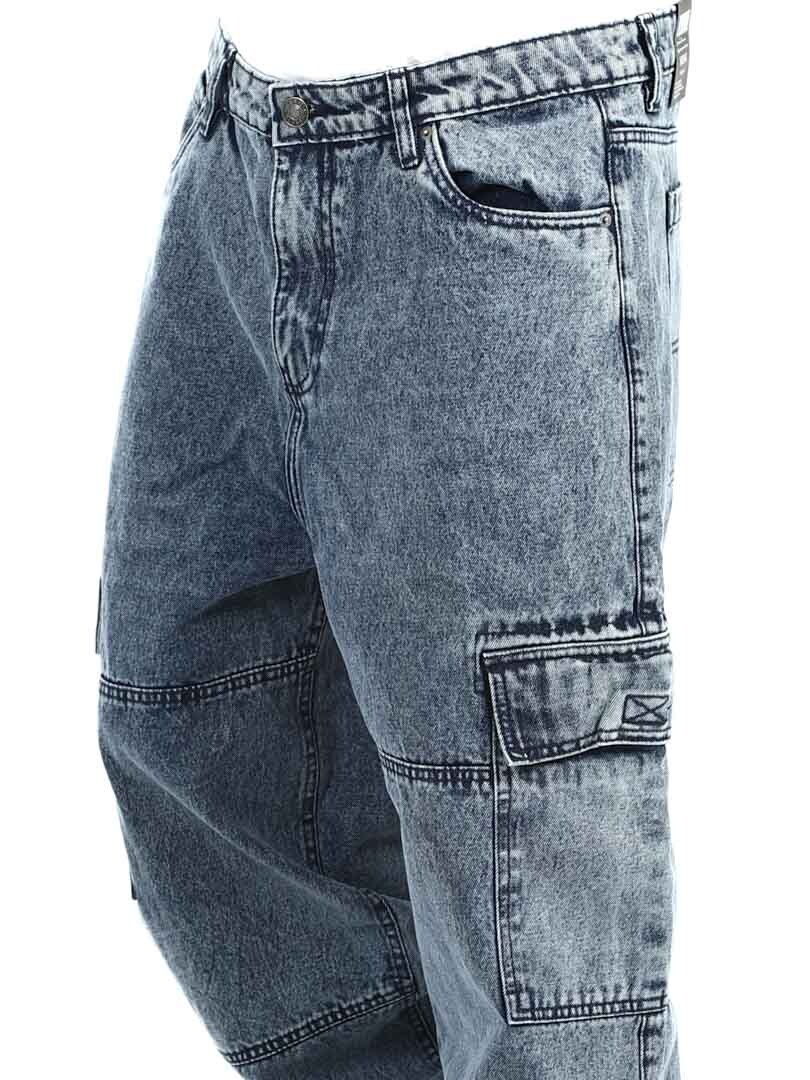 Cargobyxor i grov denim med snygg tvätt. De har fem klassiska fickor och två rymliga fickor med kardborre på benen. Med sin lösa passform erbjuder dessa jeans en kombination av stil och komfort för en trendig look!