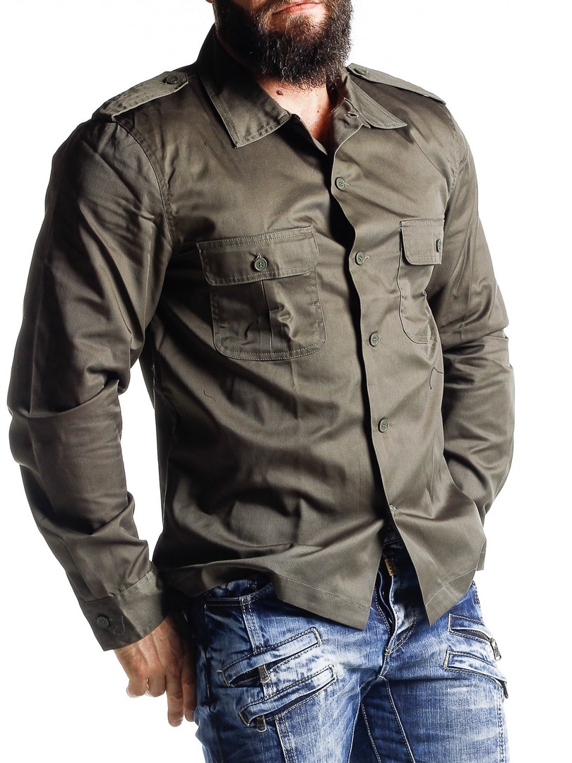 Armyinspirerad design med hällar på axlar och två stora bröstfickor som stängs med knappar. Rak modell och något glansig i materialet. Använd den som en skjorta vid de kallare årstiderna och som en tunnare jacka på sommaren. Finns i flera färger!