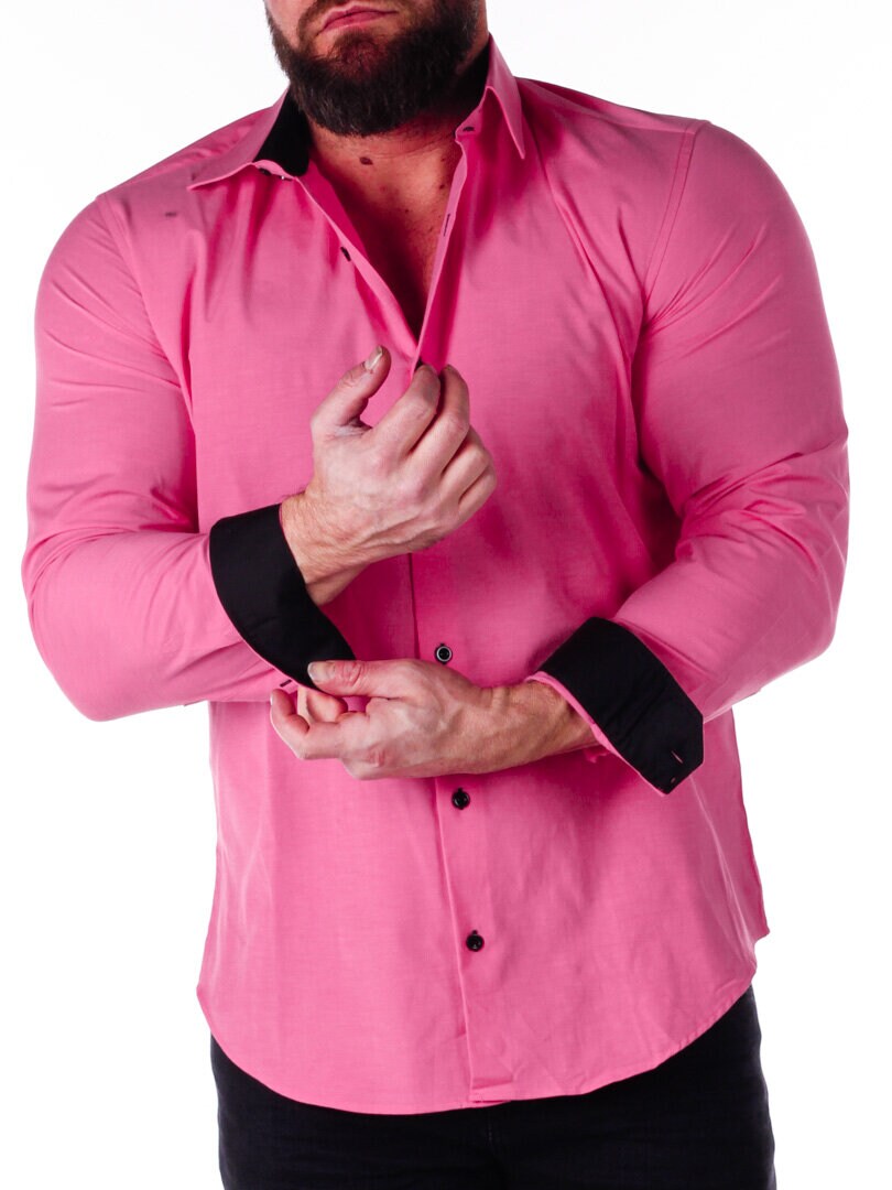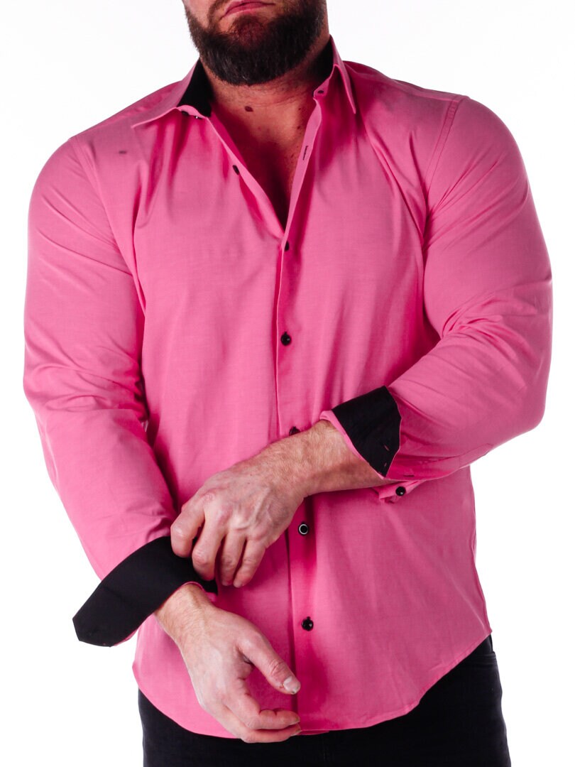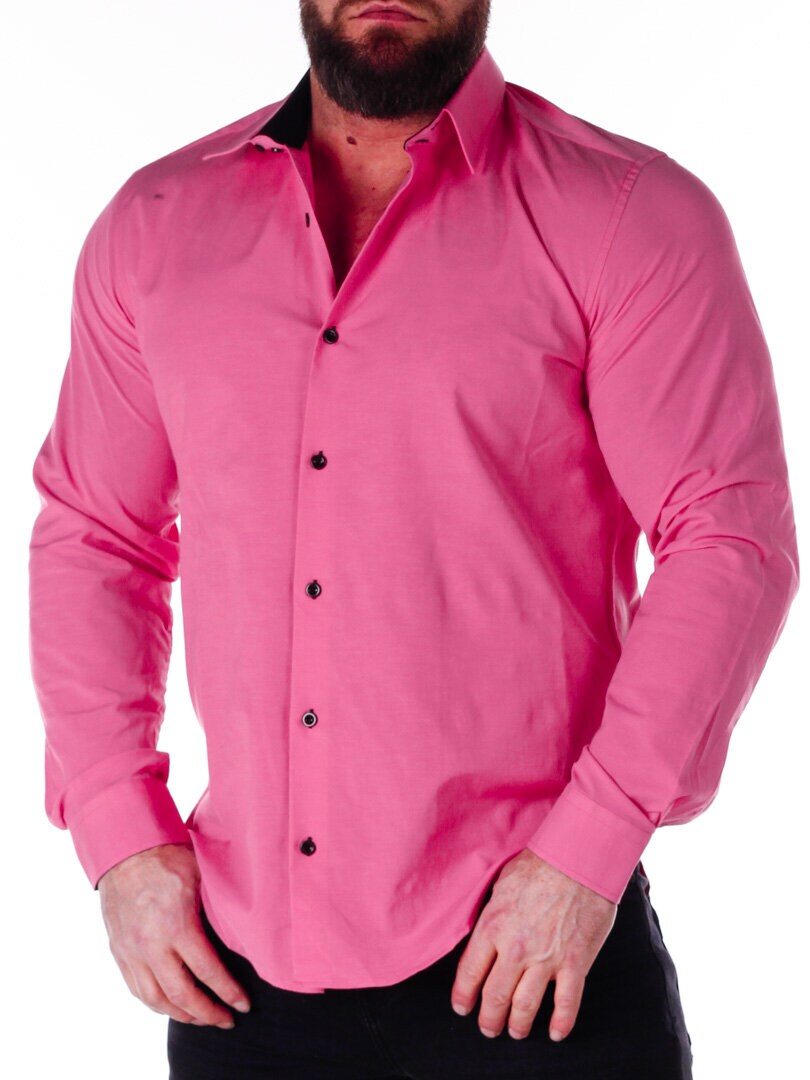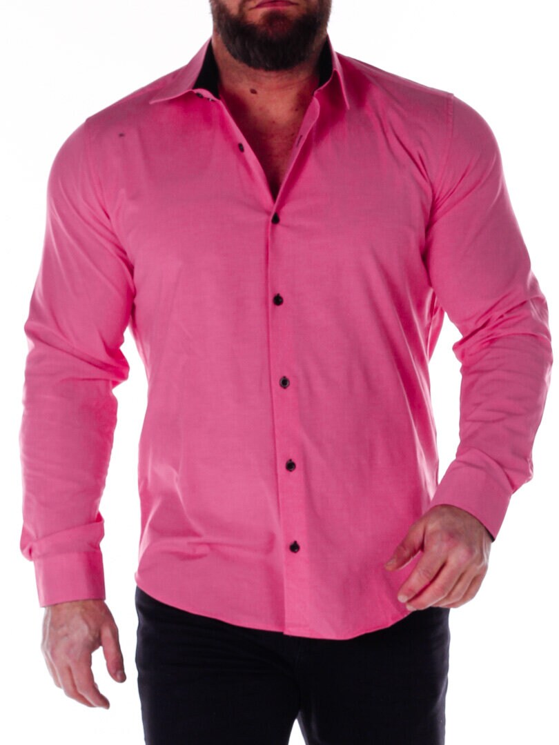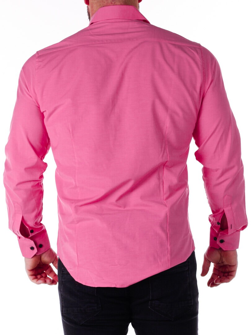 Bomullskjorta i bekväm modell som är något stretchig. Rosa bas med knappar, insida krage och ärmslut i kontrastfärg. Smalare modell med rundad linning nertill och förstärkt krage som håller formen. Finns i fler färger!