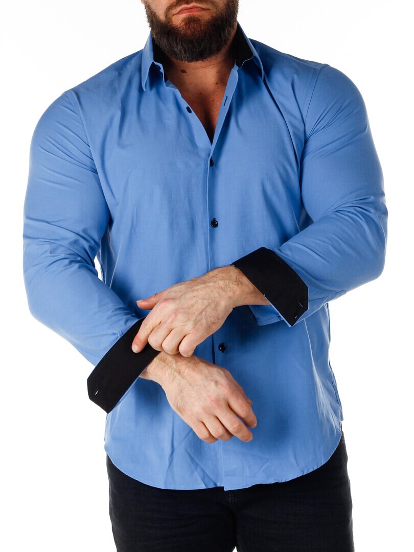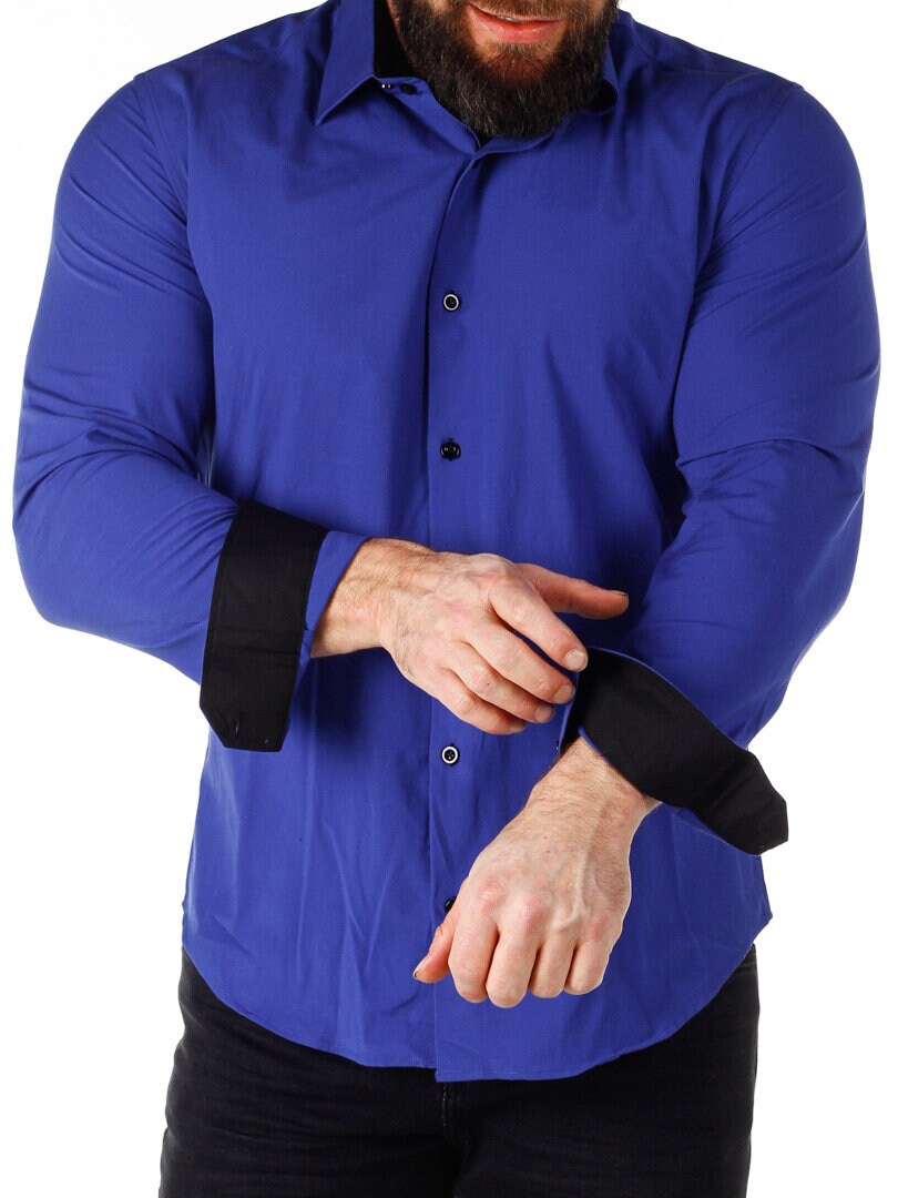 Bomullskjorta i bekväm modell som är något stretchig. Turkos bas med knappar, insida krage och ärmslut i kontrastfärg. Smalare modell med rundad linning nertill och förstärkt krage som håller formen. Finns i fler färger!