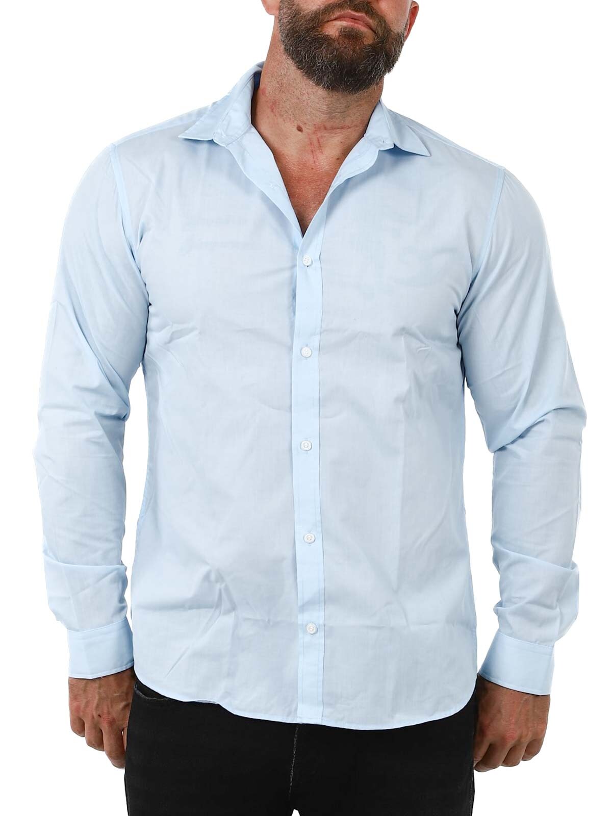 - Hals: Skjortkrage