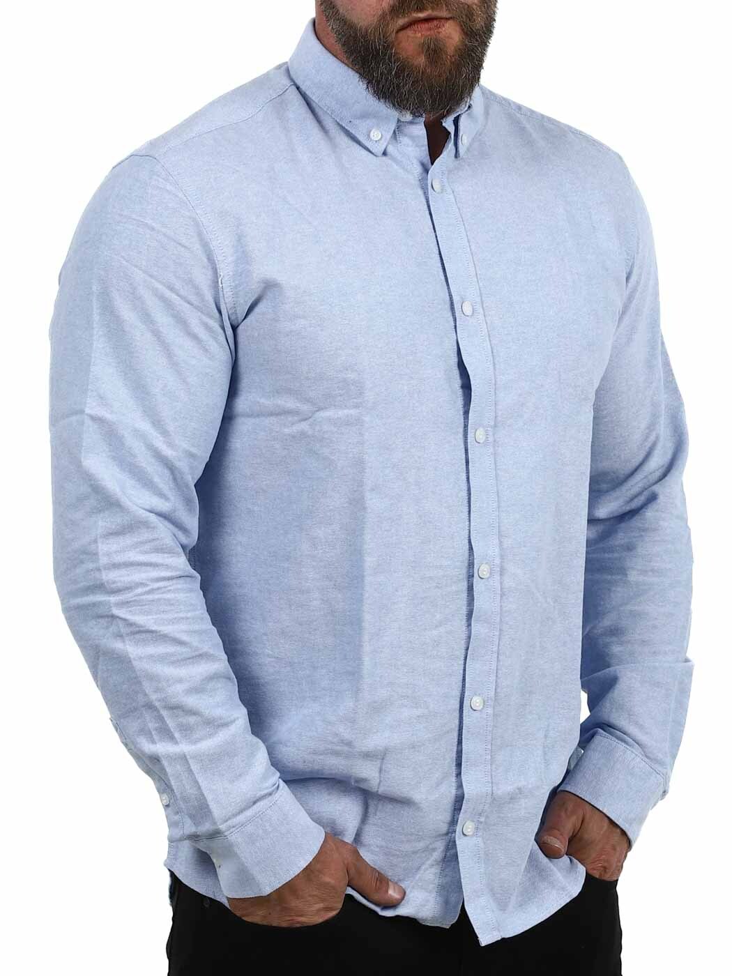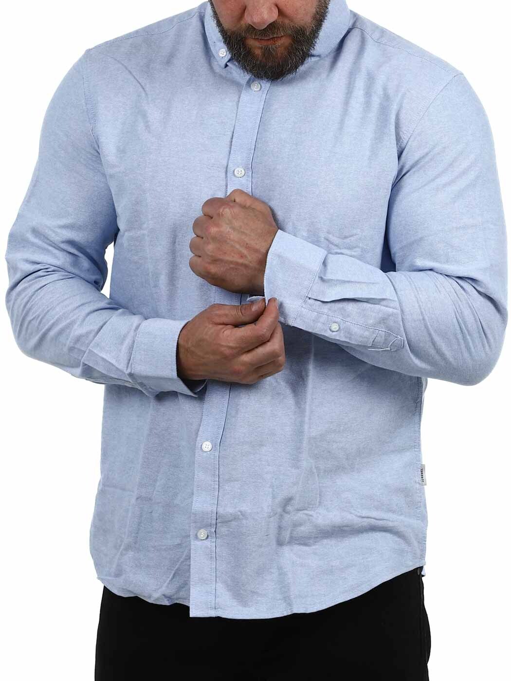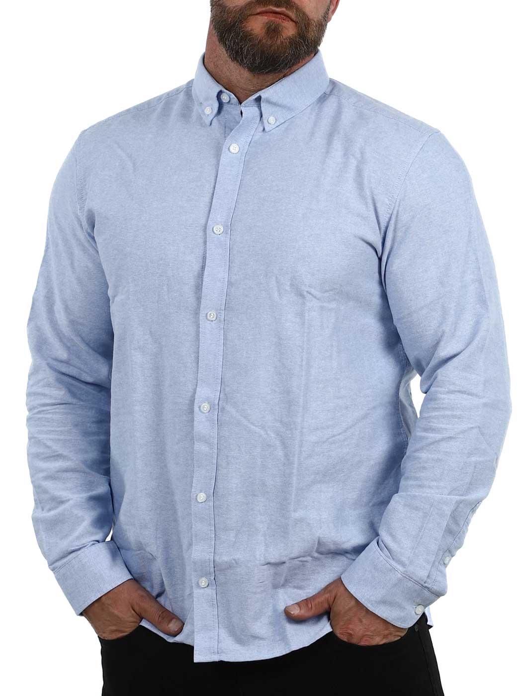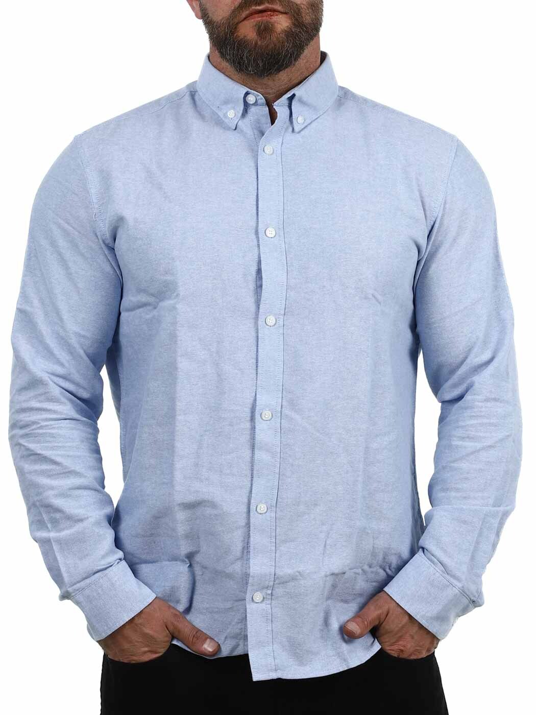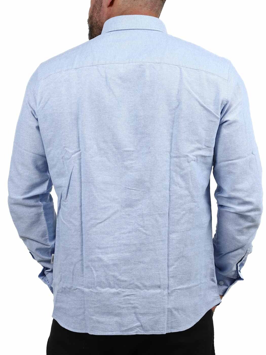 Denna långärmade skjorta i regular fit är ett mångsidigt plagg som passar både till kontoret och fritiden. Skjortans raka passform ger en avslappnad men ändå välklädd silhuett, medan den stilrena blå färgen gör den enkel att matcha med allt från jeans till kostymbyxor.