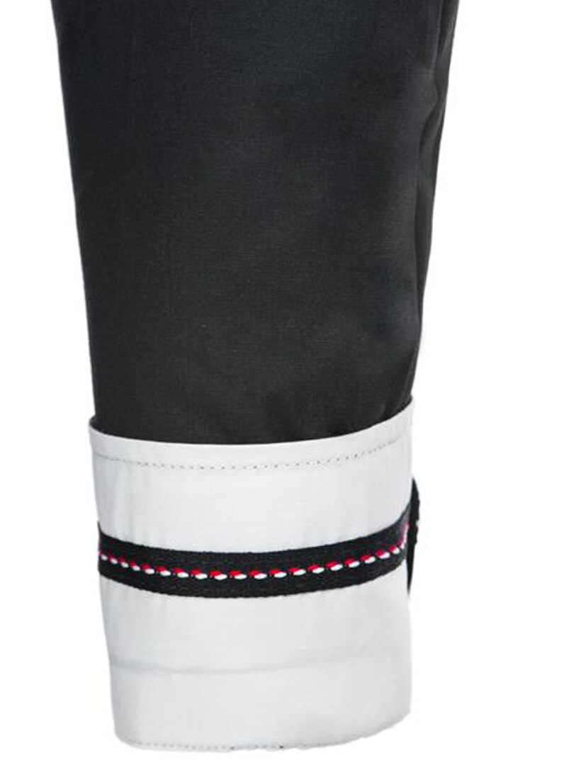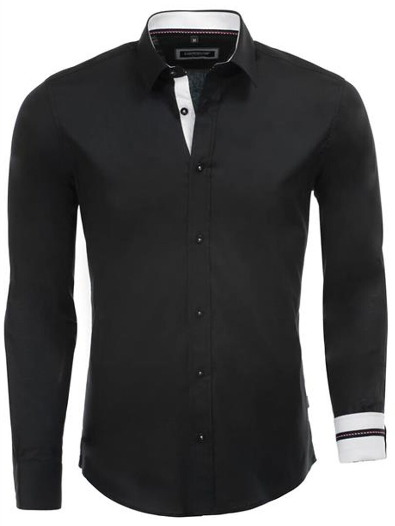 Stilig skjorta med svarta knappar och vit insida på ärmar och krage. Bekvämt bomullsmaterial med rundad linning nertill. Snygg att styla till ett par blåjeans!