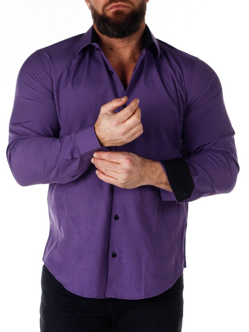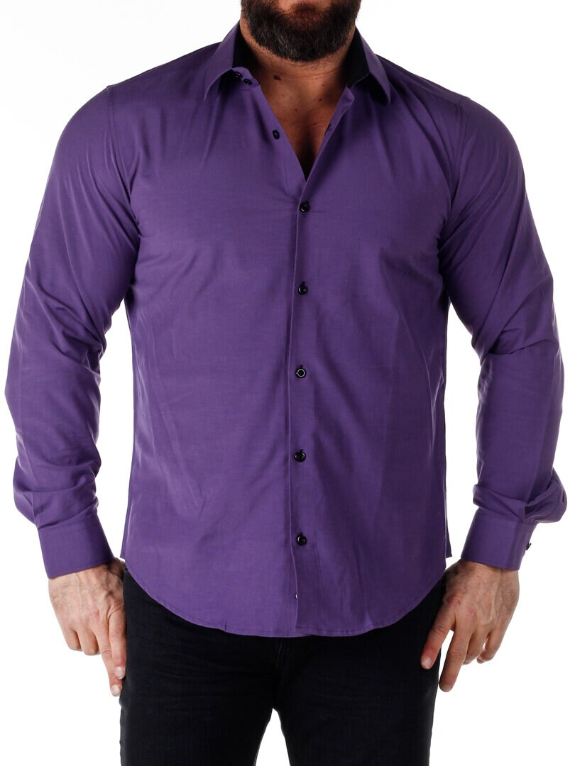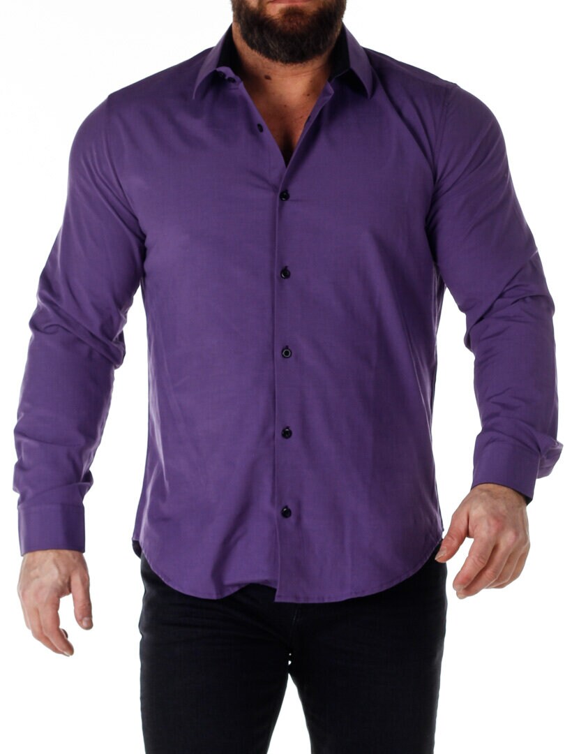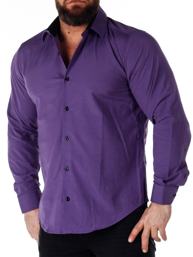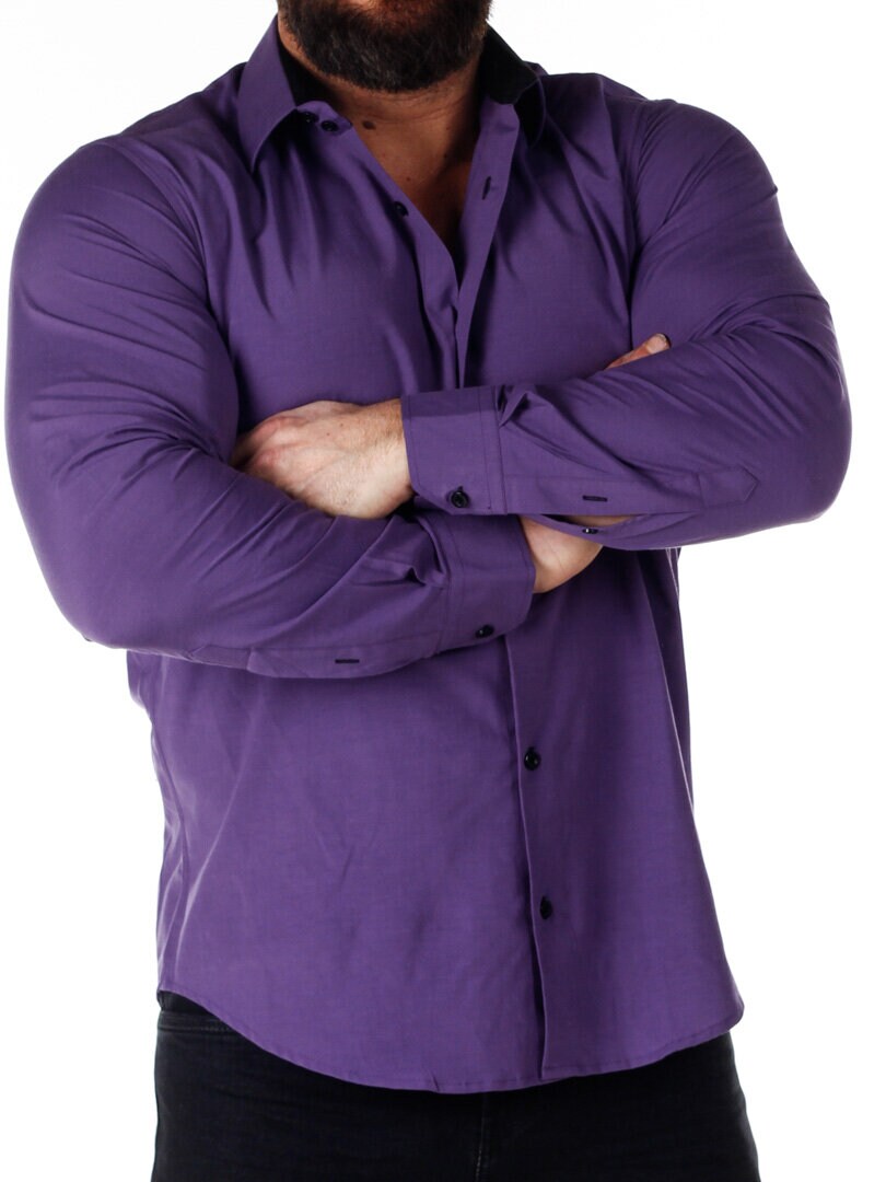 Bomullskjorta i bekväm modell som är något stretchig. Lila bas med knappar, insida krage och ärmslut i kontrastfärg. Smalare modell med rundad linning nertill och förstärkt krage som håller formen. Finns i fler färger!