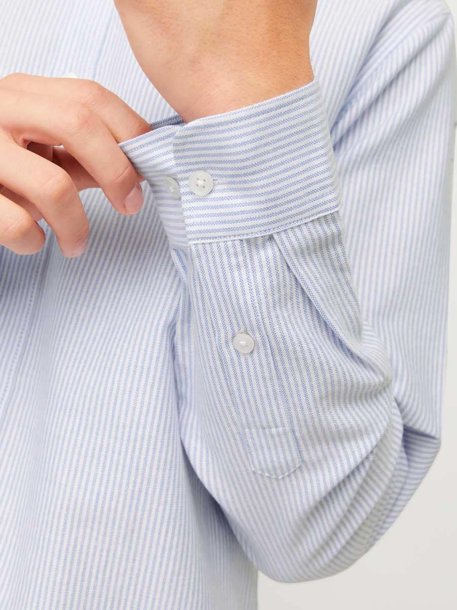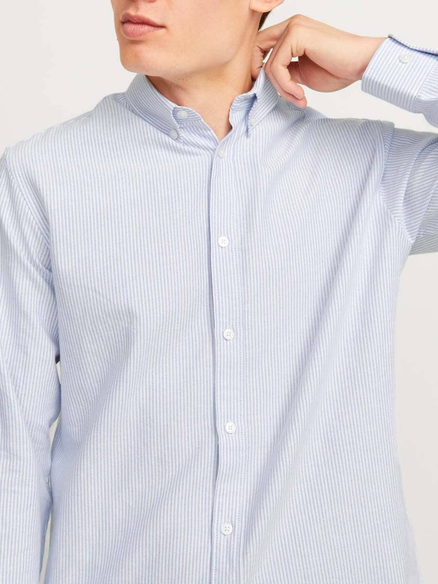 Denna långärmade skjorta i regular fit är ett mångsidigt plagg som passar både till kontoret och fritiden. Skjortans raka passform ger en avslappnad men ändå välklädd silhuett, medan den stilrena färgen gör den enkel att matcha med allt från jeans till kostymbyxor.