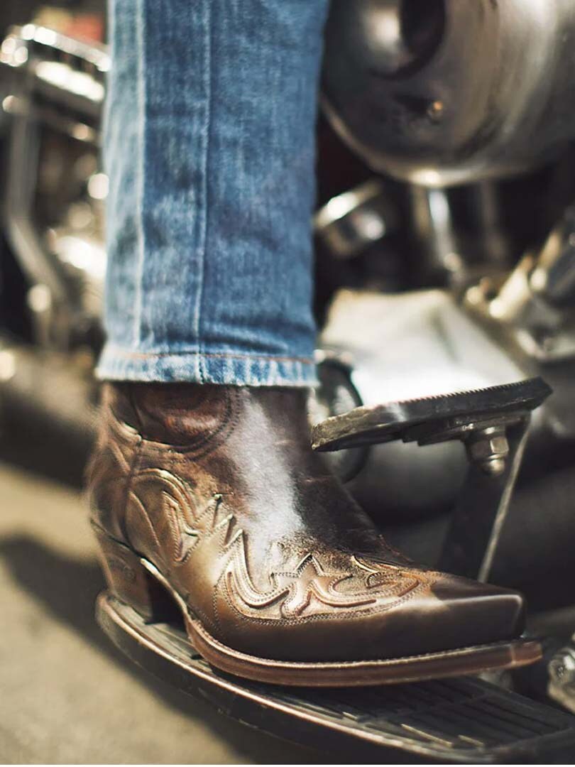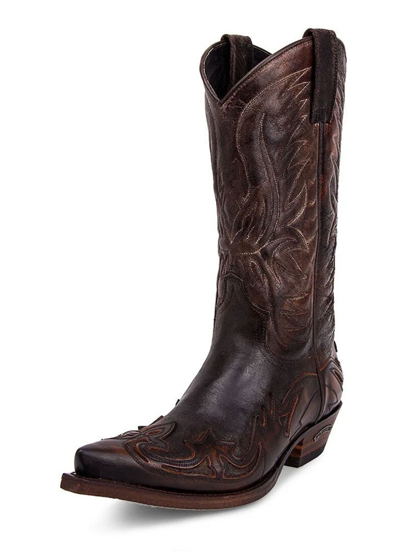 Handgjorda cowboyboots i äkta läder med intrikata sömmar som ger en autentisk look. Den spetsiga tån och den kubanska klacken ger en tidlös silhuett med attityd. För dig som uppskattar genuint hantverk och tidlös westernstil!