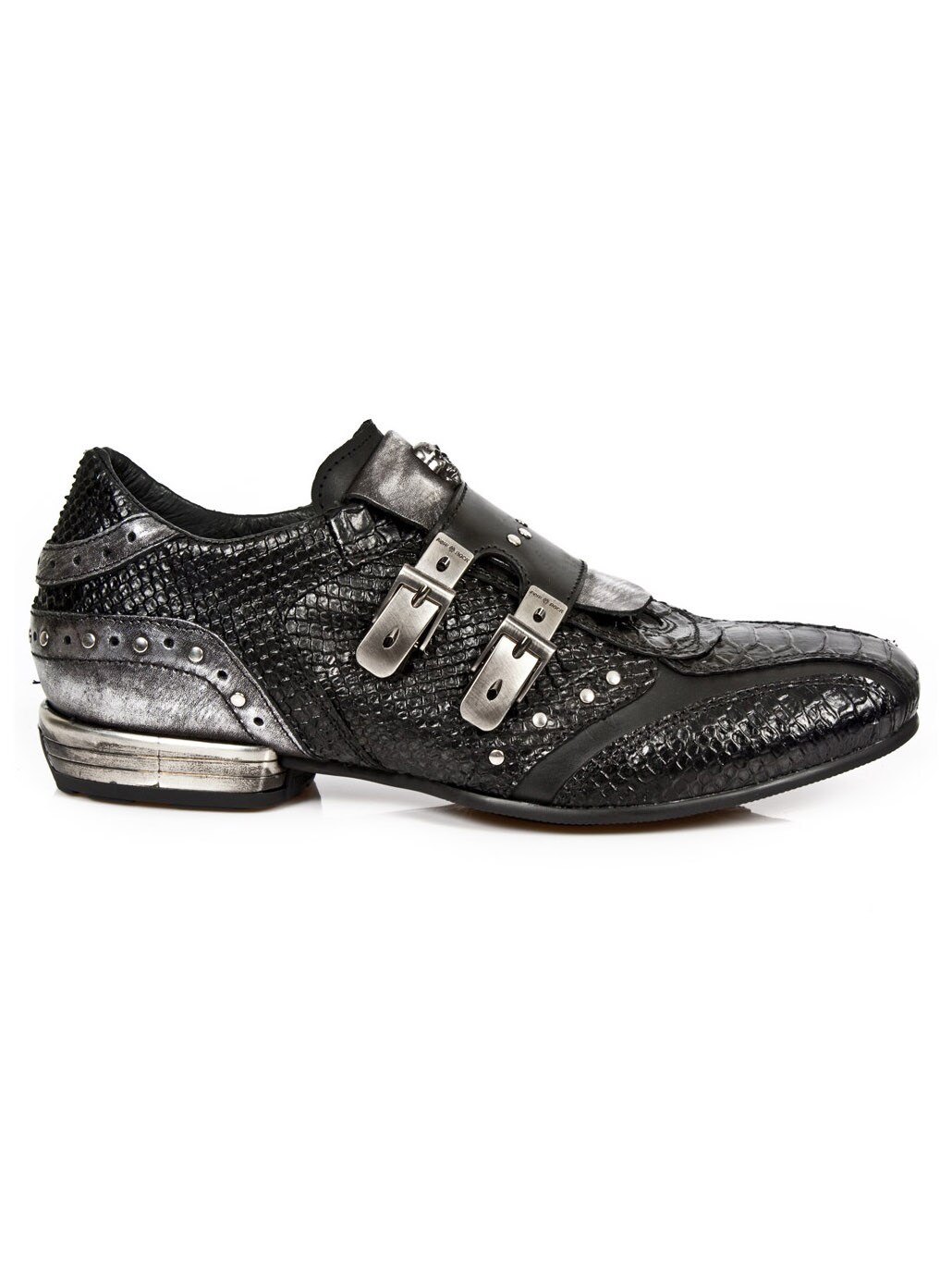 Svarta skor i äkta läder med mönster och lågt skaft. Detaljerade med röda partier, nitar och en rem av läder med två metallspännen. Dödskallepatch fram på skon. Denna unika sko finns i begränsad upplaga!