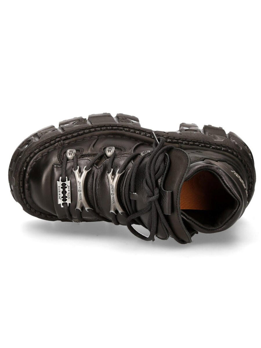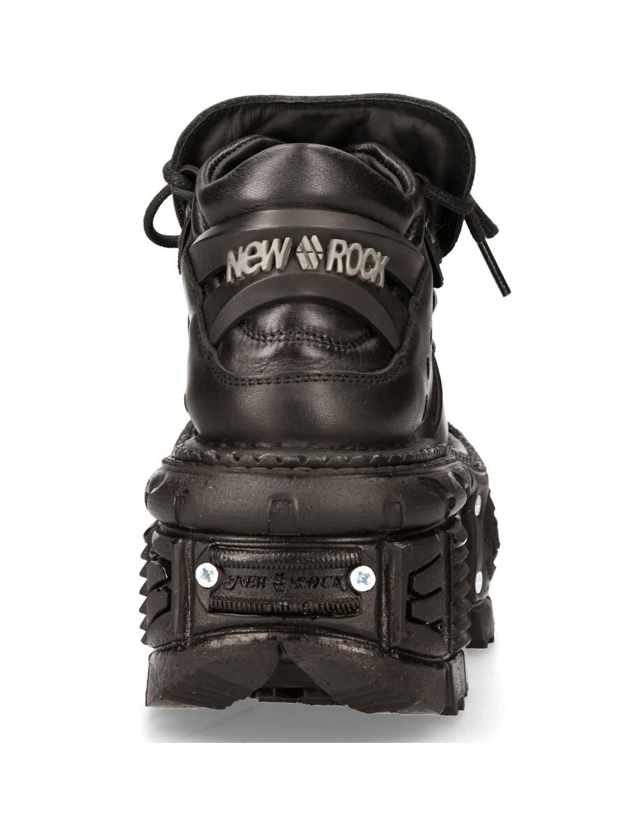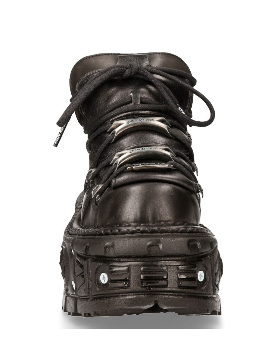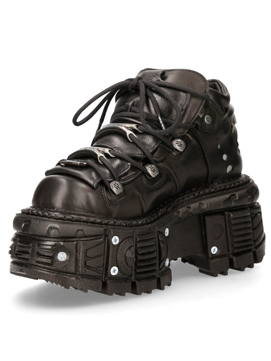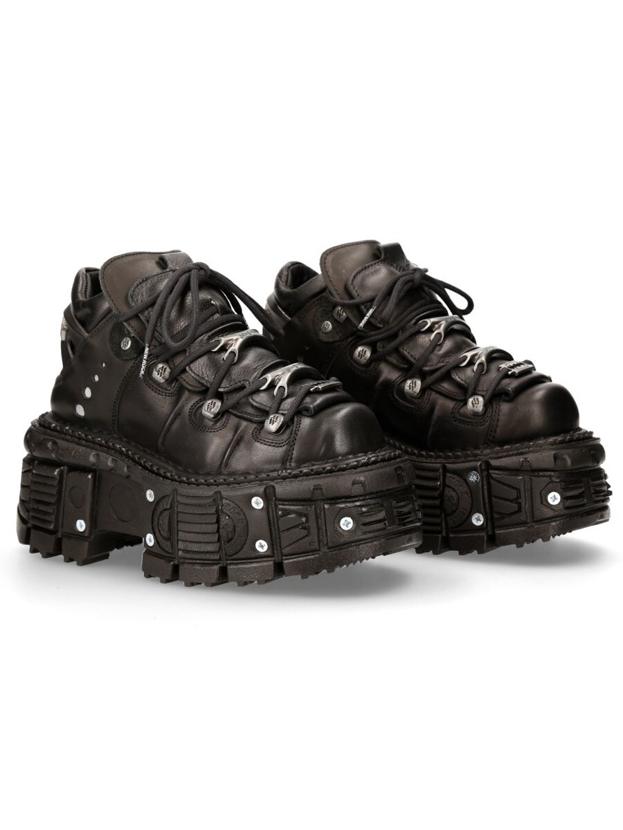 Dessa svarta, chunky skor i äkta läder är ett riktigt statement-piece för dig som vill sticka ut. Tillverkade i robust läder med kraftig snörning och metalliska detaljer. Den massiva, mönstrade plattformssulan är förstärkt med nitar och ger både höjd och stabilitet.