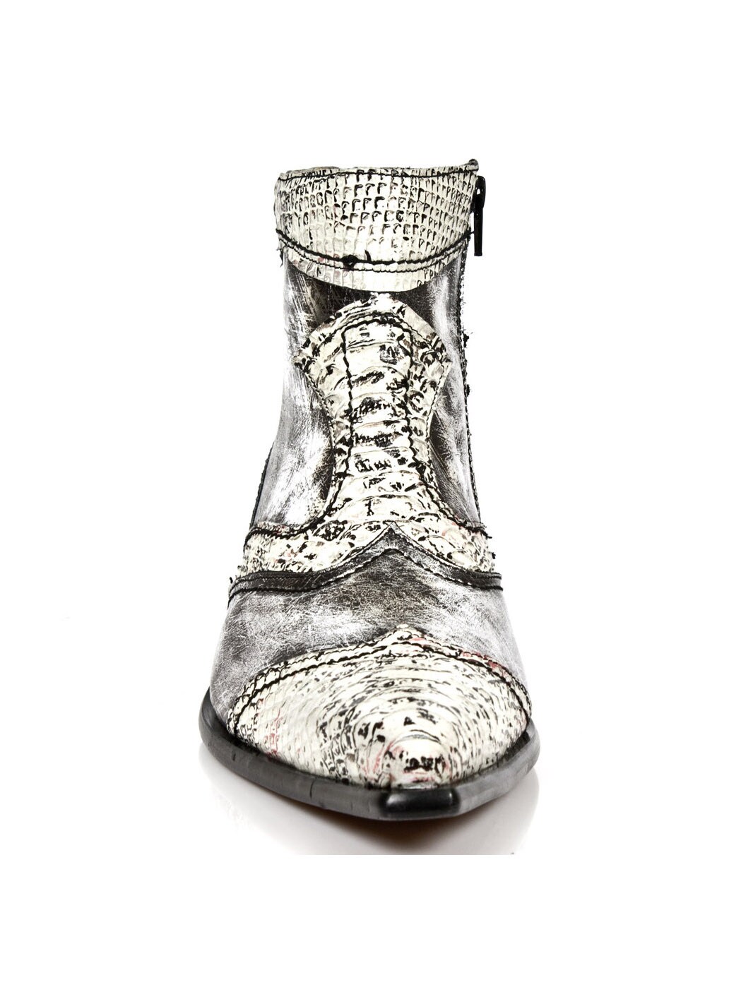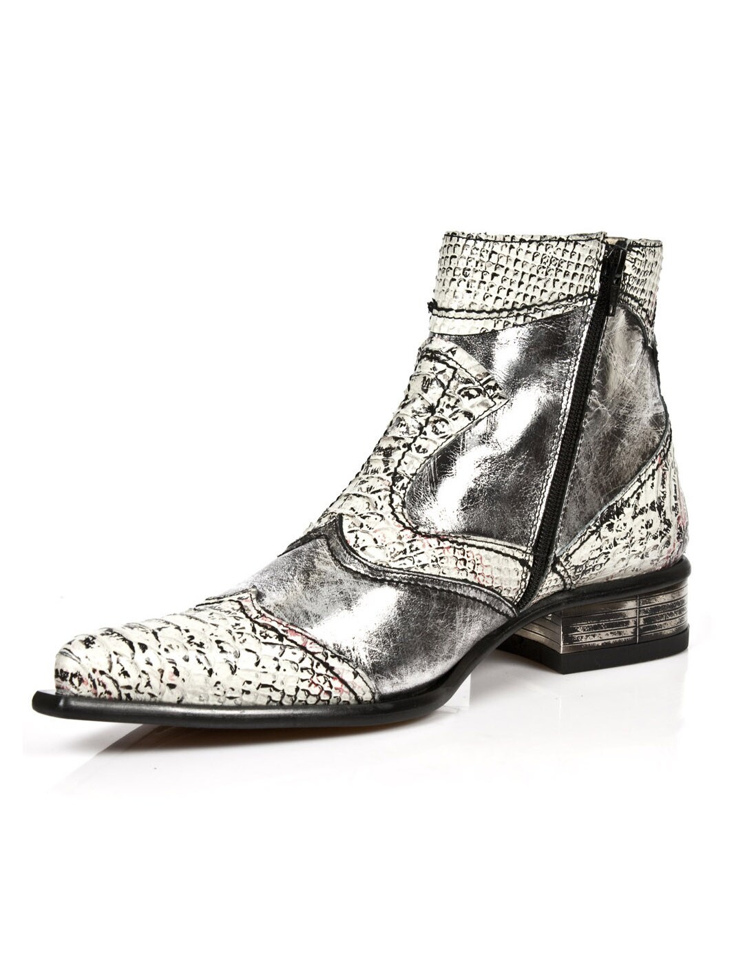 Ormskinnsmönstrade boots med silvriga effekter i en cowboy/rock-stil. Spetsig modell med låg klack. Dragkedja på insidan som gör dem smidiga att ta av och på. Unika skor som endast produceras i ett fåtal exemplar!