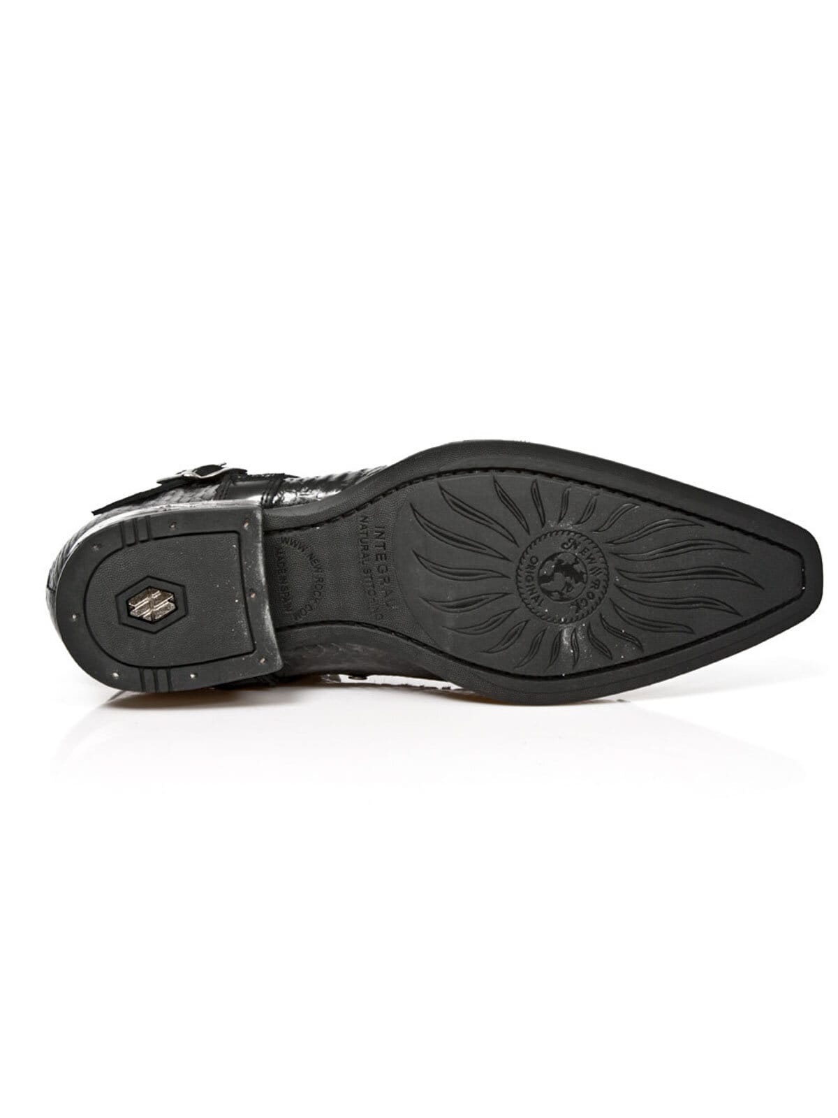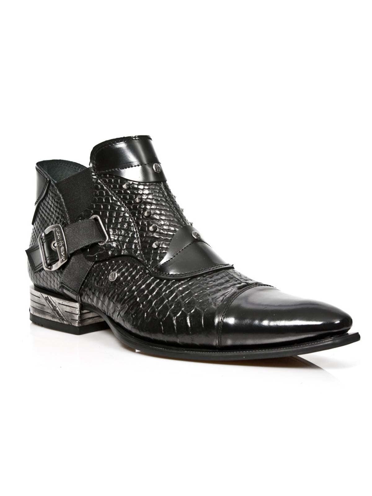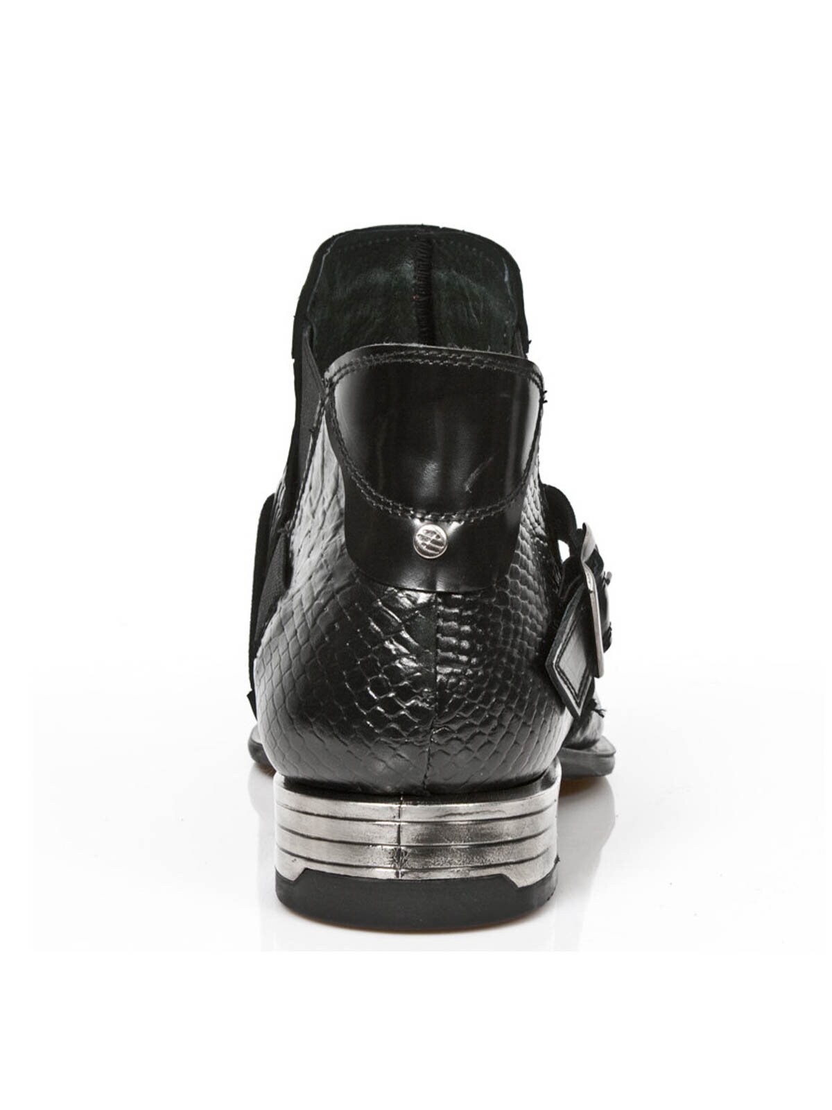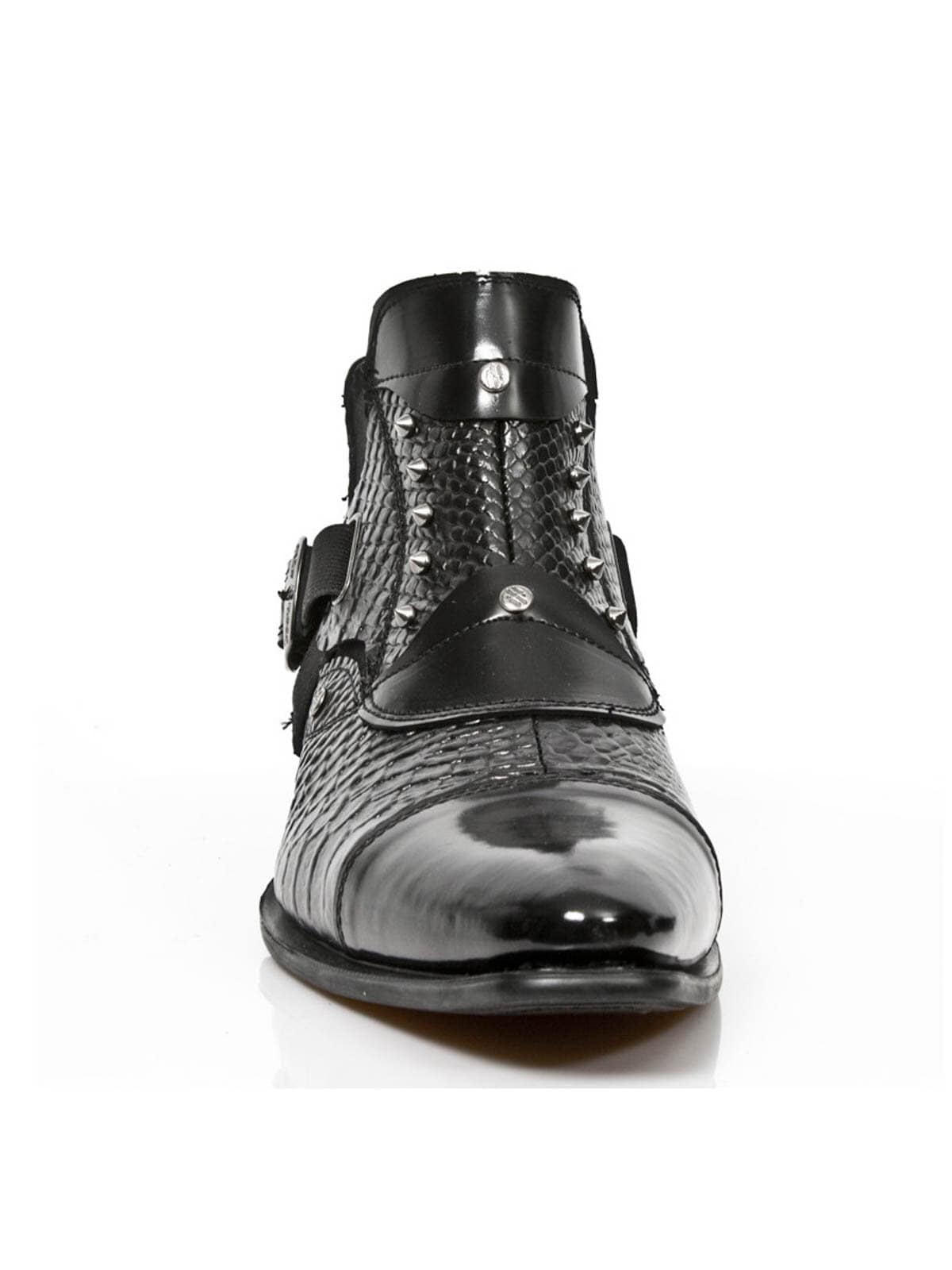 Svarta skor i äkta läder med mönster och lågt skaft. Detaljerade med nitar och remmar i resår med ett metallspänne. Resår vid skaftöppning på båda sidorna som underlättar påtagning. Denna unika sko finns i begränsad upplaga!