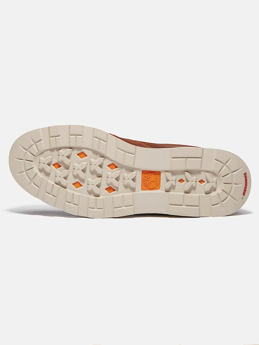 Denna bruna känga kombinerar en tidlös look med innovativa material för optimal prestanda och hållbarhet. Skorna är tillverkade med vattentätt läder och har en intern vattentät andningsbar membran för att hålla fötterna torra. Innersulan i OrthoLite® komfortskum ger lättviktig dämpning, fukttransport och antimikrobiell funktion för långvarig komfort. Tack vare TimberCush™-tekniken och ReBOTL™-material får du responsiv stötdämpning och ett miljömedvetet val med minst 50% återvunnen PET.