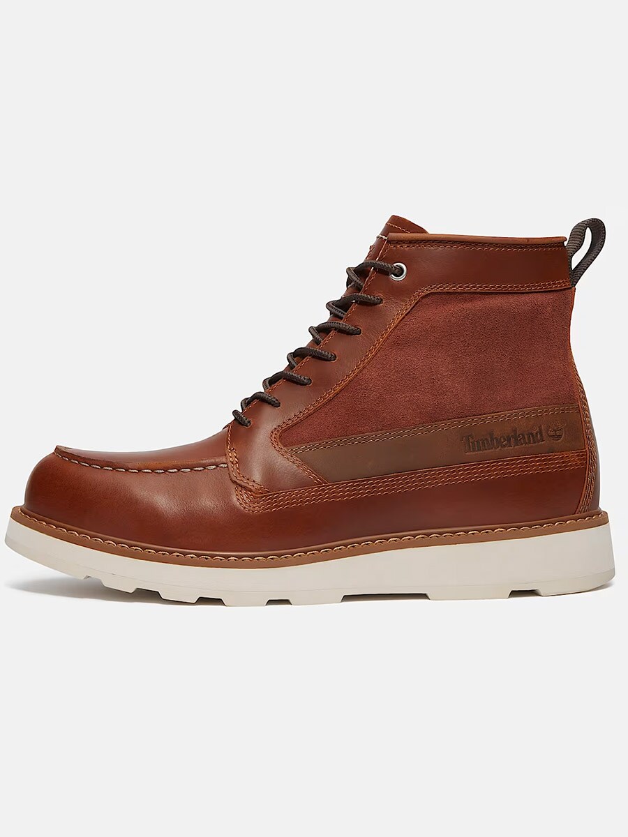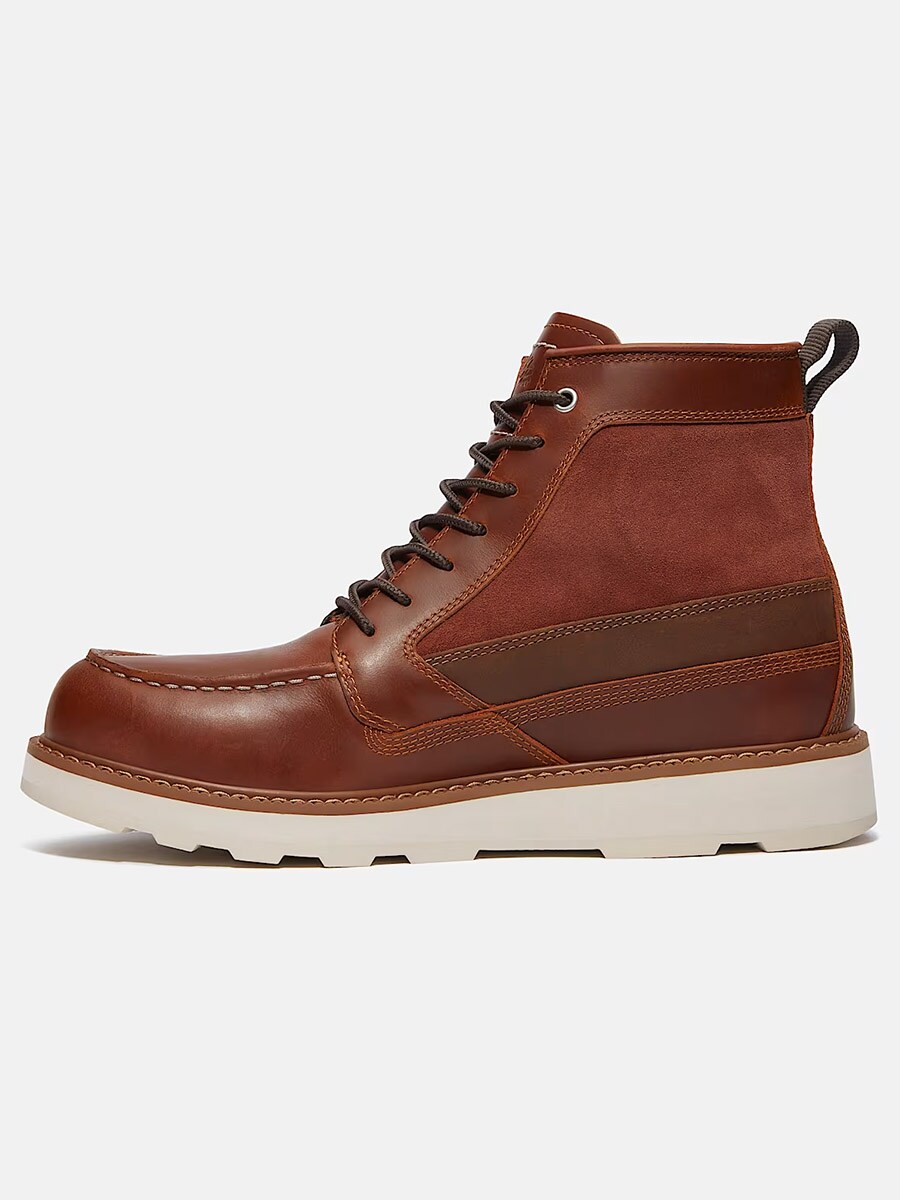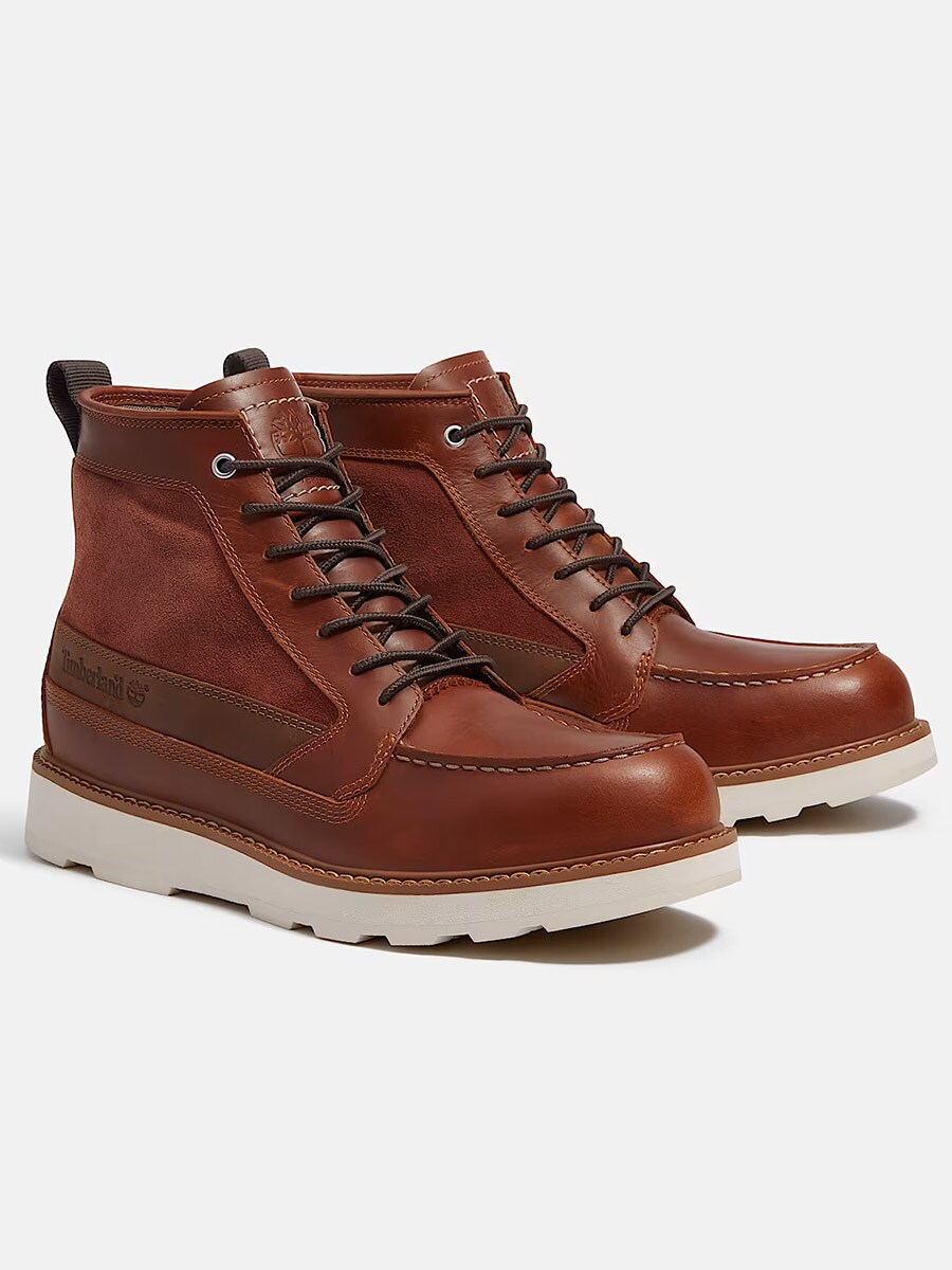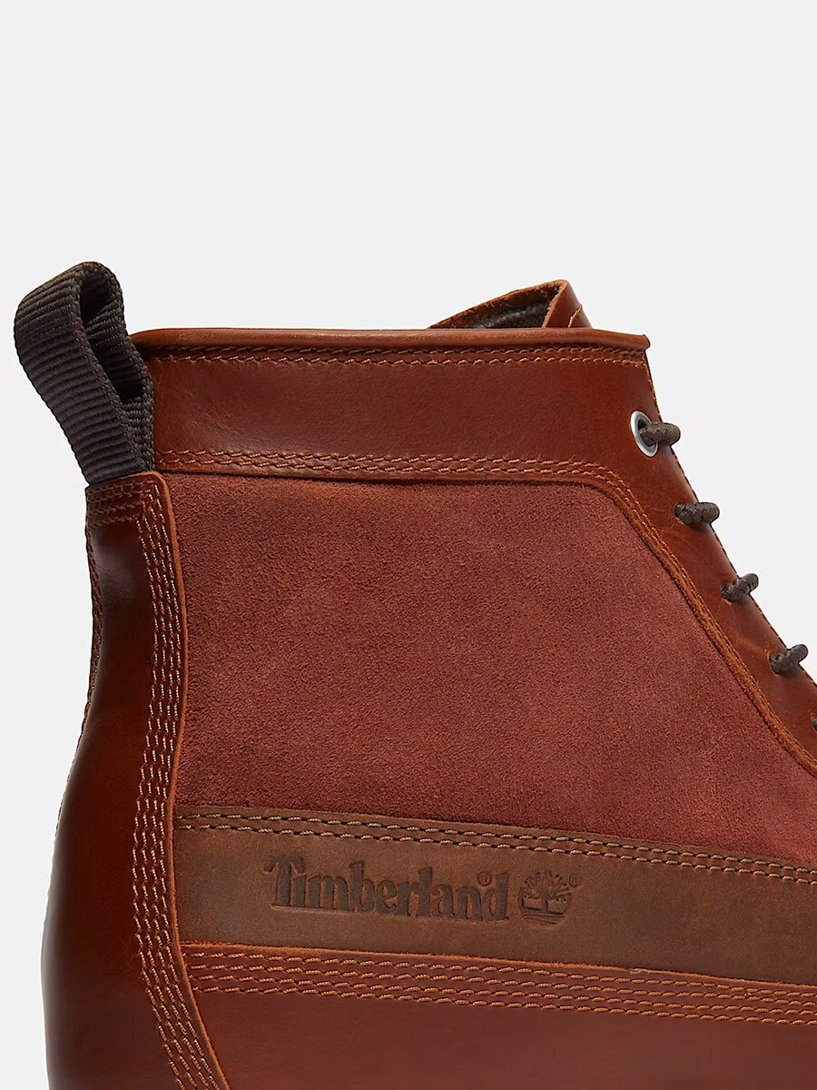 Timberland Britton Mills är en vattentät känga i klassisk brun läder- och mockadesign, utrustad med avancerad komfortteknik.