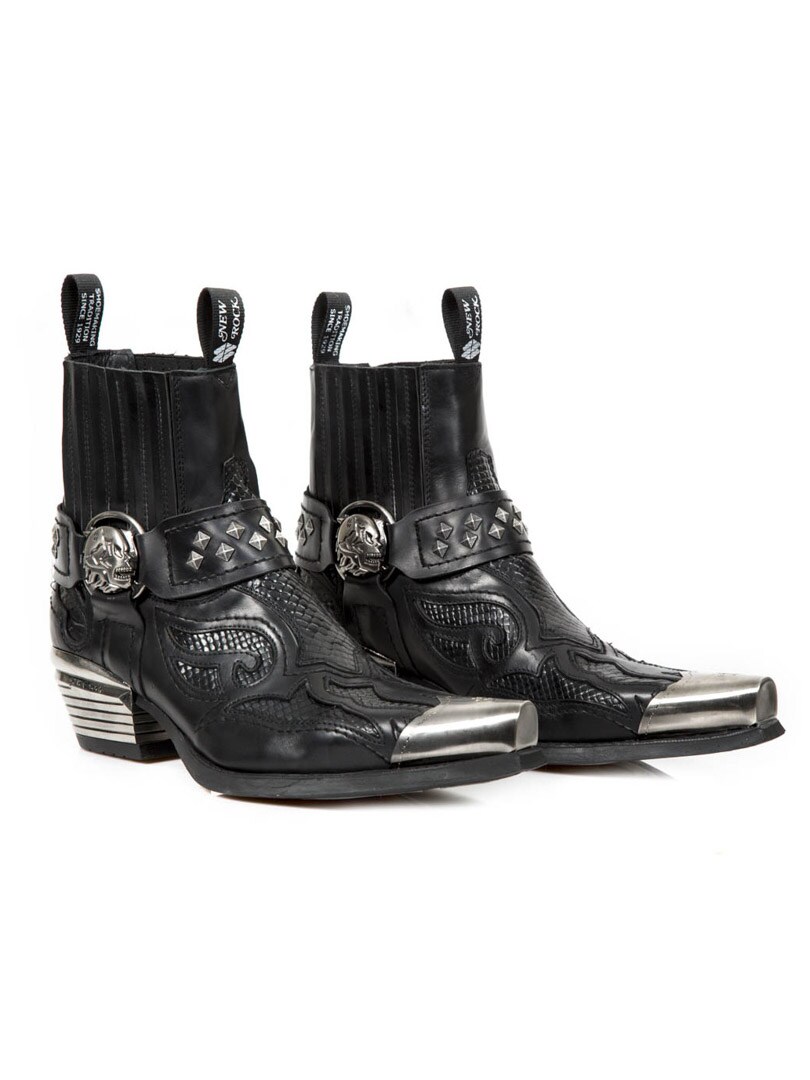 Rockiga skor i äkta läder med detaljer som sticker ut ur mängden. Designad med mönster i lädret, nitar och metalltå, samt klack. En dra-på-sko med resår i skaftet. Denna unika sko finns i begränsad upplaga!