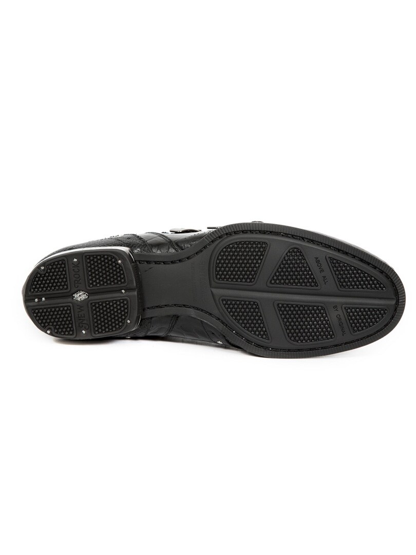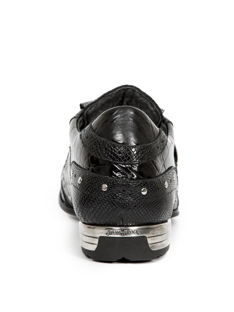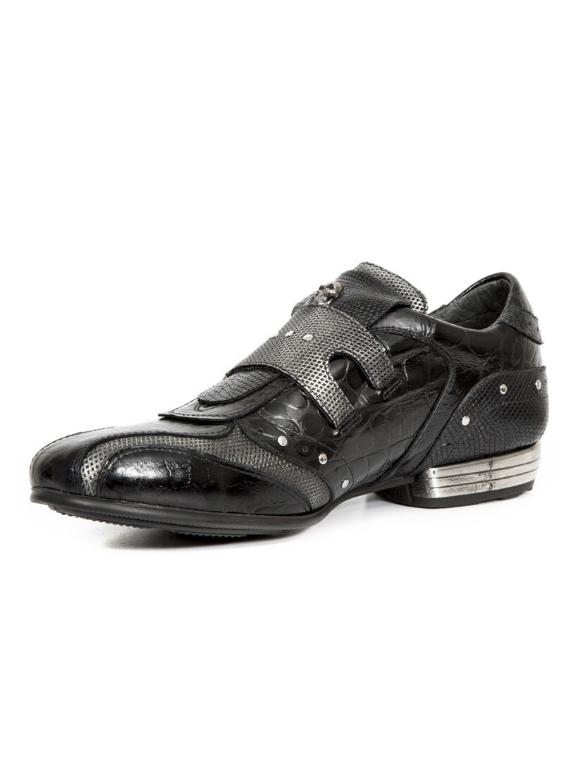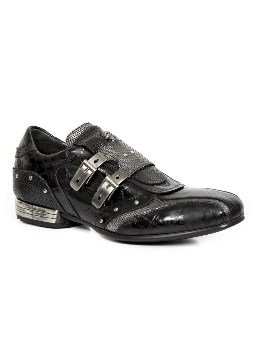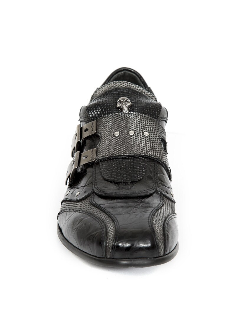 Svarta skor i äkta läder med mönster och lågt skaft. Detaljerade med grå partier, nitar och en rem av läder med två metallspännen. Dödskallepatch fram på skon. Denna unika sko finns i begränsad upplaga!