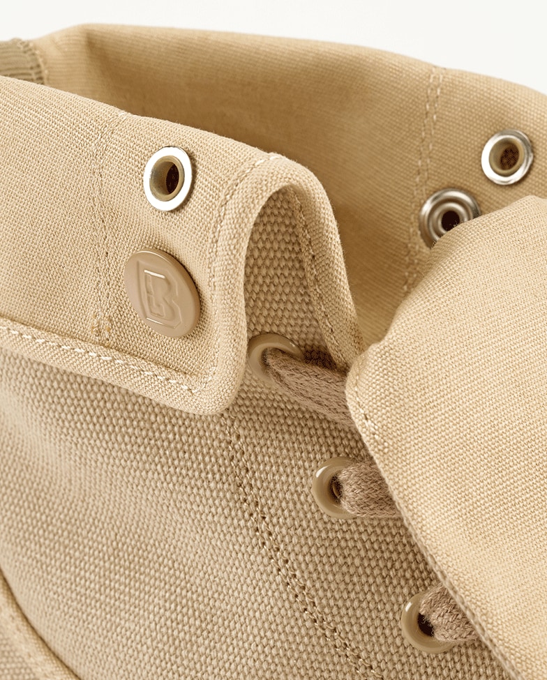 Dessa slitstarka skor kombinerar känslan av smidiga sneakers med stabiliteten hos klassiska kängor. Tillverkade i robust canvas med ett högt skaft som kan bäras både uppfällt eller nedvikt för en mer avslappnad stil. De grova skosnörena och den räfflade gummisulan ger bra grepp och en trygg känsla, medan den mjuka passformen erbjuder hög komfort för vardagens alla steg.