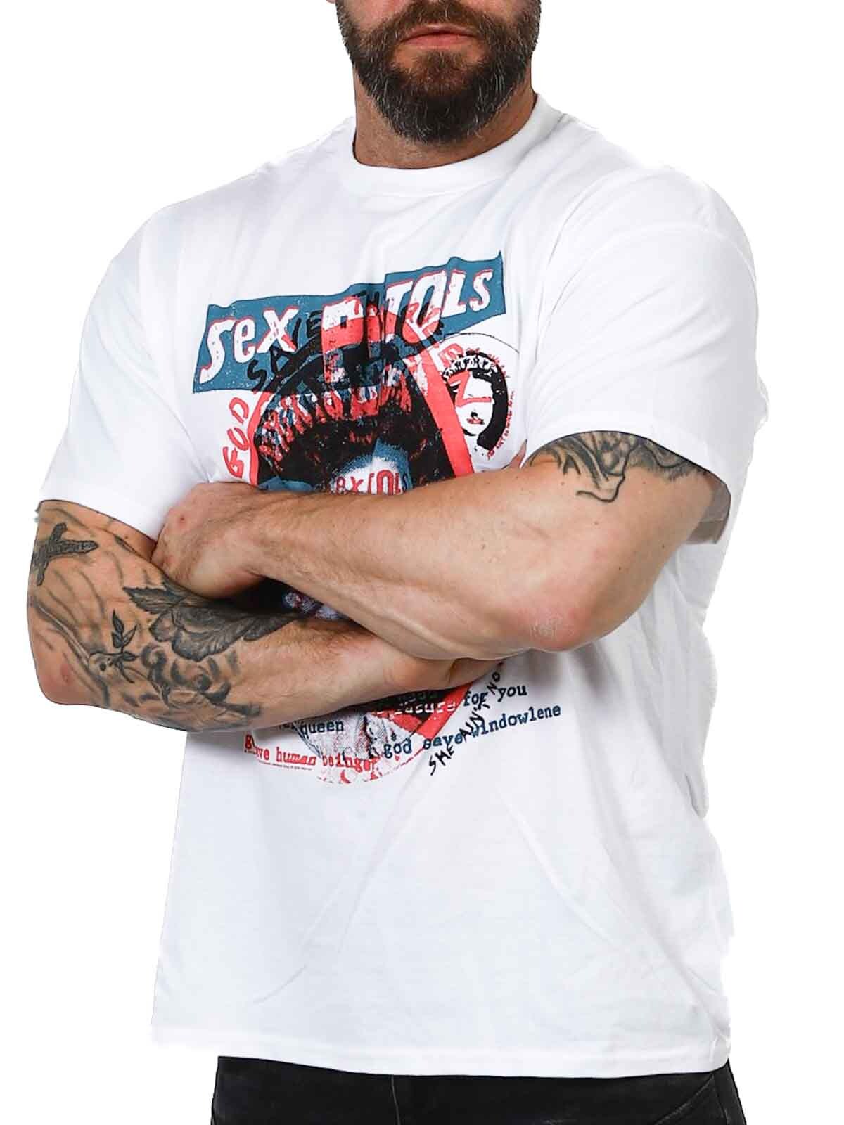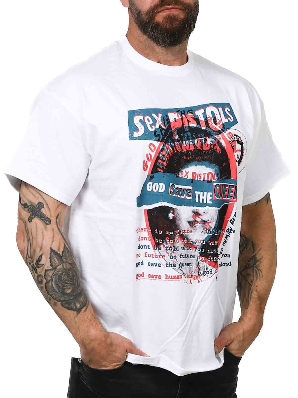 Band Merch Sex Pistols God Save The Queen T-shirt i vit är ett rebelliskt måste för varje musikälskare.