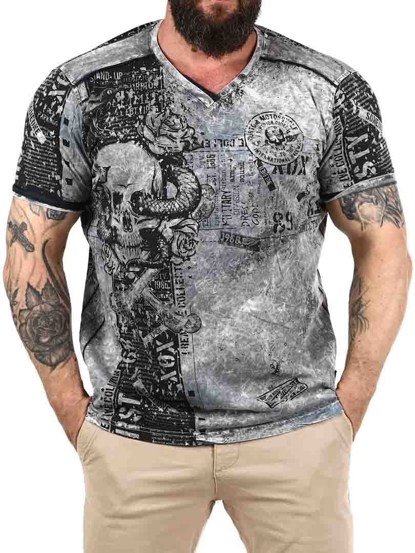 V-ringad t-shirt med tryck och textprints. Detaljerad med knappar vid halsöppningen och patches med logga nedtill. Tillverkad i mjuk och stretchig bomull.