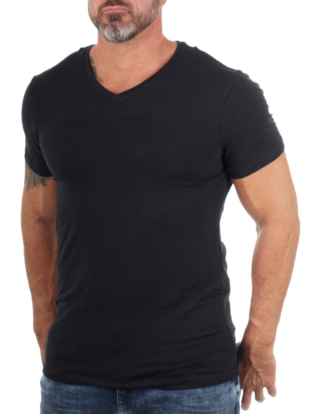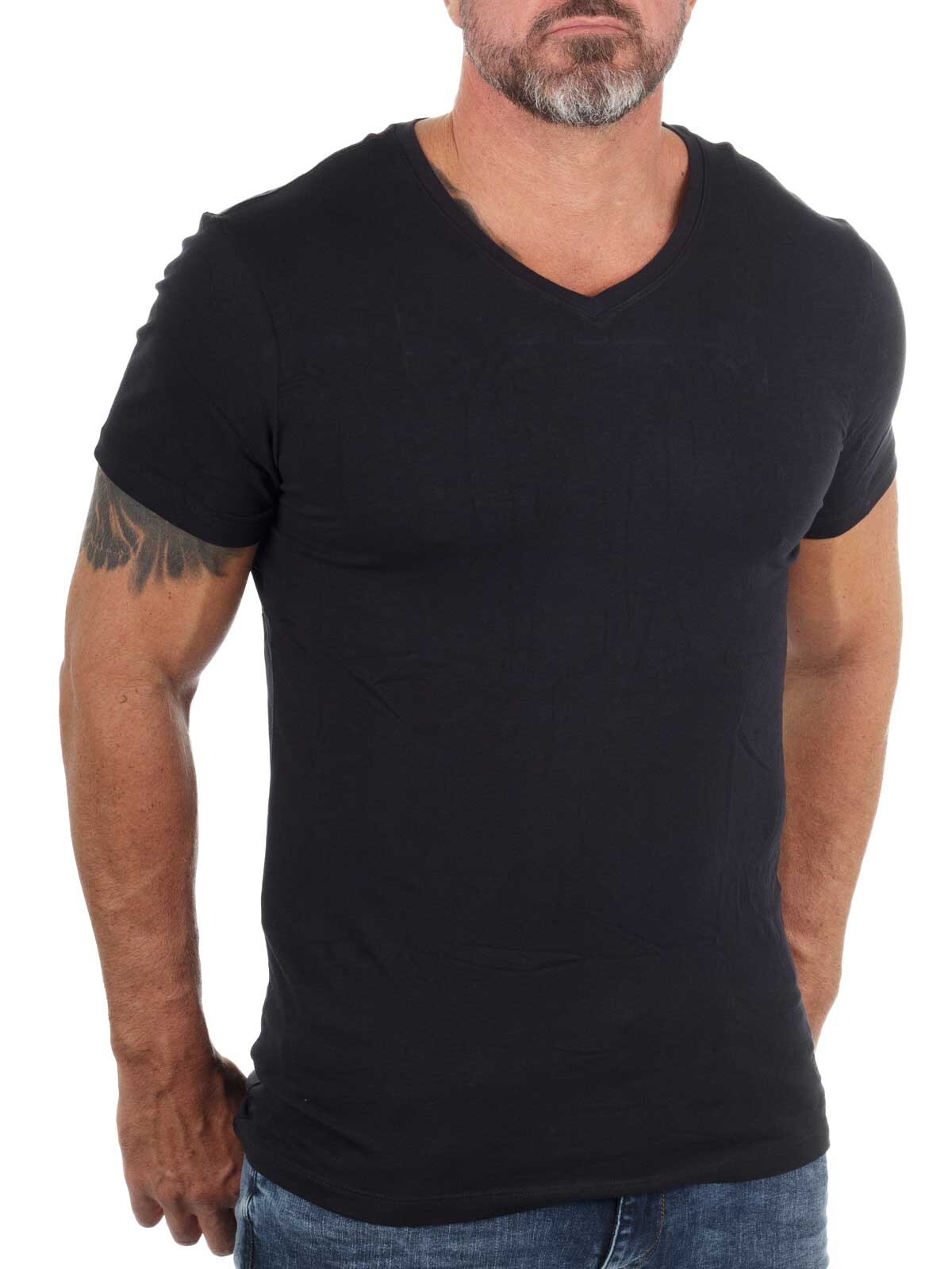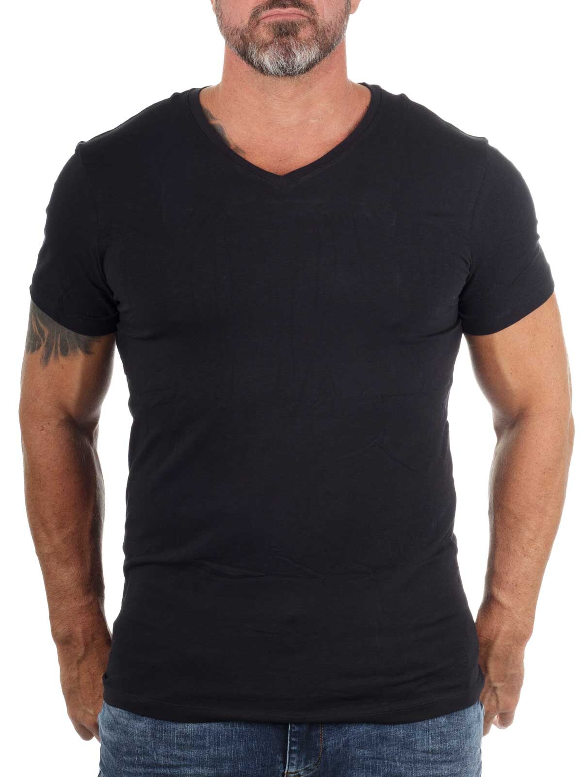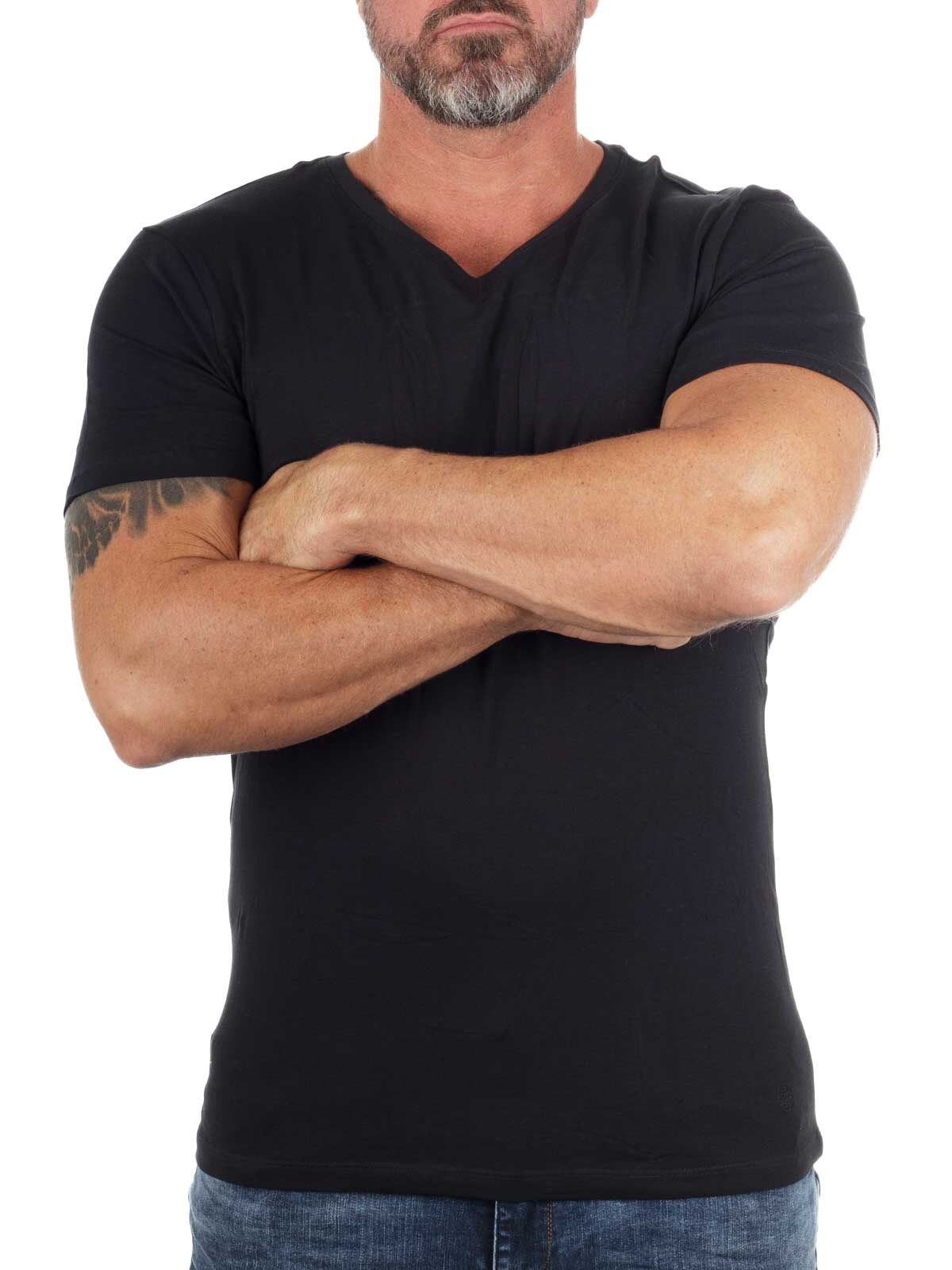 Enfärgad t-shirt i tvåpack. Stretchig modell med åtsittande passform och v-ringad hals. Något tunnare i kvaliteten, så de kan bäras under skjortan eller en stickad tröja.