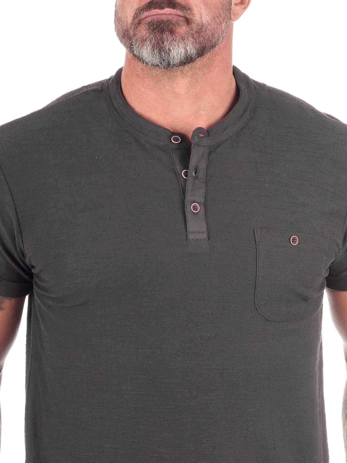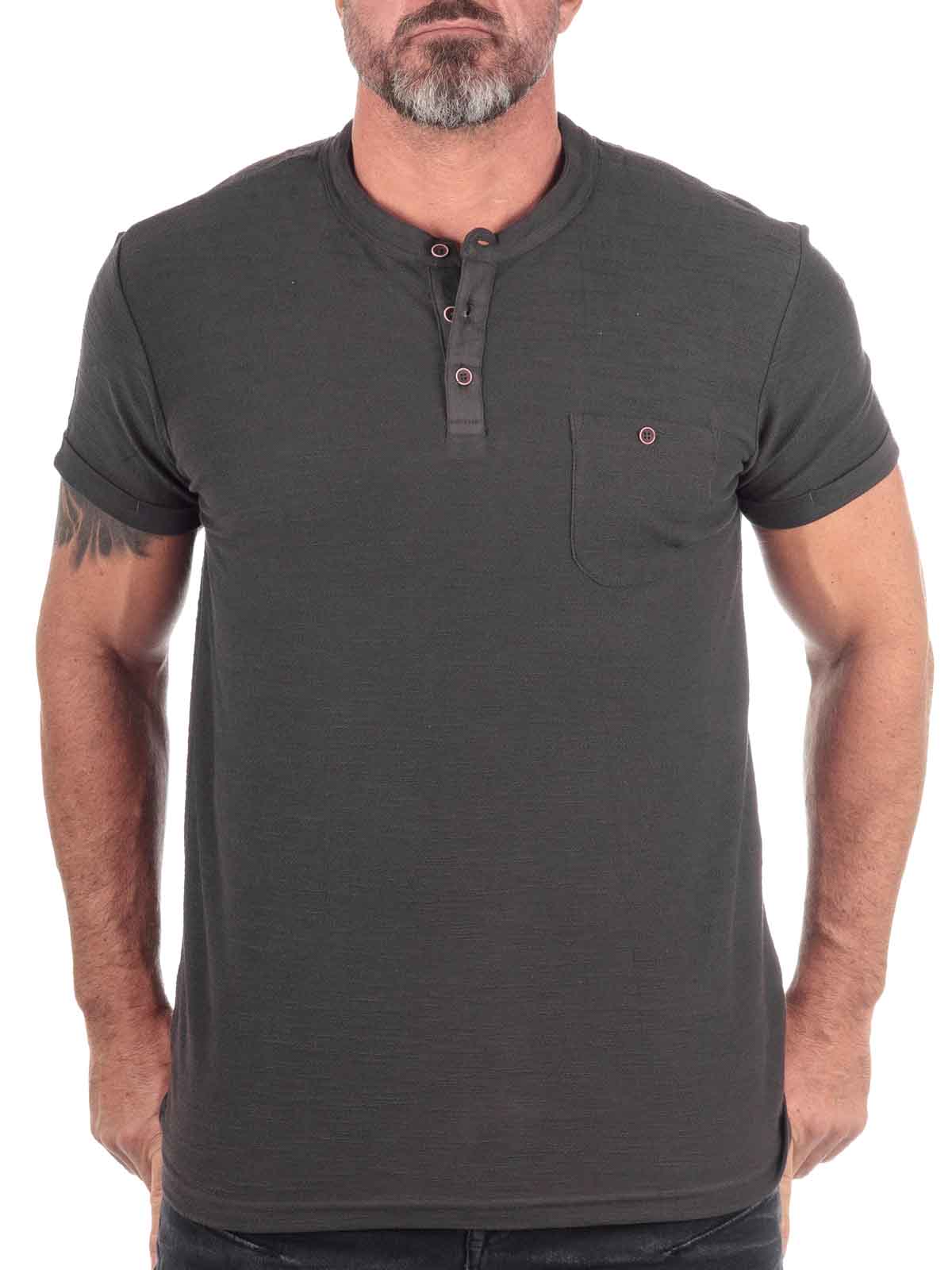 Denna herr-T-shirt kombinerar den klassiska grandad-kragen med modern design, perfekt för att lyfta din vardagslook. Tillverkad i 100% bomull har tröjan en mjuk och texturerad yta som garanterar hög komfort. Med en subtil bröstficka och de karaktäristiska knapparna vid halsöppningen adderar den diskreta detaljer till din outfit. Denna t-shirt kommer snabbt att bli en favorit i garderoben tack vare sin mångsidighet och enkla elegans.