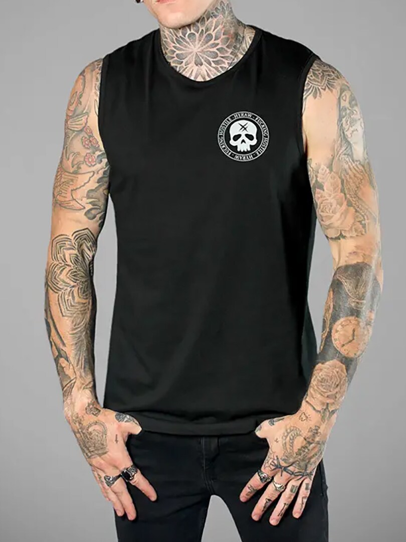 Enfärgat linne med tufft tryck och logga i kontrastfärg. Klassisk modell med rundad halslinning. Tillverkad i 100% bomull
