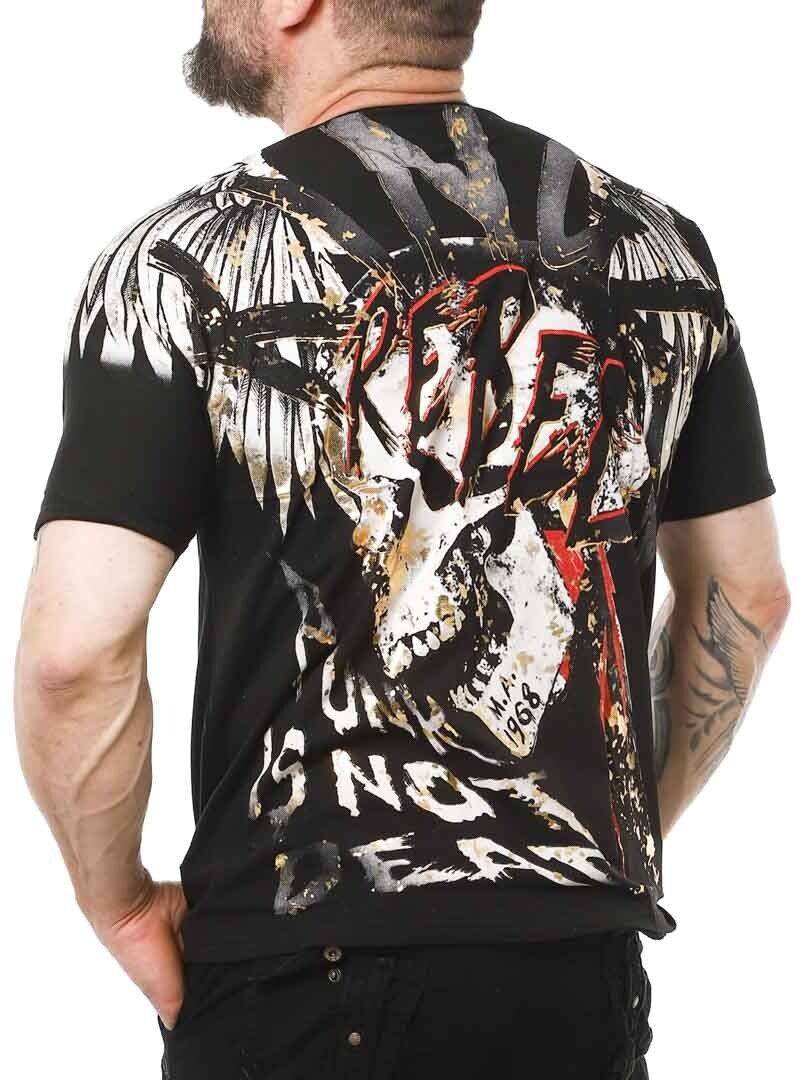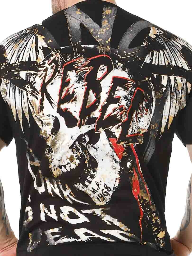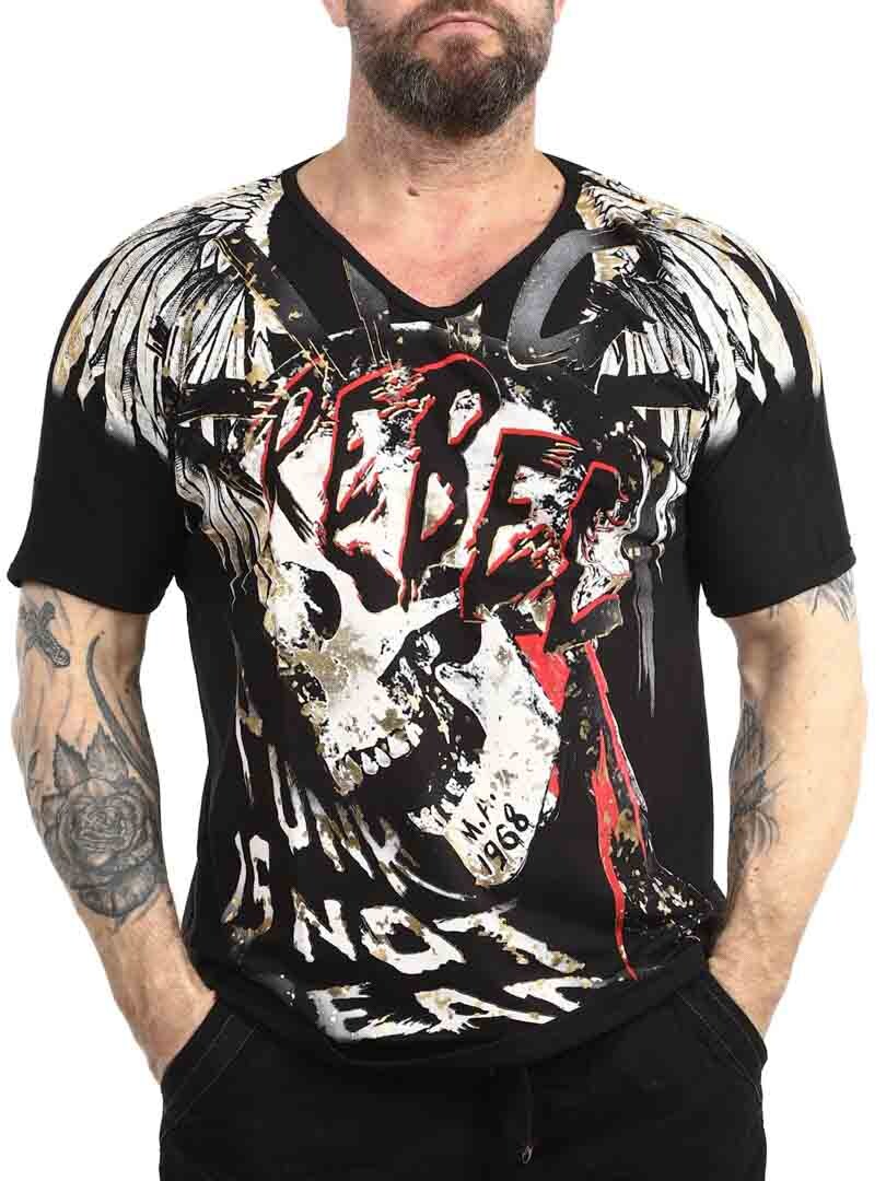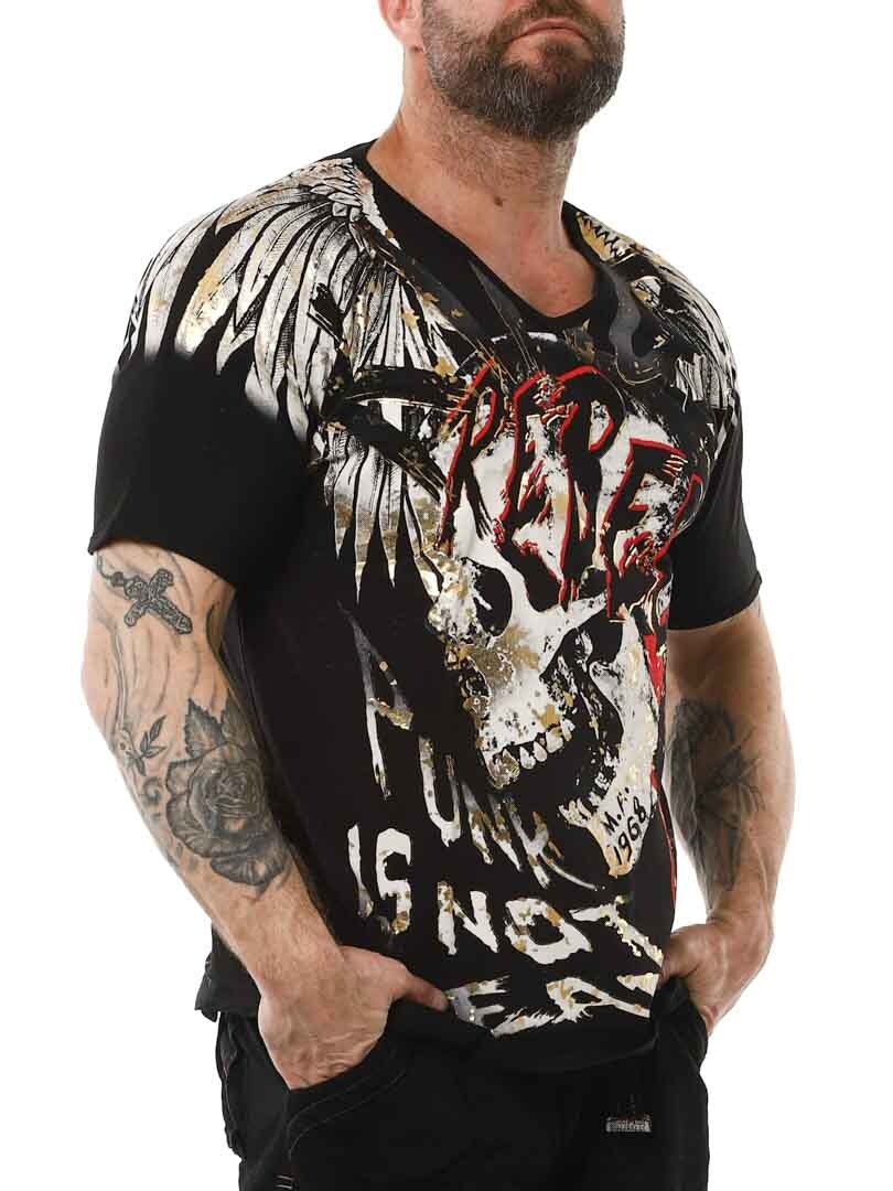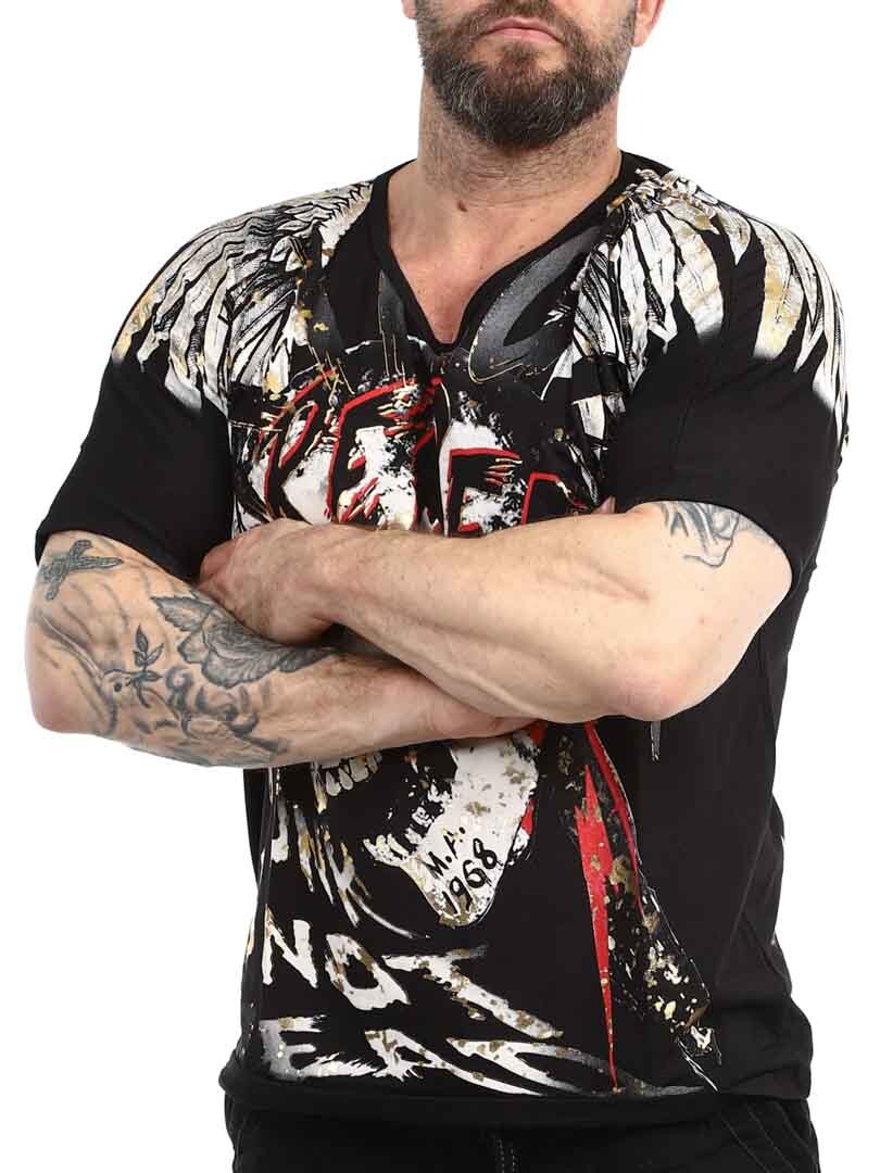 Tuff t-shirt med med detaljerade tryck både fram och baksidan. Den har v-ringad hals och är i ett mjukt och stretchigt material. Med denna t-shirt blir du garanterat en blickfångare!