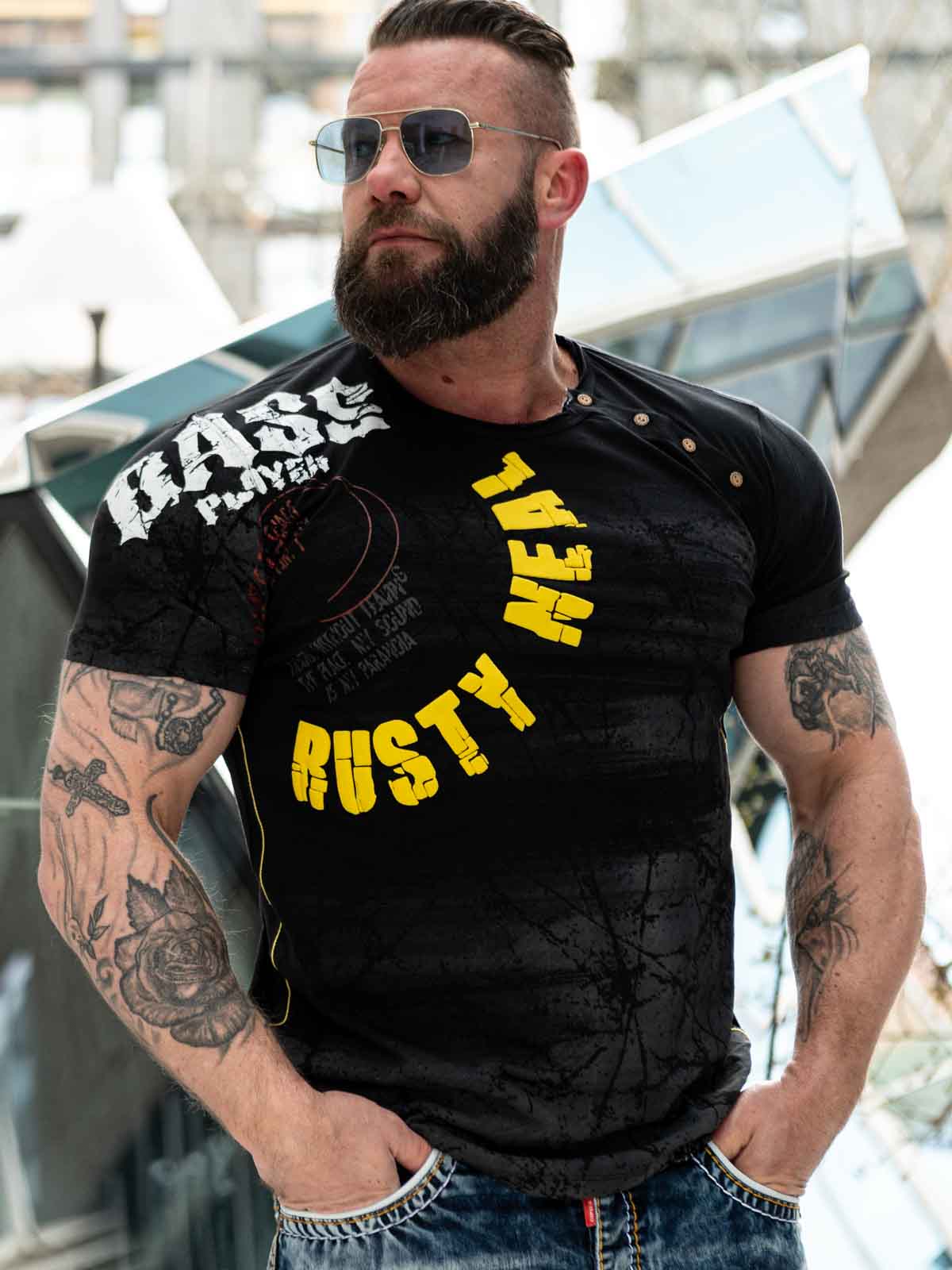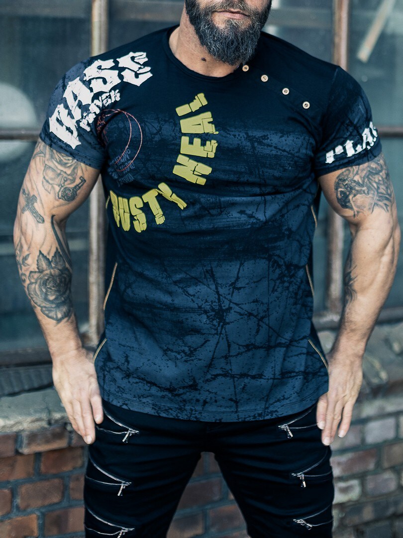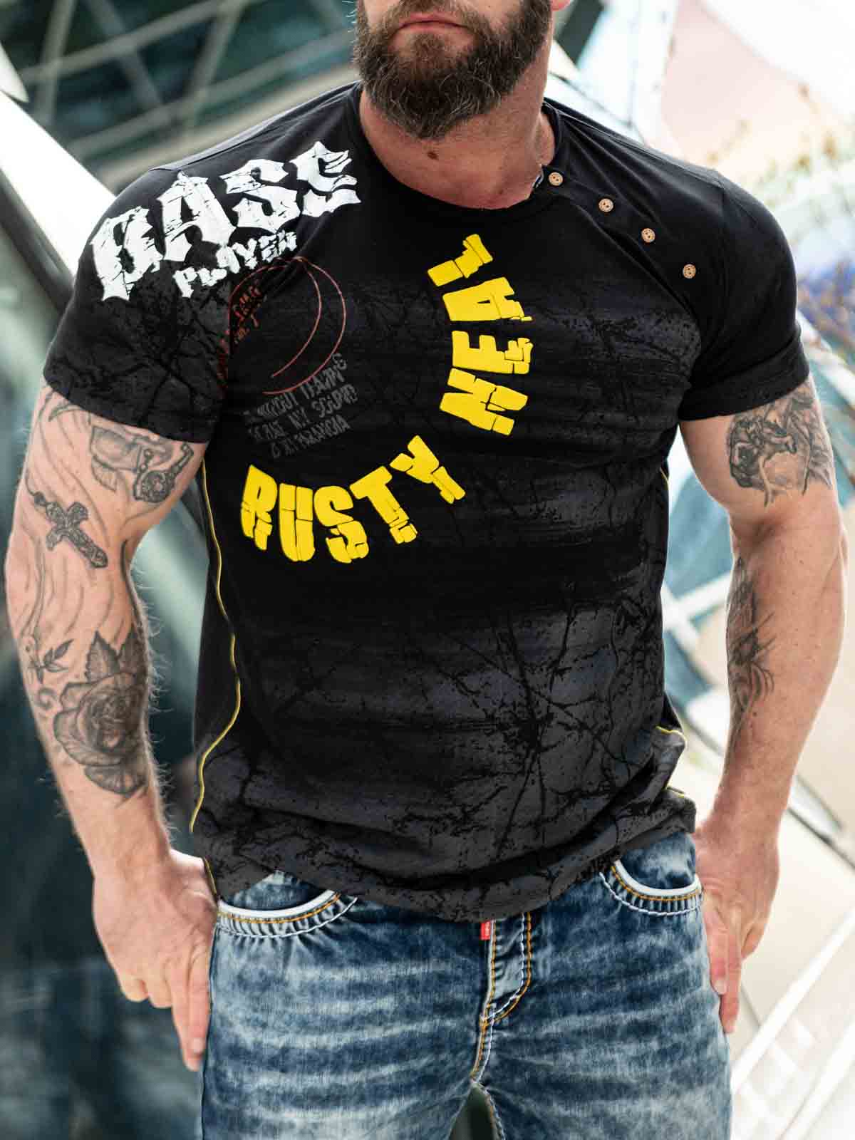 Unik t-shirt med snygga detaljer som 3D-print och mönster. Knapparna vid den rundade halsen är uppknäppbara och kan ge en större urringning. Tryckt motiv på framsidan, finns i flera färgvariationer!