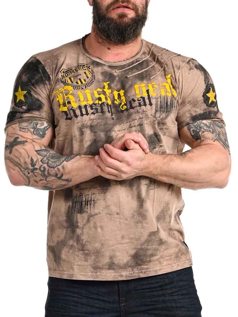 Skön t-shirt i urtvättad design med grova sömmar och tryck på framsidan. Rak modell med rundad hals och diskret patch med loggan i linningen nertill.