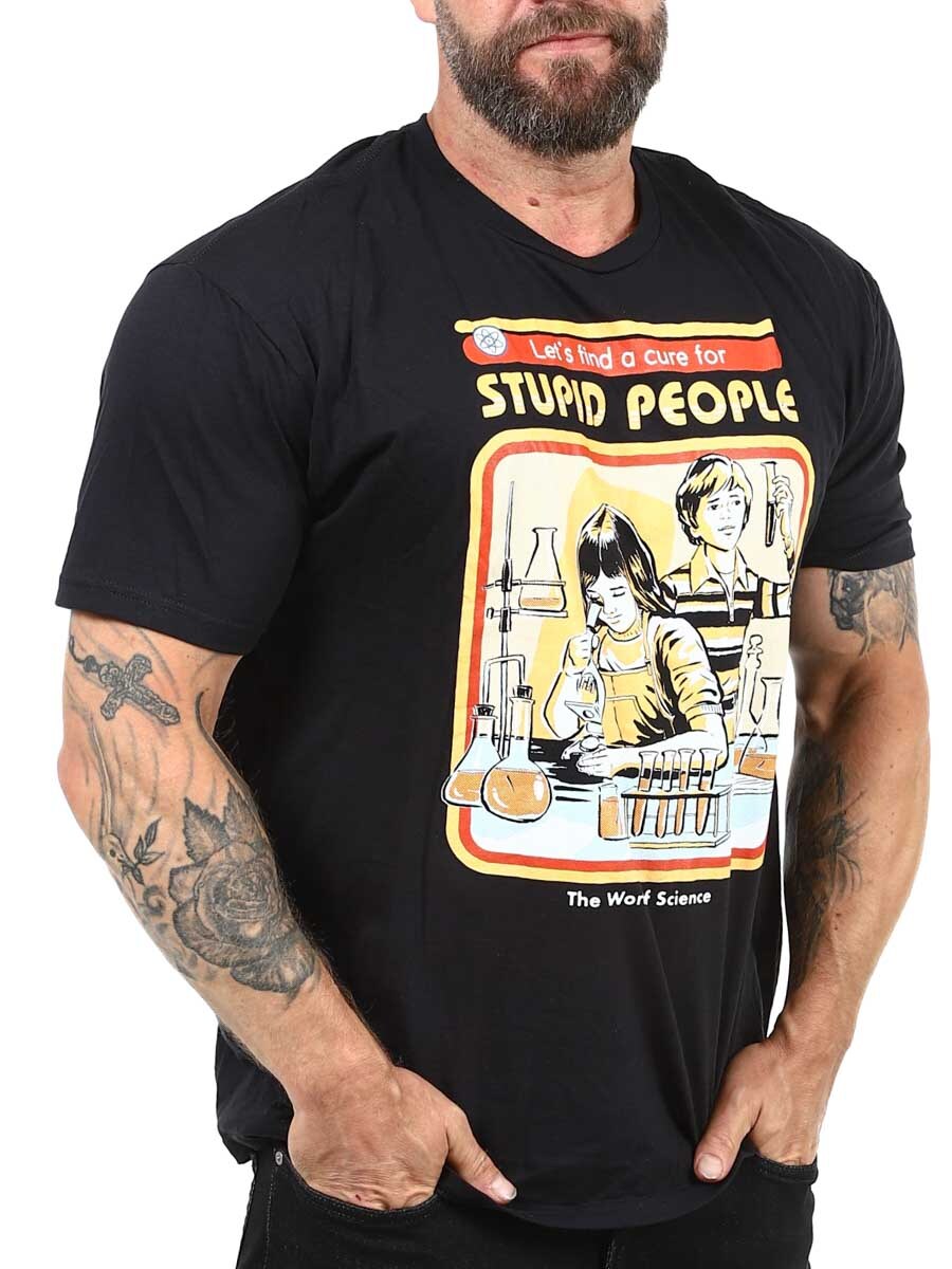 Svart "Let’s Find a Cure for Stupid People" T-shirt