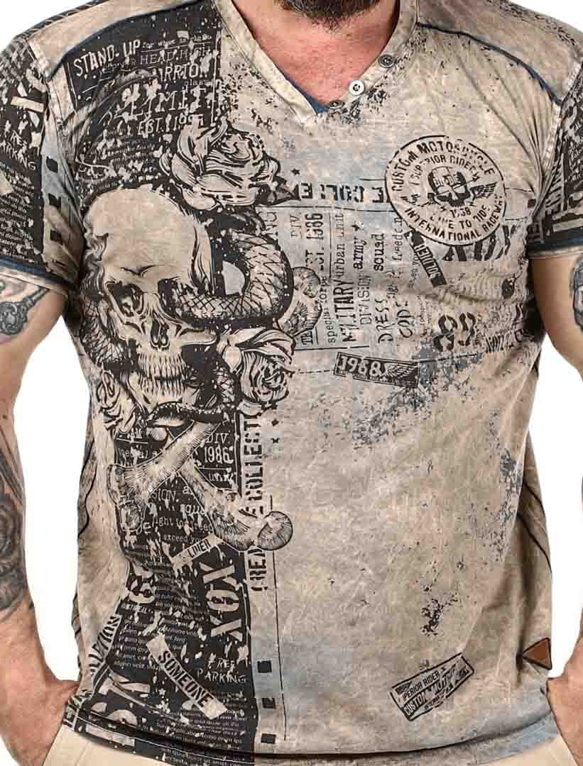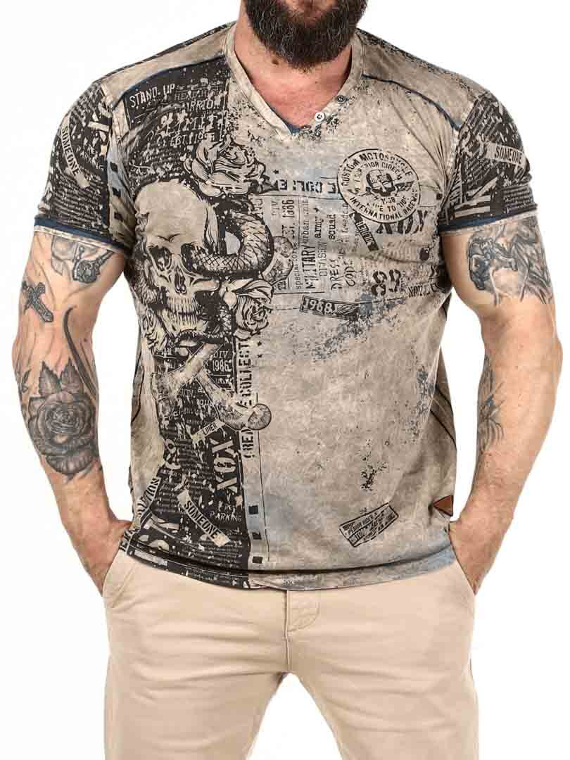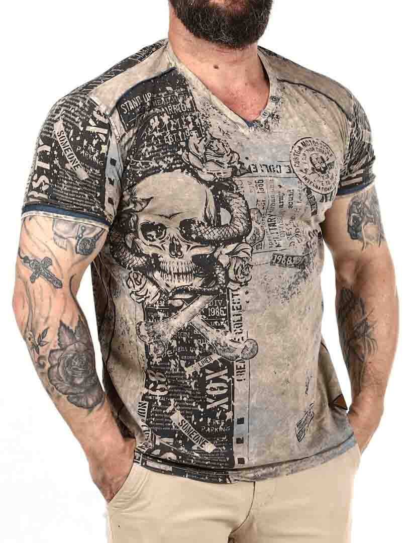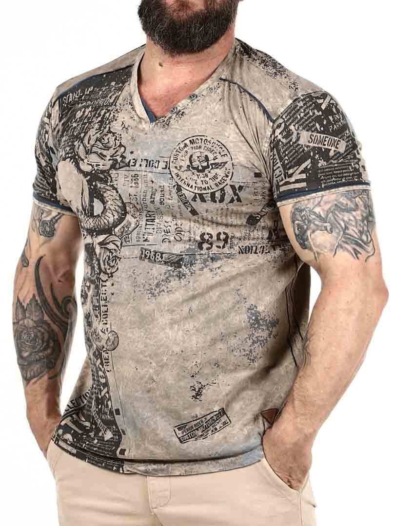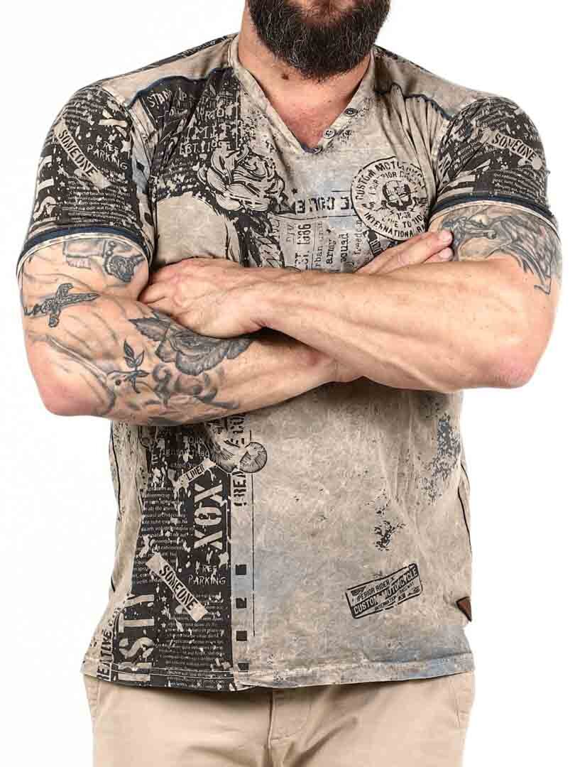 V-ringad t-shirt med tryck och textprints. Detaljerad med knappar vid halsöppningen och patches med logga nedtill. Tillverkad i mjuk och stretchig bomull.